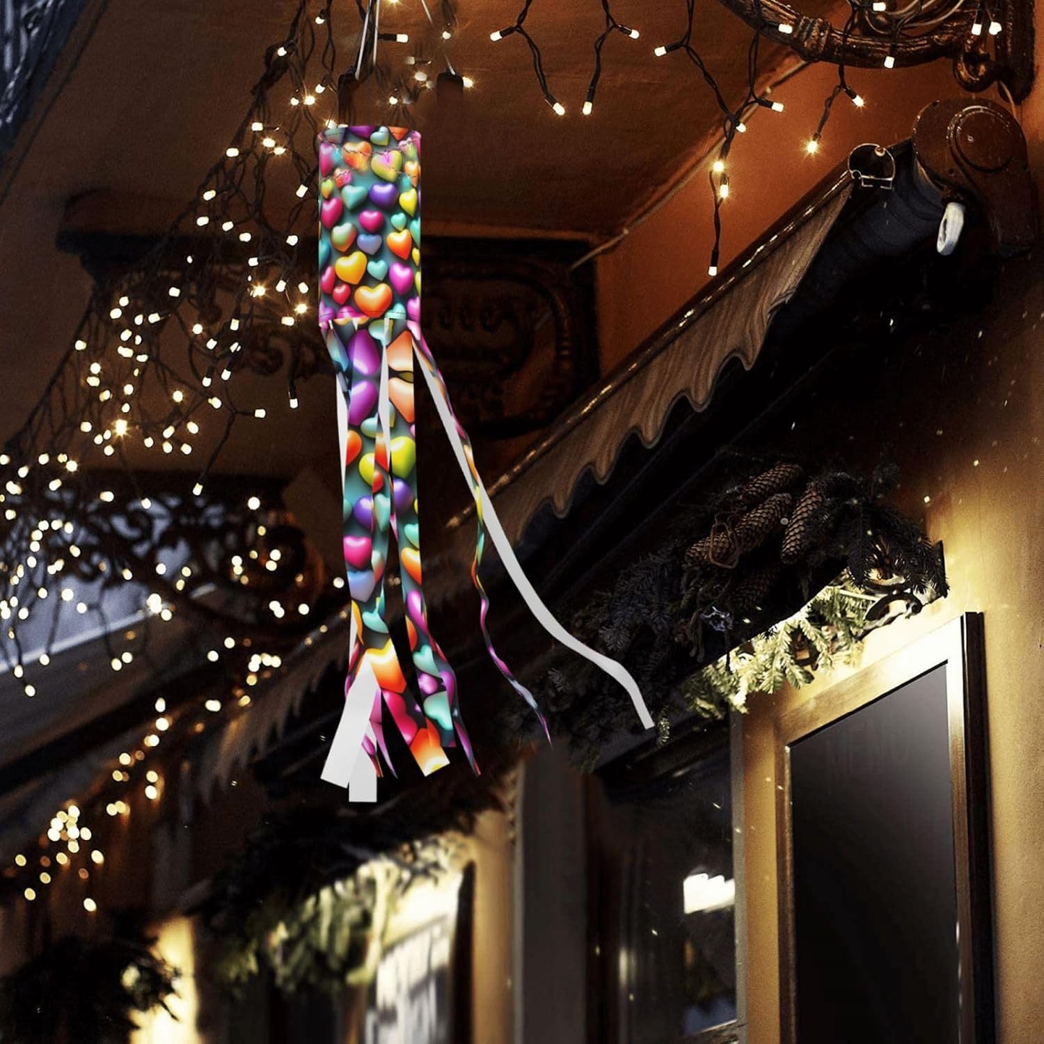 Calzini a vento colorati con cuori arcobaleno incantevoli: perfetti per Halloween, Natale e altre decorazioni natalizie!