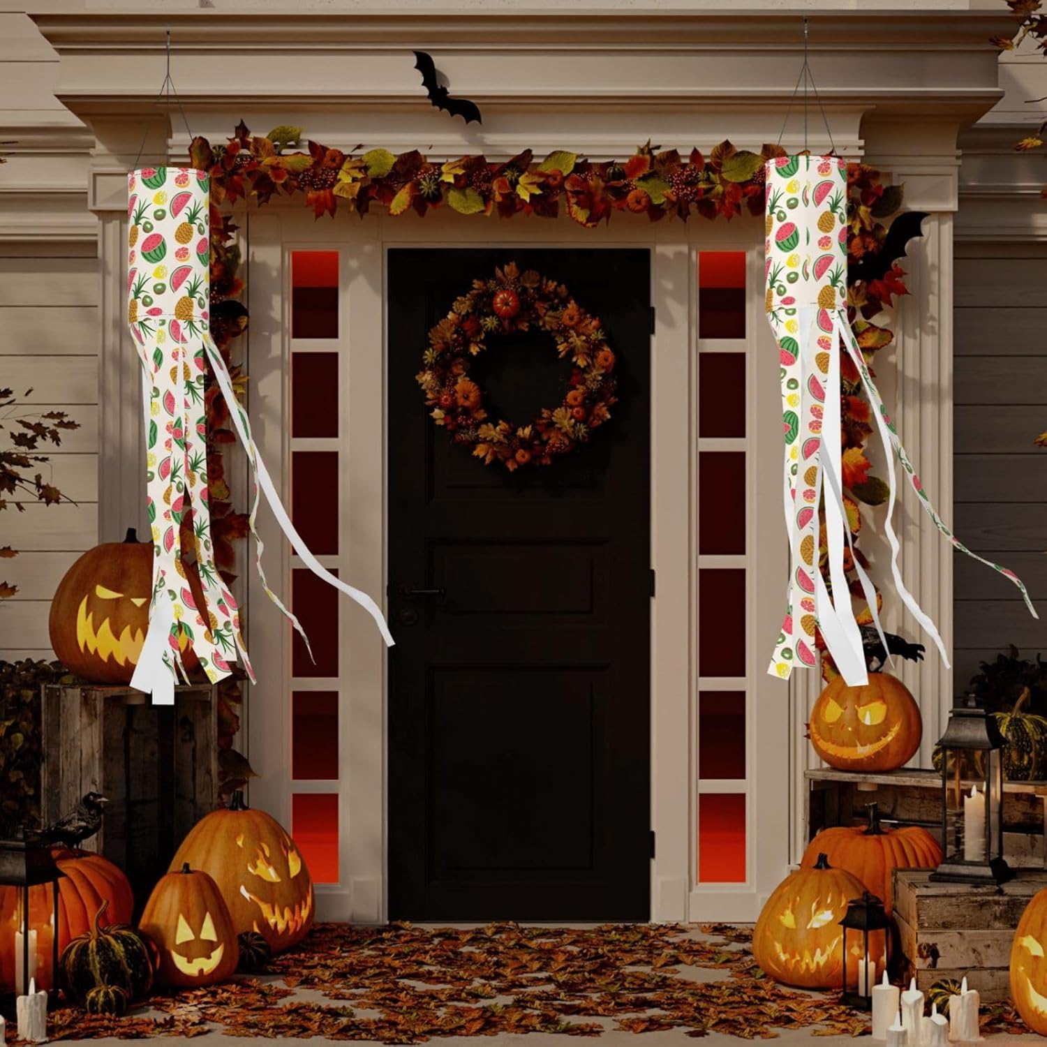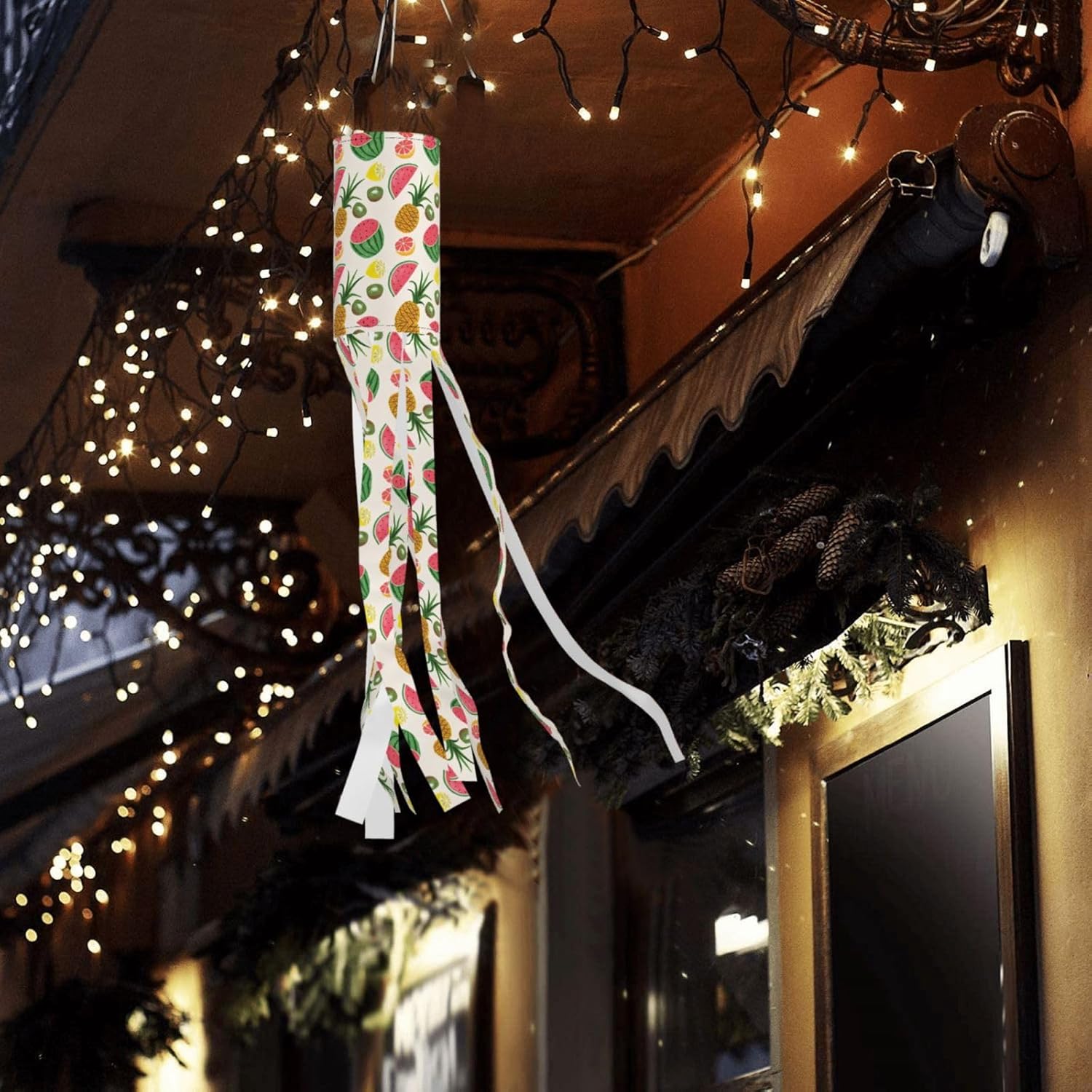 Calzini a vento con frutta tropicale per decorazioni all'aperto per le vacanze: perfette per Halloween, Natale e molto altro ancora