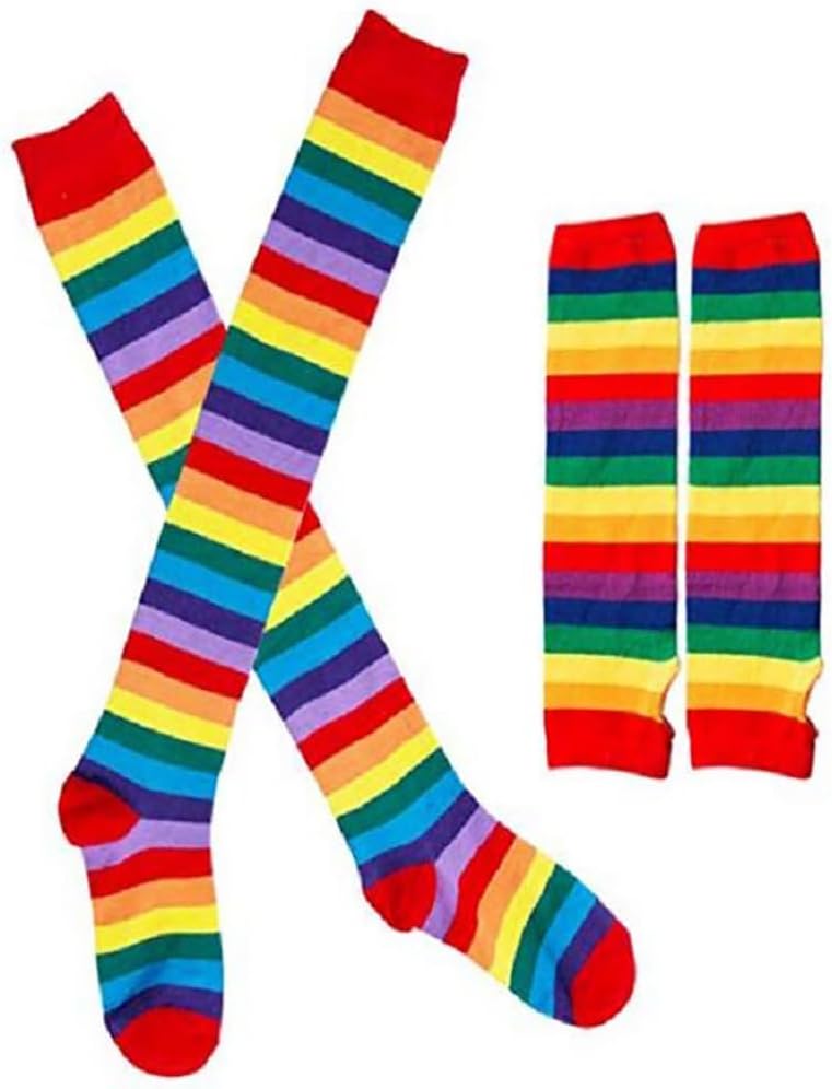 Materiale: cotone acrilico Lunghezza: Guanti: 34 cm - Calzini: 53 cm Confezione: 2 pezzi, guanti e calzini Colori vivaci e design classico, illuminano il tuo umore e la tua vita Adatto per l'uso quotidiano, costumi di Halloween, feste di intrattenimento, spettacoli di ruolo