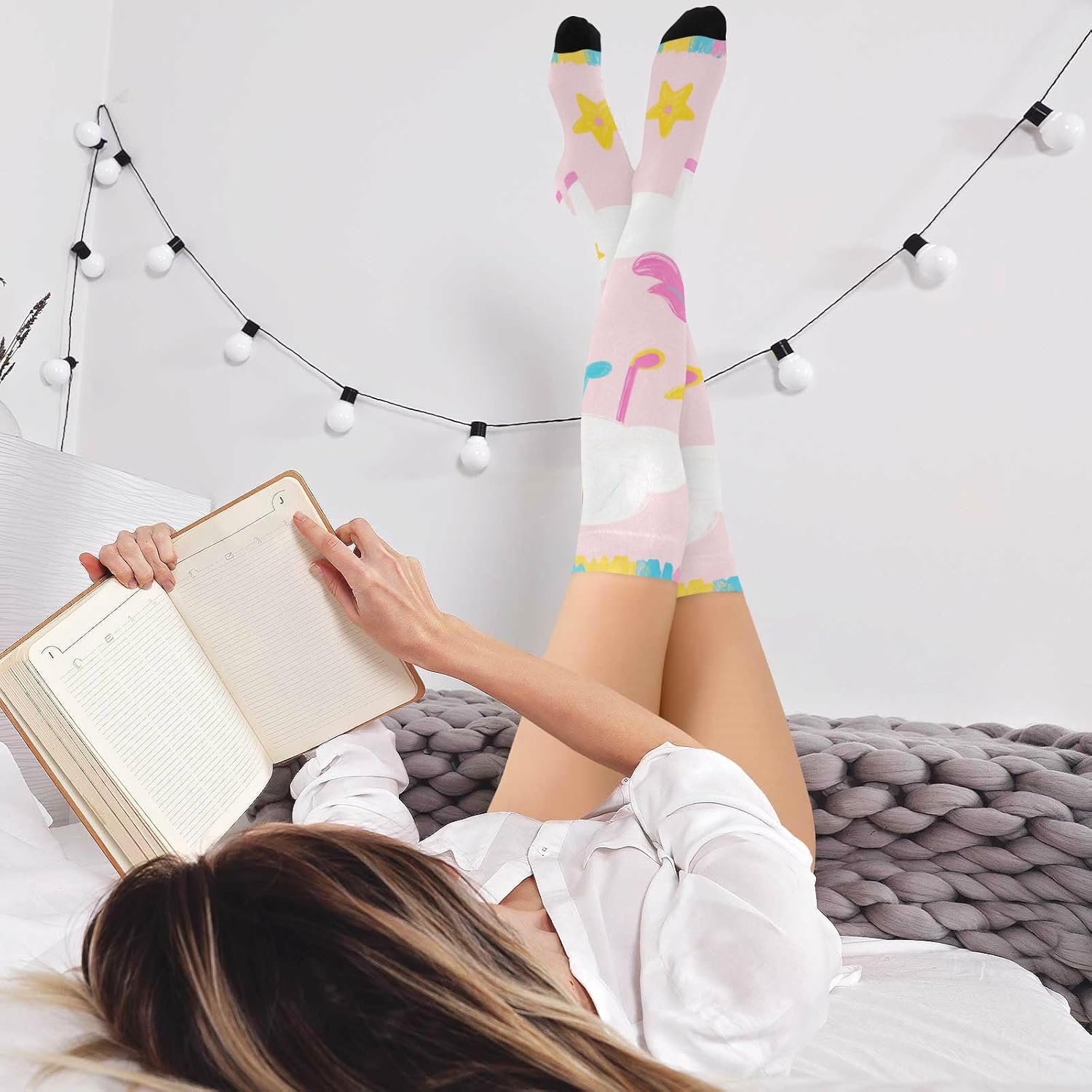 Dimensioni più adatte: dimensioni piastrellate: 10,2 x 58,4 cm (elevata elasticità, ci sarà un errore di 1-3 cm). Poiché i calzini sopra il ginocchio da donna rimangono elastici, sono di 1 taglia e si adattano alla maggior parte delle figure! Materiale: i calzini da donna al ginocchio sono realizzati con materiali di qualità, 93% nylon e 7% spandex, comodi e traspiranti, lisci e delicati sulla pelle, adatti per quattro stagioni. Che si tratti di inizio primavera, autunno fresco, inverno freddo o una casa climatizzata in estate, queste calze scalderanno sempre le gambe e aggiungeranno fascino al tuo fascino. Indossare in diversi modi: i calzini sopra il ginocchio da donna possono essere utilizzati come calzini alla coscia, possono anche essere piegati in calze sopra il ginocchio e possono essere utilizzati come calzini al ginocchio. Diversi modi di vestirsi, stili diversi! Caratteristiche: Questi calzini sopra il ginocchio da donna hanno colori e design classici, facili da abbinare a una varietà di vestiti, come minigonne, pantaloncini, stivali, scarpe di tela, cappotti lunghi, ecc. Non è adatto per l'uso quotidiano in casa, ma anche per sport, cosplay, sonno, spettacoli teatrali, foto artistiche, ecc. Modello sopra il ginocchio: il design sopra il ginocchio delle calze sopra il ginocchio da donna non conferisce eleganza e sensualità, ma modifica anche la forma delle gambe in una certa misura. Sia combinato con una gonna corta o pantaloncini, può mostrare un affascinante carisma.