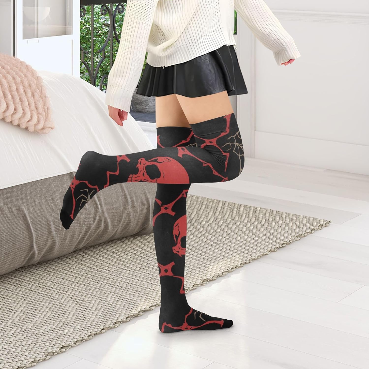 Dimensioni: i calzini sopra il ginocchio da donna sono lunghi circa 59 centimetri dalla punta alla parte superiore ed elastici. È adatto per persone di 1,5 metri e oltre. Materiale: i calzini lunghi da donna sono realizzati con materiali di qualità, 93% nylon e 7% spandex, comodi e traspiranti, lisci e delicati sulla pelle, adatti per quattro stagioni. Che si tratti di inizio primavera, autunno fresco, inverno freddo o una casa climatizzata in estate, queste calze scalderanno sempre le gambe e aggiungeranno fascino al tuo fascino. Versatile: i nostri calzini alti da donna possono essere utilizzati per una varietà di sport, come calcio, basket, ciclismo, basket, lacrosse, ecc. Può anche essere abbinato a un costume di Halloween o a un outfit casual per aggiungere un colore brillante al tuo outfit. Moda calda: i nostri calzini lunghi sopra il ginocchio da donna sono realizzati in tessuto di nylon, elastico morbido e confortevole, calzini di dimensioni uniformi, alla moda classica, non troppo sottili e non troppo spessi, sia caldi che alla moda Design sopra il ginocchio: il design sopra il ginocchio delle calze alte al ginocchio da donna non conferisce eleganza e sensualità, ma altera anche la forma delle gambe in una certa misura. Sia abbinato a una gonna corta o pantaloncini, può rivelare fascino affascinante.