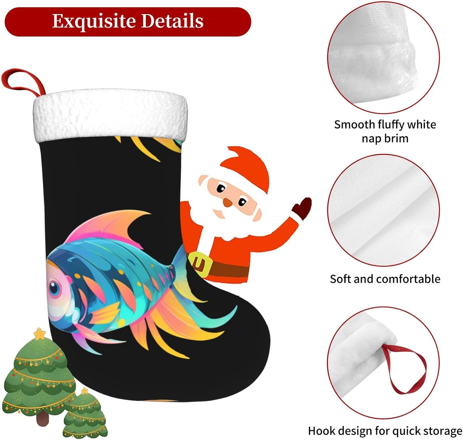 I nostri calzini decorativi natalizi creativi Fish Wave sono realizzati in tessuto felpato, morbido e confortevole al tatto, e realizzati con tecnologia di cucito in flanella, morbidi e leggeri come le nuvole. Questo calzino decorativo è estremamente resistente e può accompagnarti durante molte vacanze meravigliose. Può svolgere un ruolo unico in diversi festival, come Halloween, Natale e Capodanno, e diventare un punto culminante festivo. Può essere utilizzato per decorare piccoli regali, aggiungendo sorprese e calore. Ha una vasta gamma di applicazioni ed è adatto per varie scene come riunioni di famiglia, riunioni di amici e attività commerciali. Completa l'albero di Natale e crea una forte atmosfera festiva. È molto adatto per la decorazione delle vacanze e la confezione regalo, che può aggiungere calore alle riunioni di famiglia e lasciare che i parenti si sentano felici; testimoniare l'amicizia e aggiungere divertimento nelle riunioni di amici; attirare l'attenzione e aggiungere atmosfera nelle attività commerciali.