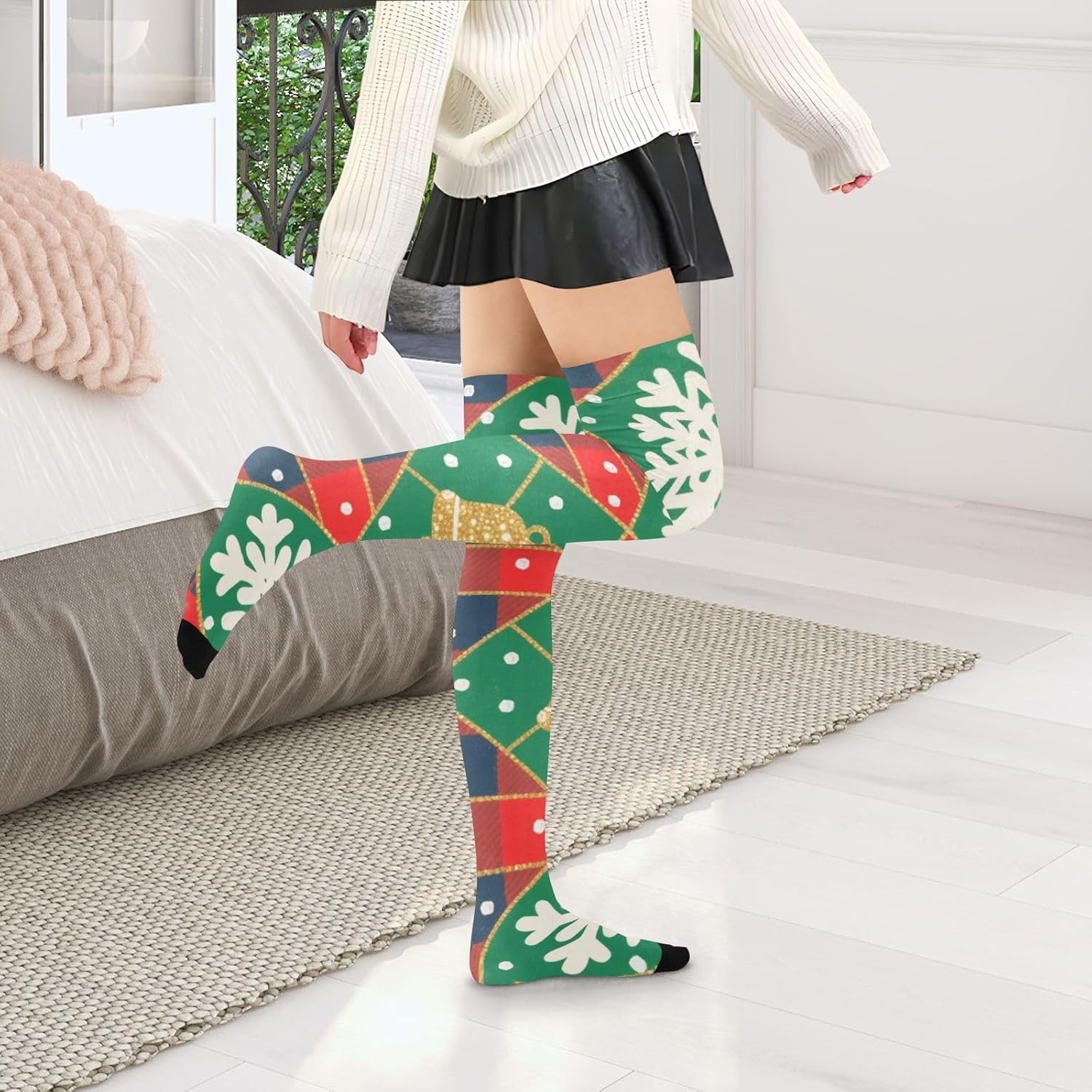 Colore e dimensioni: i colori ricchi ti offrono più scelte. I calzini sopra il ginocchio da donna sono piastrellati a 10,2 x 58,4 cm, una dimensione che si adatta alla maggior parte delle donne e delle ragazze. Lunghezza calzino: circa 58,4 - 83,8 cm. Materiale di qualità: i nostri calzini sopra il ginocchio da donna sono realizzati in 93% nylon e 7% spandex, morbidi e confortevoli, sicuri per la pelle e possono essere indossati a lungo; le calze sono splendidamente realizzate e si adattano meglio alle gambe. Un must have nel guardaroba di ogni donna: questo è un accessorio elegante per la donna avventurosa e multi-tasking. Questi eleganti pezzi si estendono dal ginocchio al ginocchio e fino al centro della coscia. È per vestirsi casualmente, formalmente, per lavoro, matrimoni, feste, cene e altro ancora. È altrettanto elegante in gonne, abiti o pantaloncini. Caratteristiche: Le nostre calze in seta da donna sono leggere e di lunga durata, flessibili e traspiranti, morbide e confortevoli, secondo diversi stili di design, possono essere applicate per uscire, feste, casa, sport e altre occasioni, possono essere abbinate a una varietà di stili di usura. Modello sopra il ginocchio: il design sopra il ginocchio dei calzini tubolari da donna non conferisce eleganza e sensualità, ma modifica anche la forma delle gambe in una certa misura. Sia combinato con una gonna corta o pantaloncini, può mostrare un affascinante carisma.