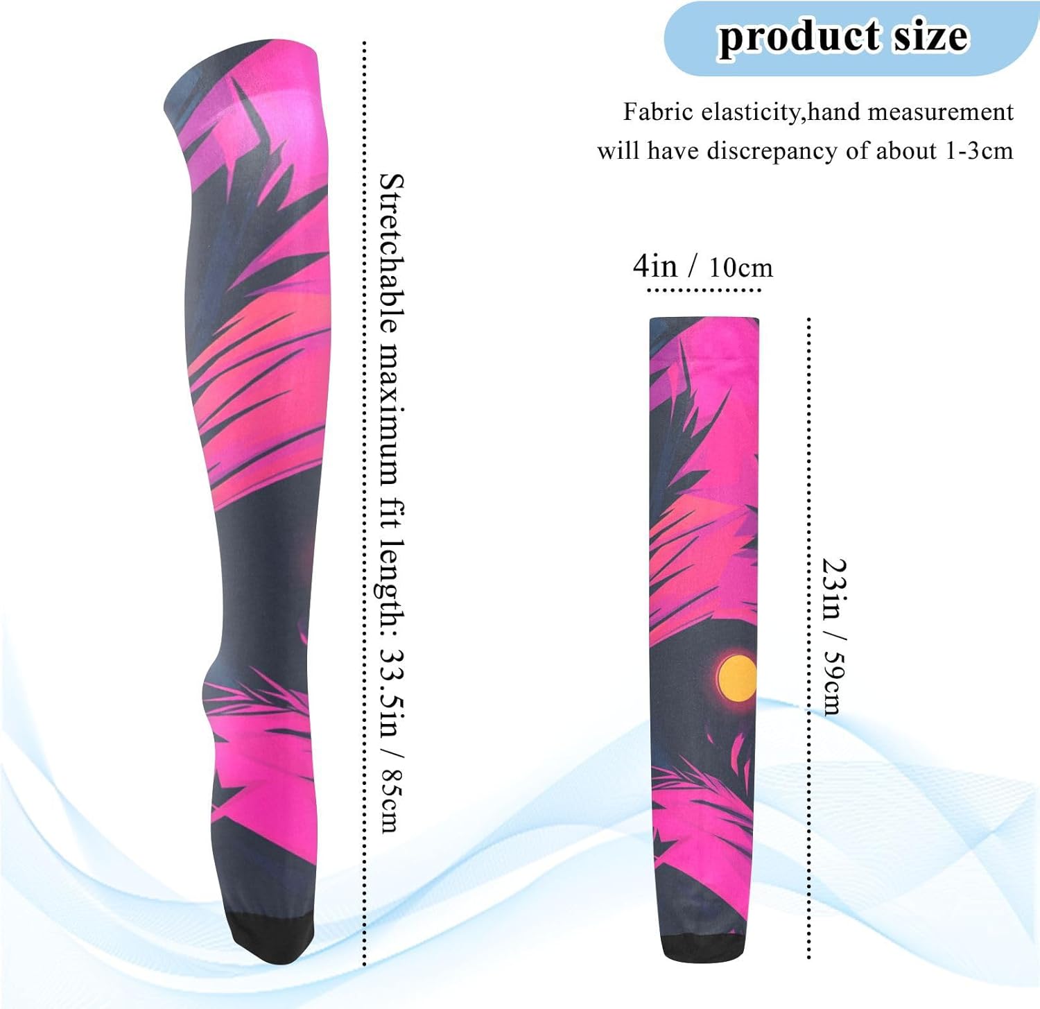 Buona elasticità: i nostri calzini alti per donne alte sono elastici e possono rimanere in posizione per un giorno. La dimensione piatta è di 10,2 x 58,4 cm, adatta per 1,5 metri (59 pollici) e oltre. Traspirante e assorbente, può coprire polpacci e caviglie durante l'esercizio fisico. Morbidi e traspiranti: le calze da donna sopra il ginocchio sono realizzate in 93% nylon e 7% spandex, comode, morbide, leggere e traspiranti Occasione: questi calzini da donna si adattano a tutto, quindi sono adatti per molte attività sportive e per l'uso quotidiano. Look casual e carino con le nostre calze comode ed economiche, poiché sono la buona scelta per l'esercizio. Accessorio elegante e carino per look casual di tutti i giorni e per ogni occasione, soprattutto feste, club e appuntamenti. Caratteristiche: I nostri calzini sopra il ginocchio da donna sono leggeri e di lunga durata, flessibili e traspiranti, morbidi e confortevoli, secondo diversi stili di design, possono essere applicati per uscire, feste, casa, sport e altre occasioni, possono essere abbinati a una varietà di stili di usura. Design sopra il ginocchio: il design sopra il ginocchio delle calze sopra il ginocchio da donna non conferisce eleganza e sensualità, ma altera anche la forma delle gambe in una certa misura. Sia abbinato a una gonna corta o pantaloncini, può rivelare fascino affascinante.