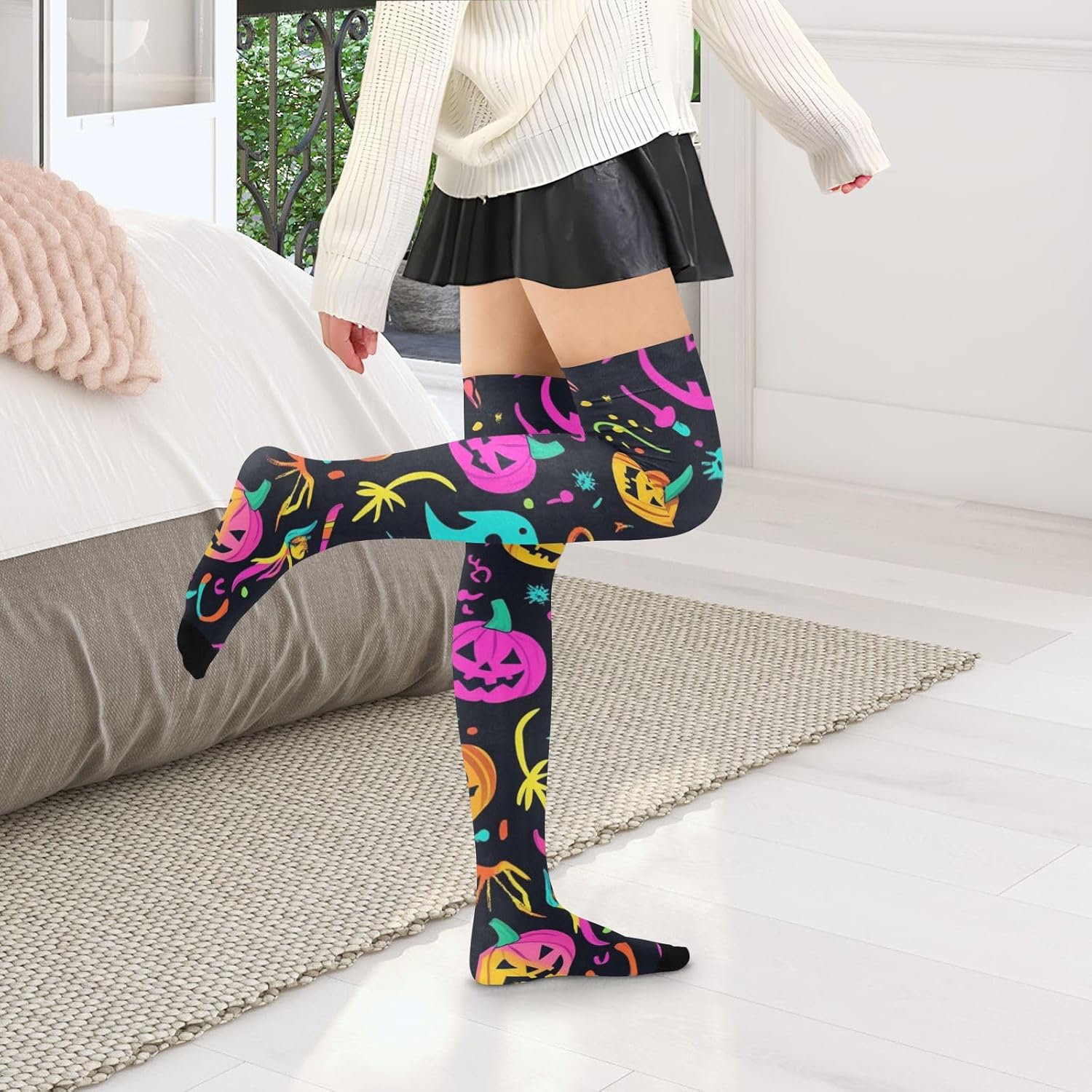 Dimensioni: le calze alte al ginocchio da donna sono lunghe circa 59 centimetri dalla punta alla parte superiore ed elastiche. È adatto per persone di 1,5 metri e oltre. Materiale di qualità: le nostre calze alte da donna sono realizzate in 93% nylon e 7% spandex, morbide e confortevoli, sicure per la pelle e possono essere indossate a lungo; le calze sono splendidamente realizzate e si adattano meglio alle gambe. Versatile: questi calzini sopra il ginocchio da donna possono essere indossati in vari modi e possono essere indossati al ginocchio o piegati sotto il ginocchio, sia per stare al caldo, ma anche per mantenerti chic; calzini alti in diversi colori e motivi sono molto utili per l'uso quotidiano e il cambiamento, abbastanza per molte occasioni. Caratteristiche: I nostri calzini lunghi sopra il ginocchio da donna sono leggeri e di lunga durata, flessibili e traspiranti, morbidi e confortevoli, secondo diversi stili di design, possono essere applicati per uscire, feste, casa, sport e altre occasioni, possono essere abbinati a una varietà di stili di usura. Modello sopra il ginocchio: il design sopra il ginocchio delle calze al ginocchio da donna non conferisce eleganza e sensualità, ma modifica anche la forma delle gambe in una certa misura. Sia combinato con una gonna corta o pantaloncini, può mostrare un affascinante carisma.