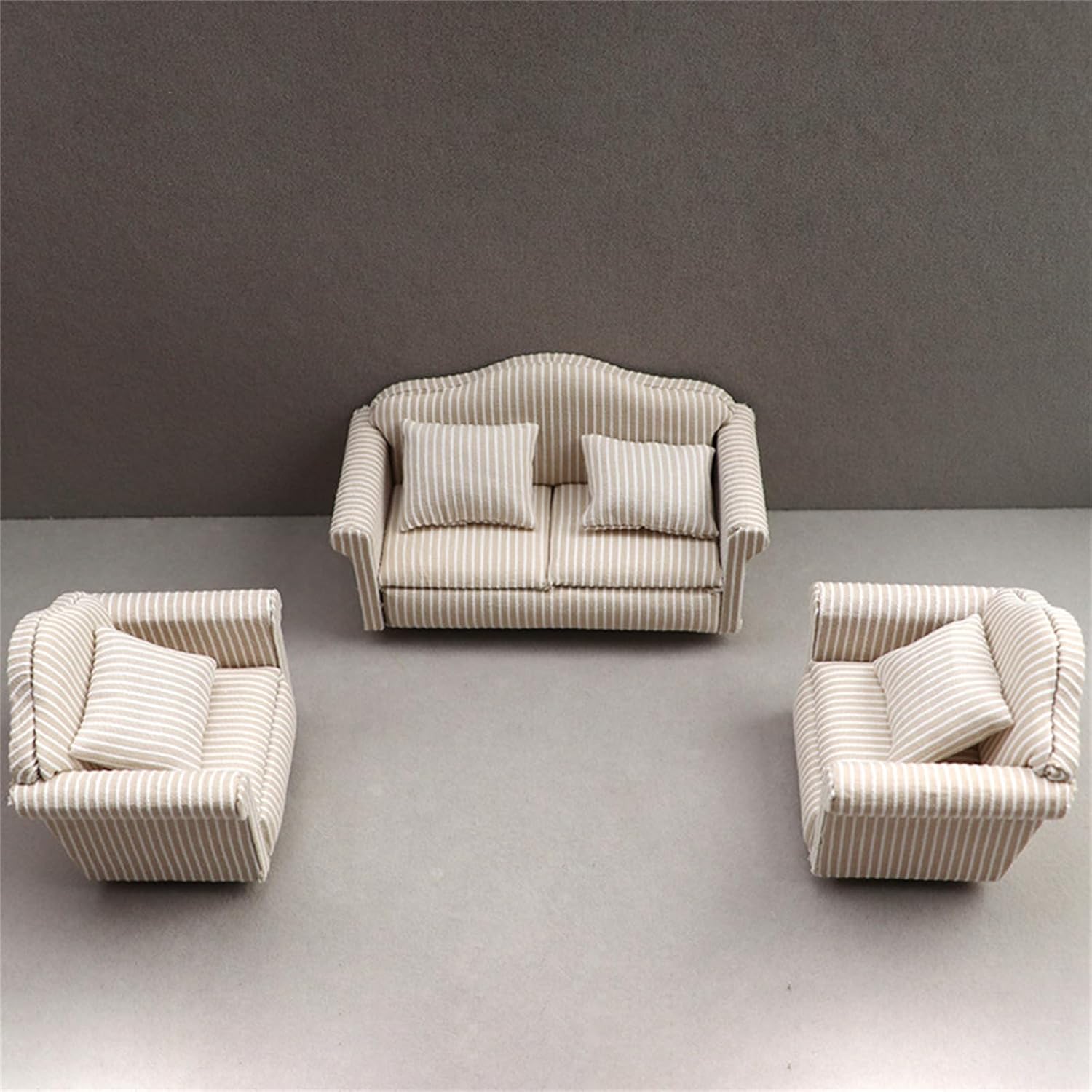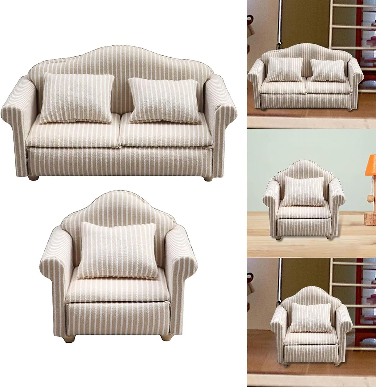 è un regalo molto divertente per coloro che amano i decoratori di case delle bambole Modello di divano vintage e dettagliato, compatto e classico, studio artigianale ad alta riduzione realizzato con materiali in legno e tessuto, questo divano con materiali in legno visivamente accattivanti. Modello dall'aspetto eccellente, non facile da deformare e innocuo, molto vicino alla realtà. Ottimi oggetti di scena per la fotografia