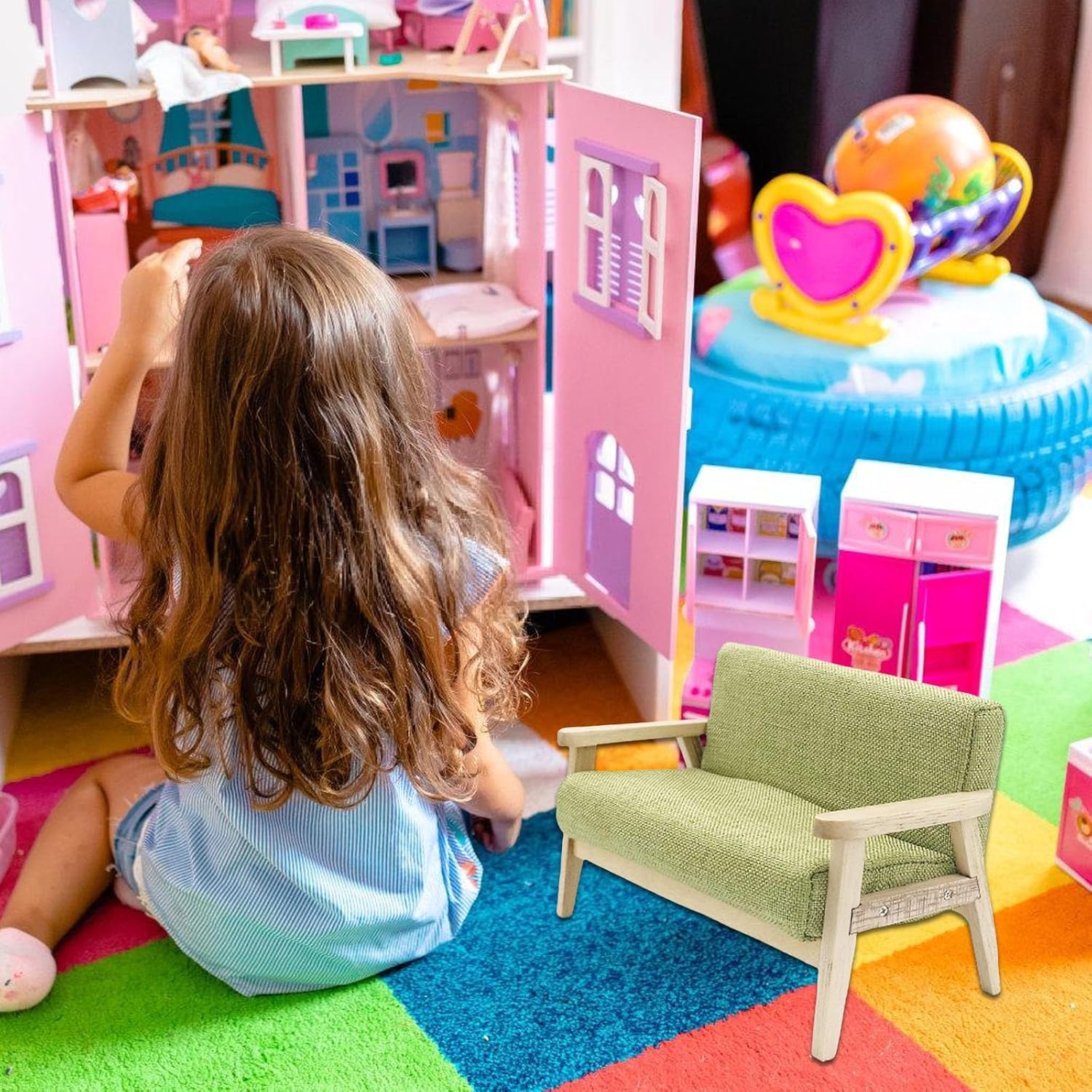 Realizzato artigianalmente con materiali in legno, questo divano visivamente accattivante ha un ottimo aspetto, modello molto vicino alla realtà. Grandi oggetti di scena per la fotografia Modello di divano dettagliato e vintage, compatto e classico, materiali in legno studiati ad alta riduzione. Non facile da deformare, innocuo è un regalo molto divertente per chi ama i decoratori di case delle bambole