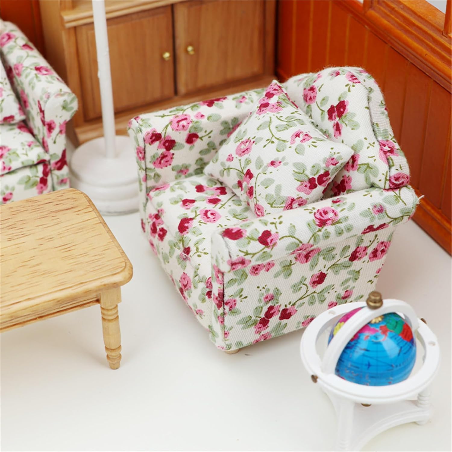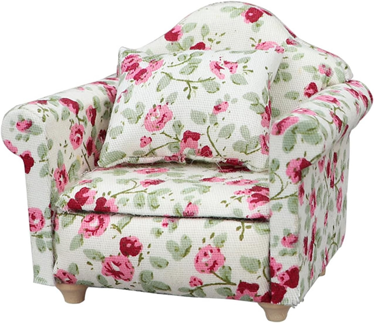 è un regalo molto divertente per chi ama i decoratori di case delle bambole, un modello dall'aspetto eccellente molto vicino alla realtà. Ottimi oggetti di scena fotografici realizzati in legno e materiali in tessuto, questo divano singolo visivamente accattivante Modello a molla singola dettagliato e vintage, finitura compatta e classica con materiali in legno ad alta riduzione. Non facile da deformare e innocuo