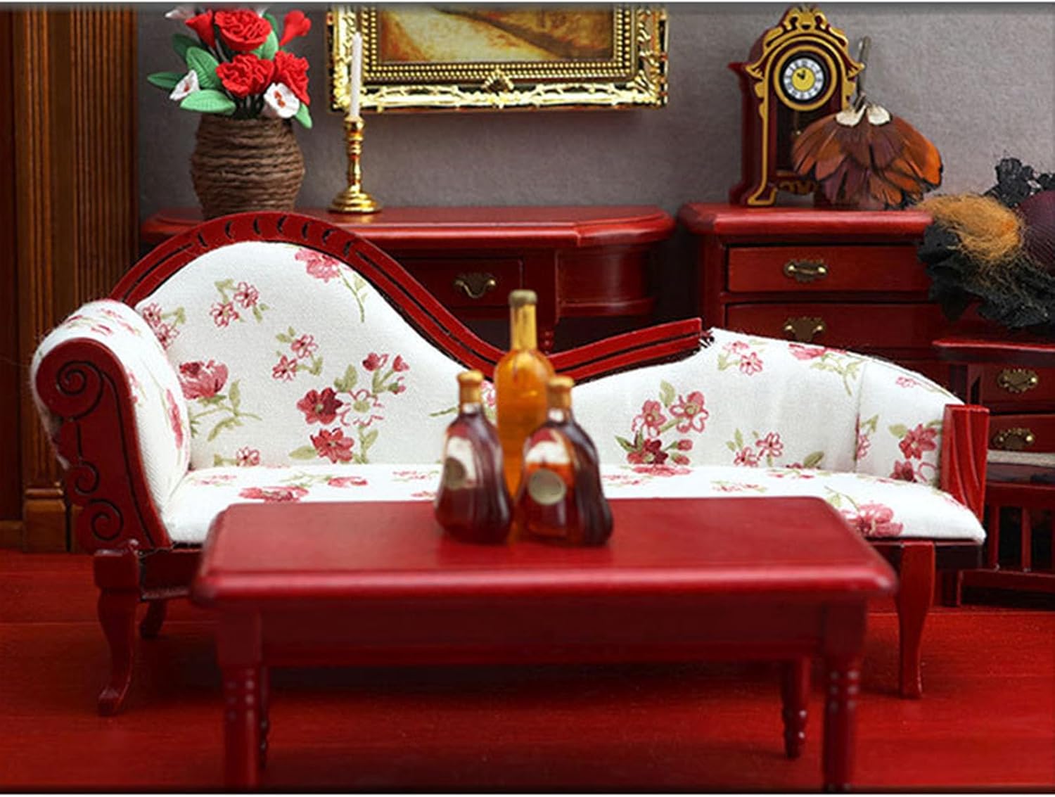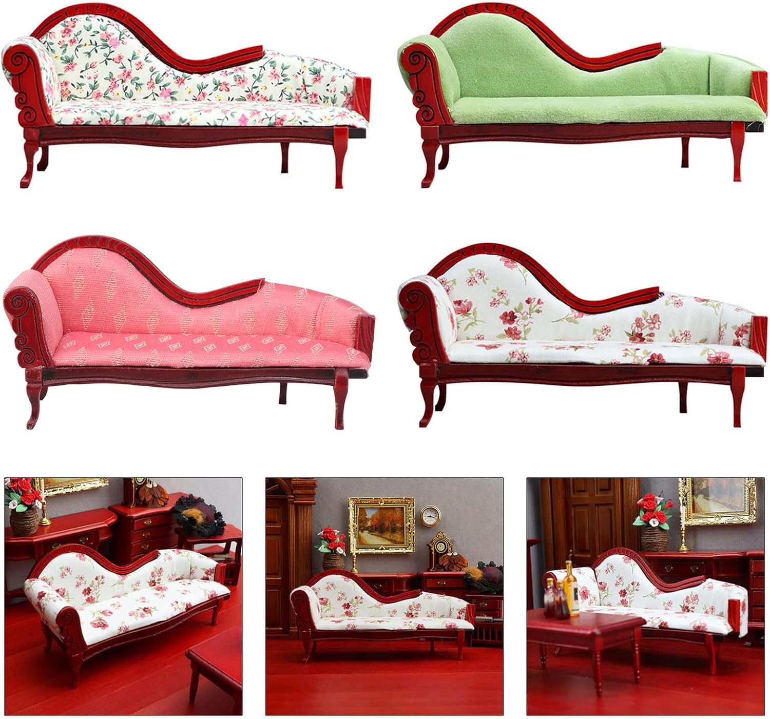 Modello di lettino elaborato e vintage, compatto e classico, alto grado di riduzione Realizzato con materiali in legno, questo divano è visivamente accattivante È molto divertente chi ama i decoratori delle case delle bambole L'eccellente modello di aspetto è molto vicino alla realtà. Ottimi oggetti di scena fotografici Materiali in legno. Non si deforma facilmente