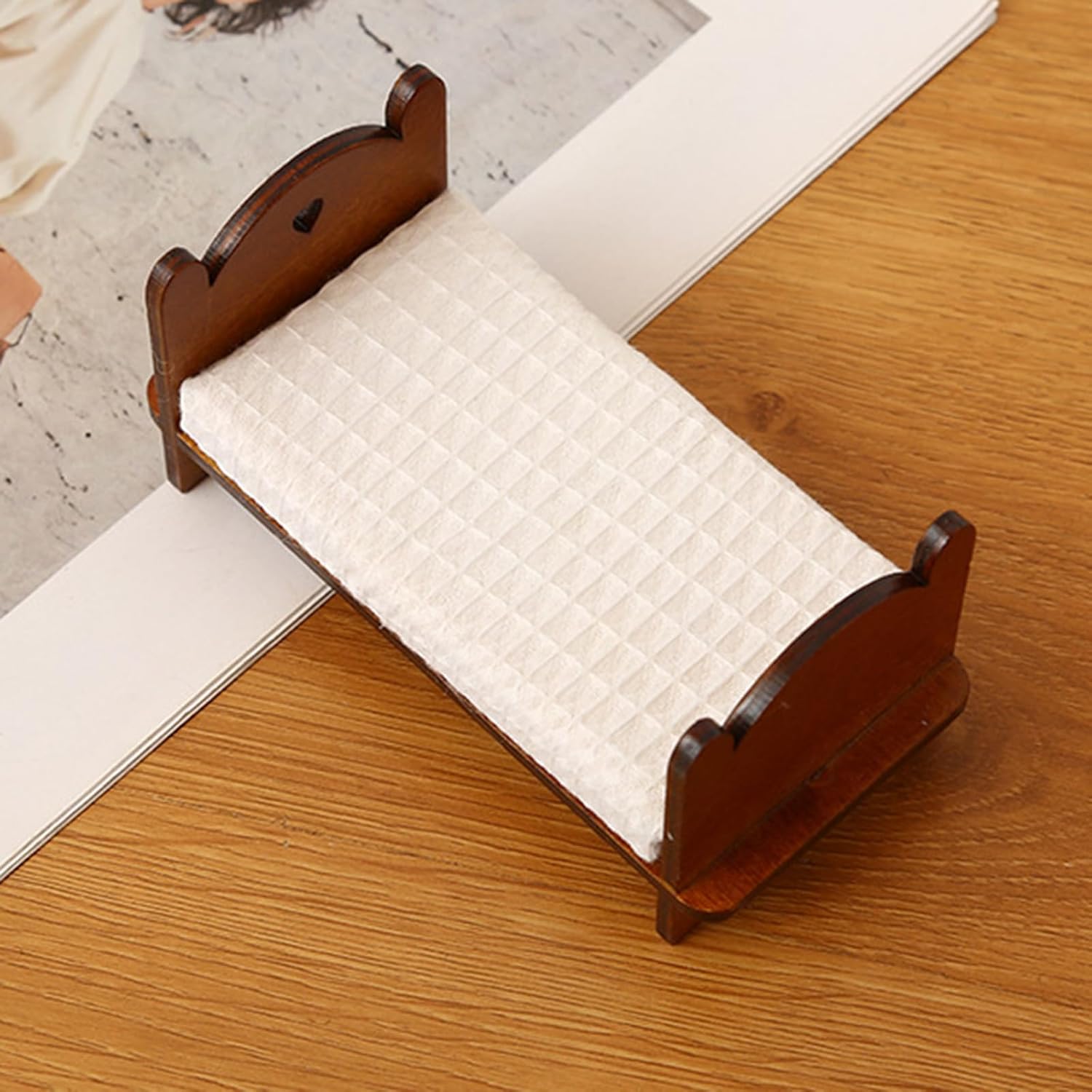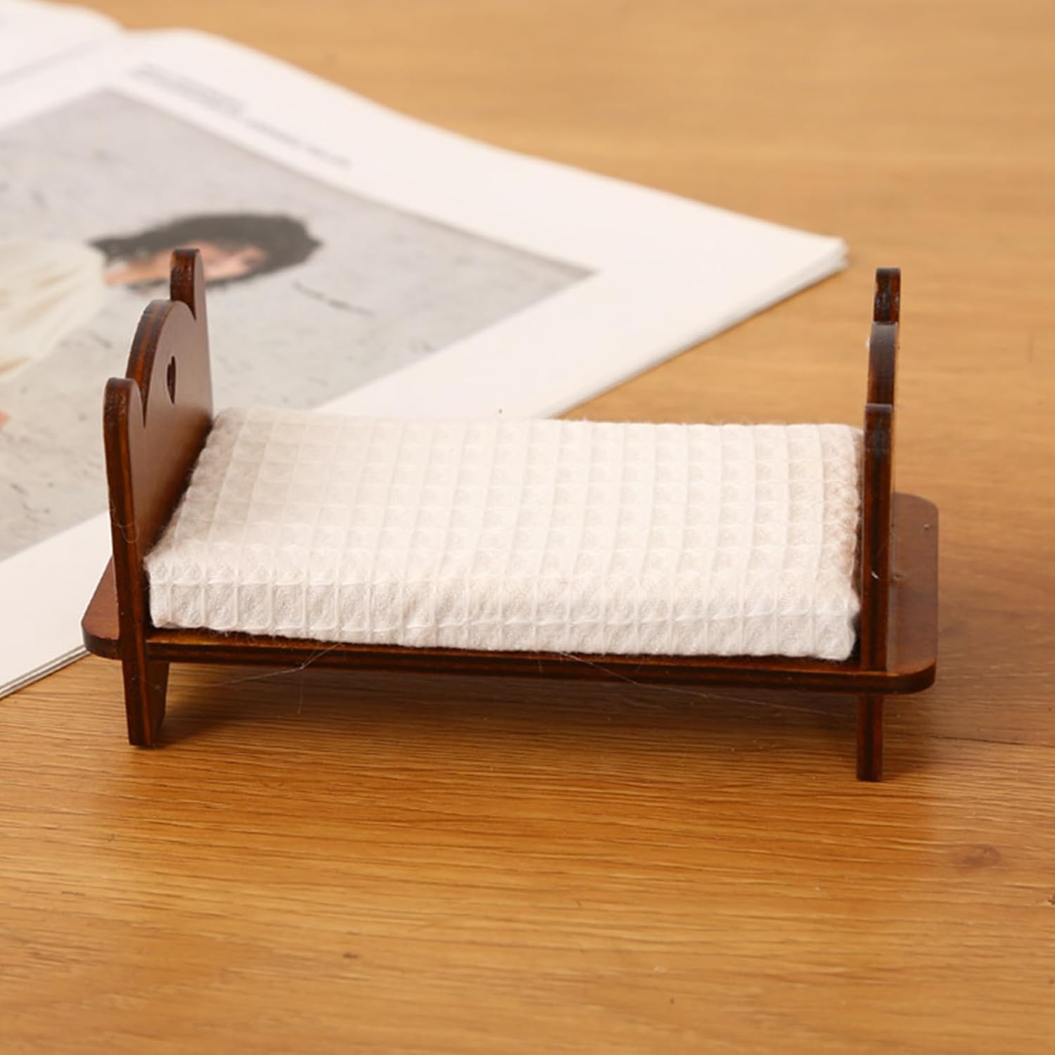Modello di letto singolo elaborato e vintage, compatto e classico, alto grado di riduzione dei materiali in legno. Modello dall'aspetto eccellente, non facile da deformare e innocuo, molto vicino alla realtà. Gli splendidi accessori fotografici sono un regalo molto divertente per coloro che amano i decoratori di case delle bambole realizzati con materiali in legno, questo divano è visivamente accattivante