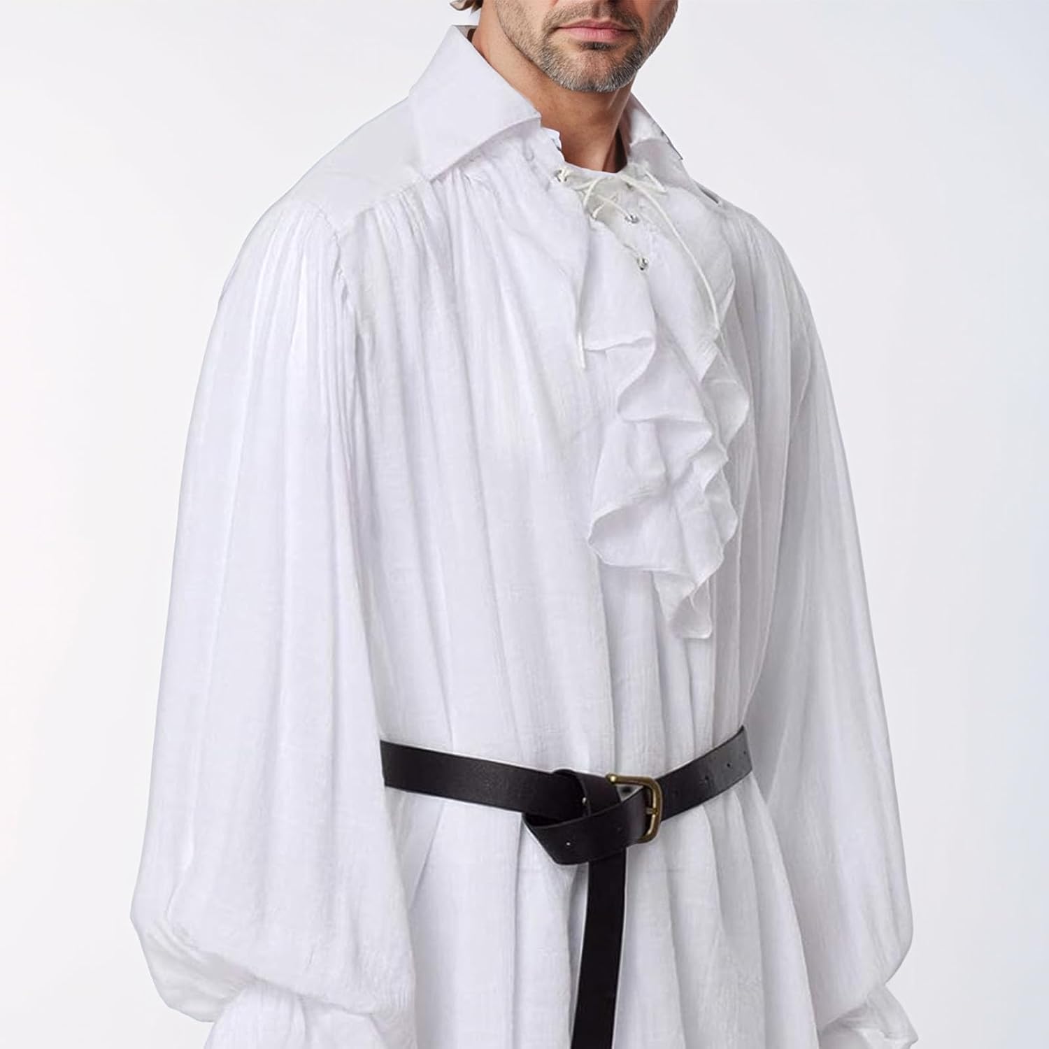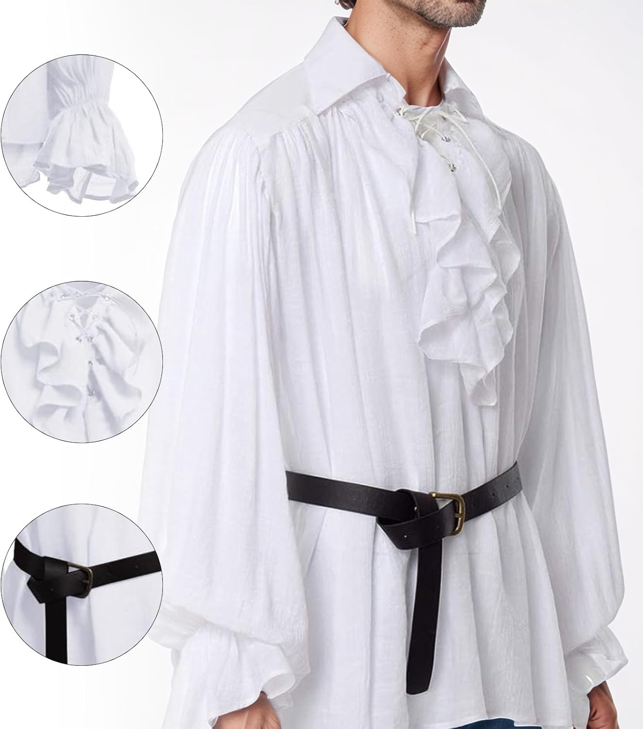 Camicia da uomo con volant con cintura, stile gotico, stile retrò, per cosplay, carnevale, festival, feste