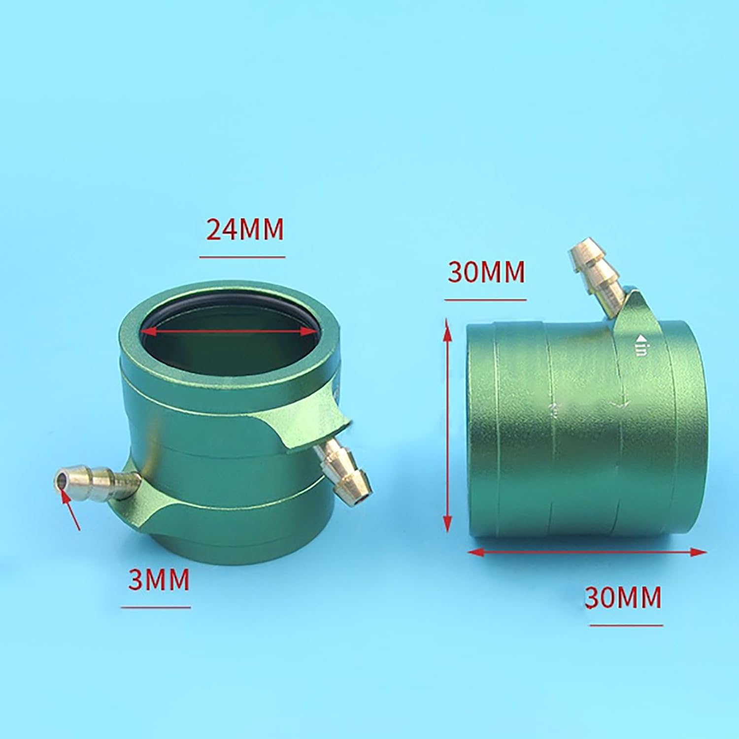 Adatto ai motori brushless con cassa liscia 2430/2440/2445 Dimensioni: lunghezza 30 mm, diametro interno 24 mm, diametro esterno 30 mm Include 2 O-ring preinstallati for una tenuta stagna Ingresso/uscita dell'acqua da 3 mm compatibile con tubi di raffreddamento da 3×5 mm Lega di alluminio lavorata a CNC for un'efficienza di raffreddamento superiore
