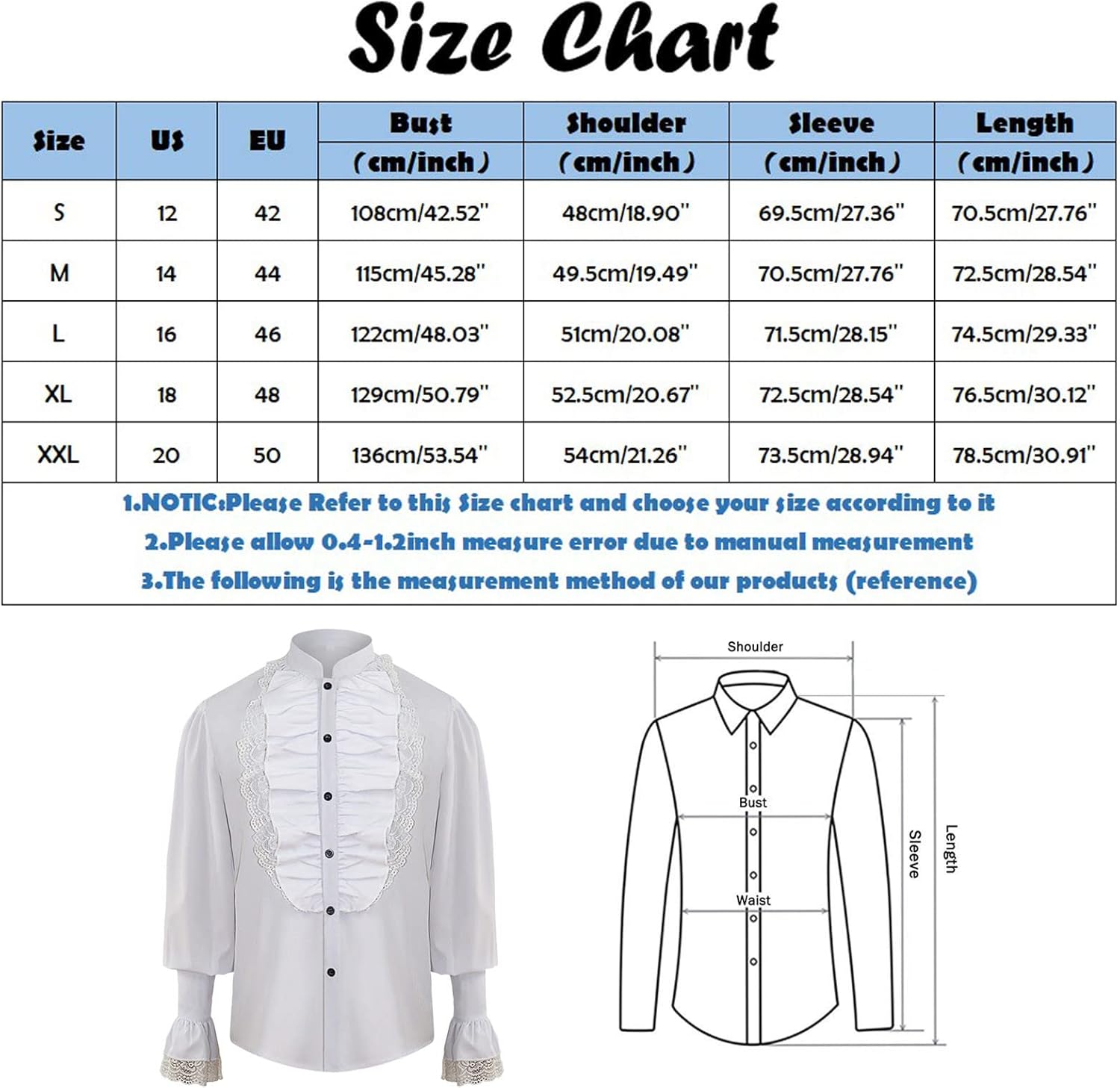 Top vintage vittoriano da uomo: fusione di estetica retrò e stile moderno Questo top vintage vittoriano da uomo combina abilmente eleganza classica e taglio moderno, rendendolo un must per il guardaroba di ogni amante del vintage. Suggerimenti: consigli: lavare in lavatrice o a mano in acqua fredda consigliato. Si prega di consultare la tabella delle taglie prima dell'acquisto. Si consiglia di lavare a mano, non candeggiare. Buon shopping. Il taglio classico, il collo mao e i polsini eleganti lo rendono un pezzo ideale per l'uso quotidiano. Questa camicia vintage vittoriana eleganza e casual. La sua silhouette dritta, leggermente ampia, si libera dalle sollecitazioni dei tradizionali abiti vintage e si adatta perfettamente al moderno uomo. Questo top è versatile. Per una serata vintage o gotico per ricreare istantaneamente il classico aristocratico vittoriano e attirare tutti gli sguardi. Per eventi culturali come mostre d'arte e concerti per un'atmosfera artistica. In autunno e in inverno per riscaldarti pur mantenendo un tocco vintage, garantendo così un elegante anche nelle giornate fredde. Che si tratti di viaggi quotidiani o di un abbigliamento casual, questa camicia retrò gotica steampunk da uomo indossalo da solo o a castello per una maggiore eleganza e comfort. elementi retrò. Questo mantiene un tocco vintage pur mantenendo un casual e retrò.