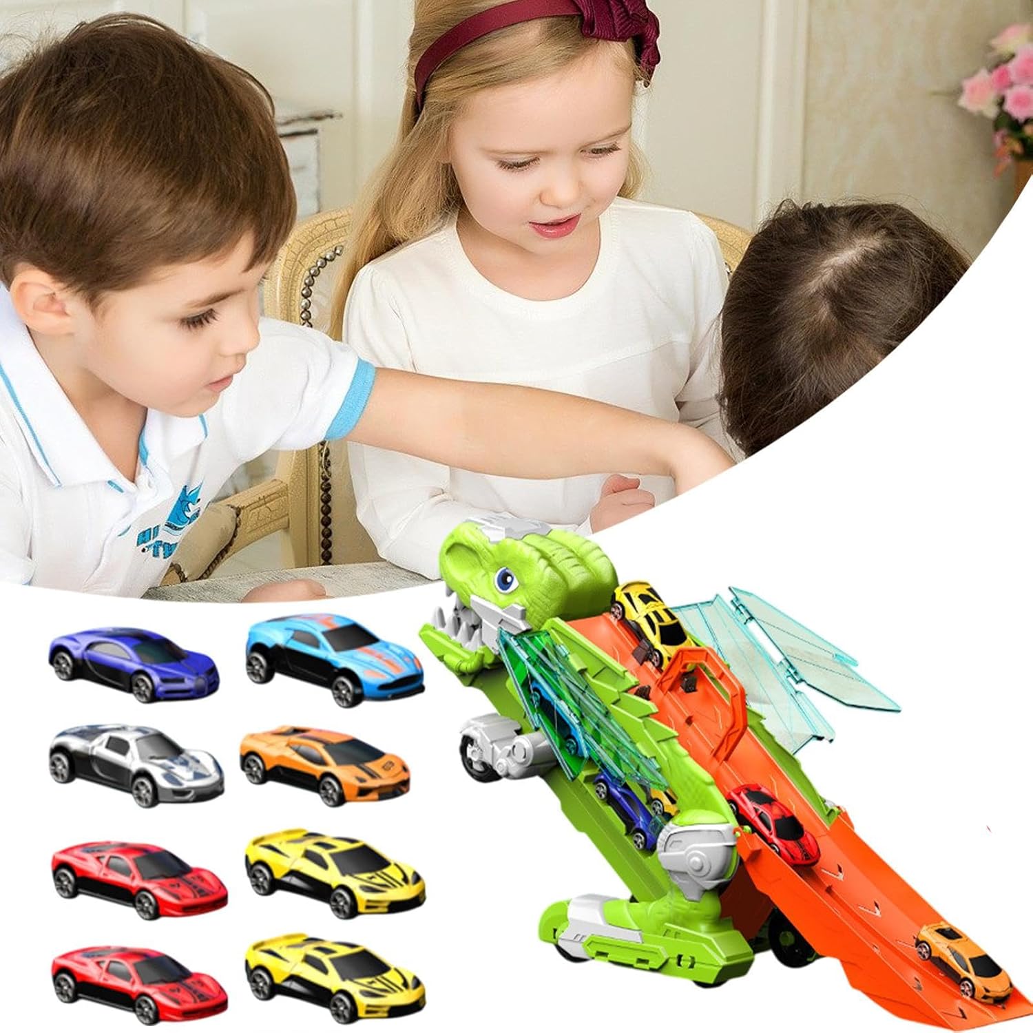 Esperienza Dinamica: Combina auto in lega e doppia pista da corsa per stimolare la creatività, permettendo ai piccoli esploratori di inventare avventure uniche con esperienze di gioco dinamiche e coinvolgenti. Avventura Completa: Con vari accessori e modellini in lega, offre doppia passione per giovani esploratori. Regalo versatile per festività che potenzia creatività e divertimento Pieghevole e Compatto: Con struttura innovativa richiudibile, il camion garantisce un facile stoccaggio senza limitare scenari di gioco dinamici o l'emozione delle corse, permettendo ai bambini di immergersi in avventure durante ogni sessione di gioco creativo con dinosauri trasportabili Materiale Sicuro: Costruito in ABS e lega, questo giocattolo garantisce robustezza nel grazie ai bordi lisci che permettono un gioco per bambini durante attività immaginative Gioco Interattivo: Esplorare le funzioni di trasformazione del camion dei dinosauri in scenari ludici ottimizza la coordinazione e i tempi di reazione attraverso attività pratiche.
