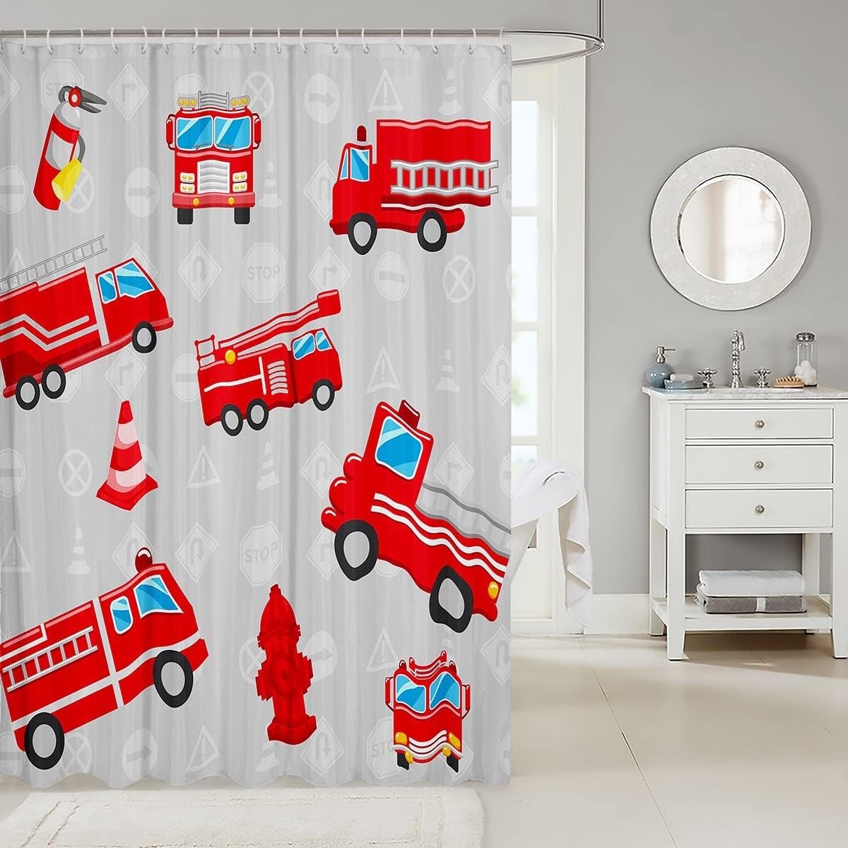 Camion dei pompieri Tenda da bagno per auto Cartoon Firefighter Tenda da doccia tende da doccia Cartton Accessori da bagno per bambini Motore del fuoco 150 x200