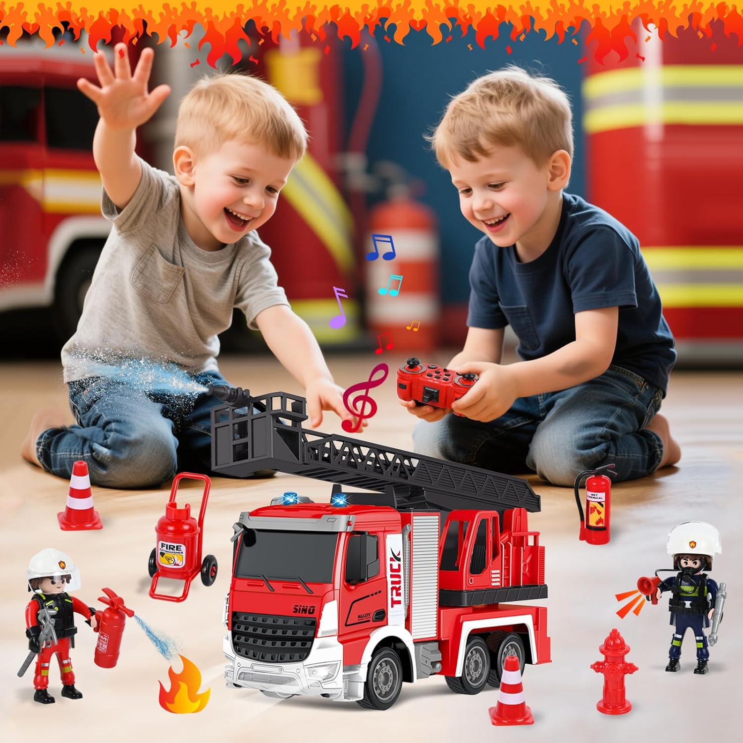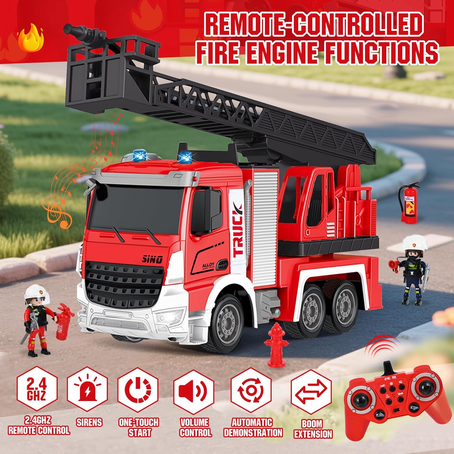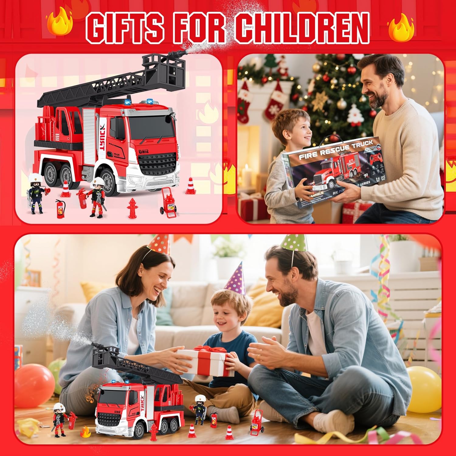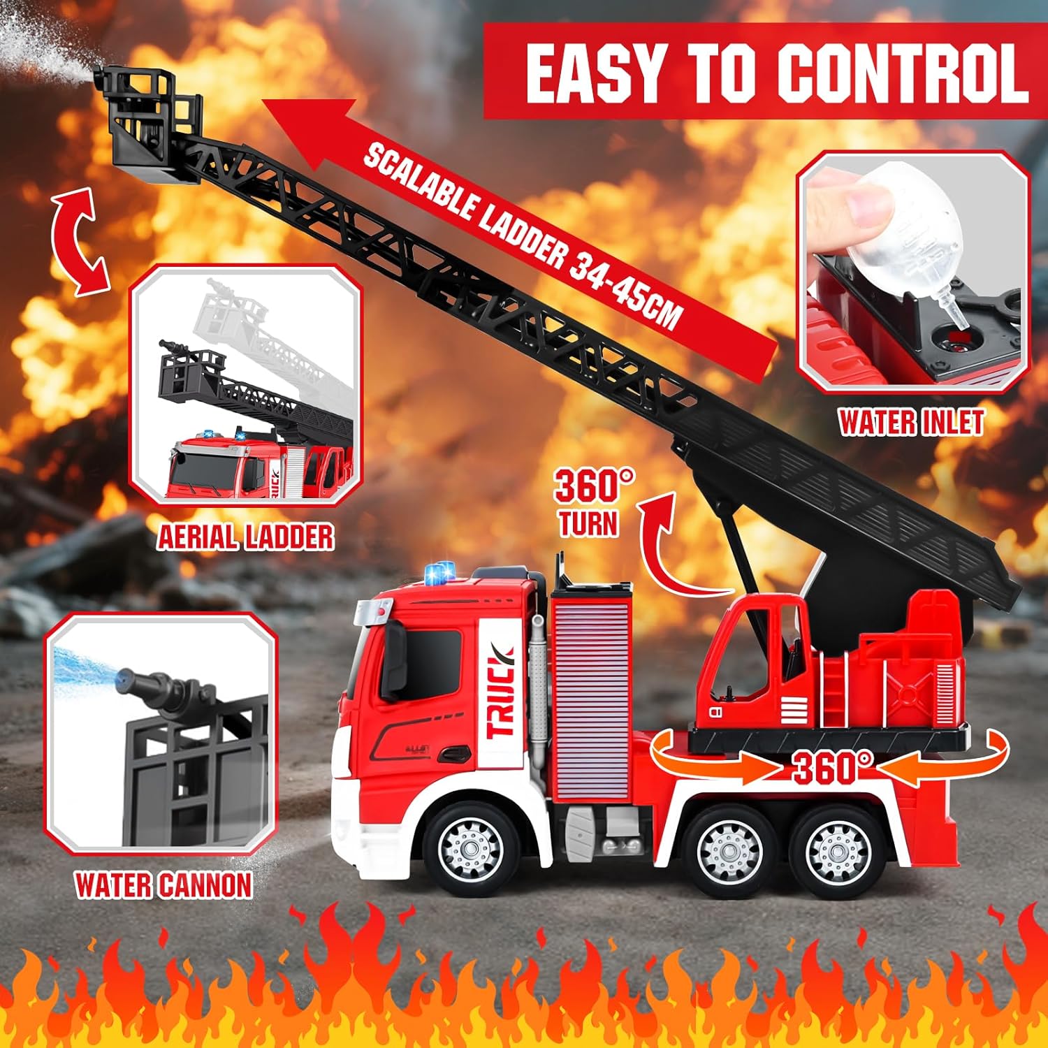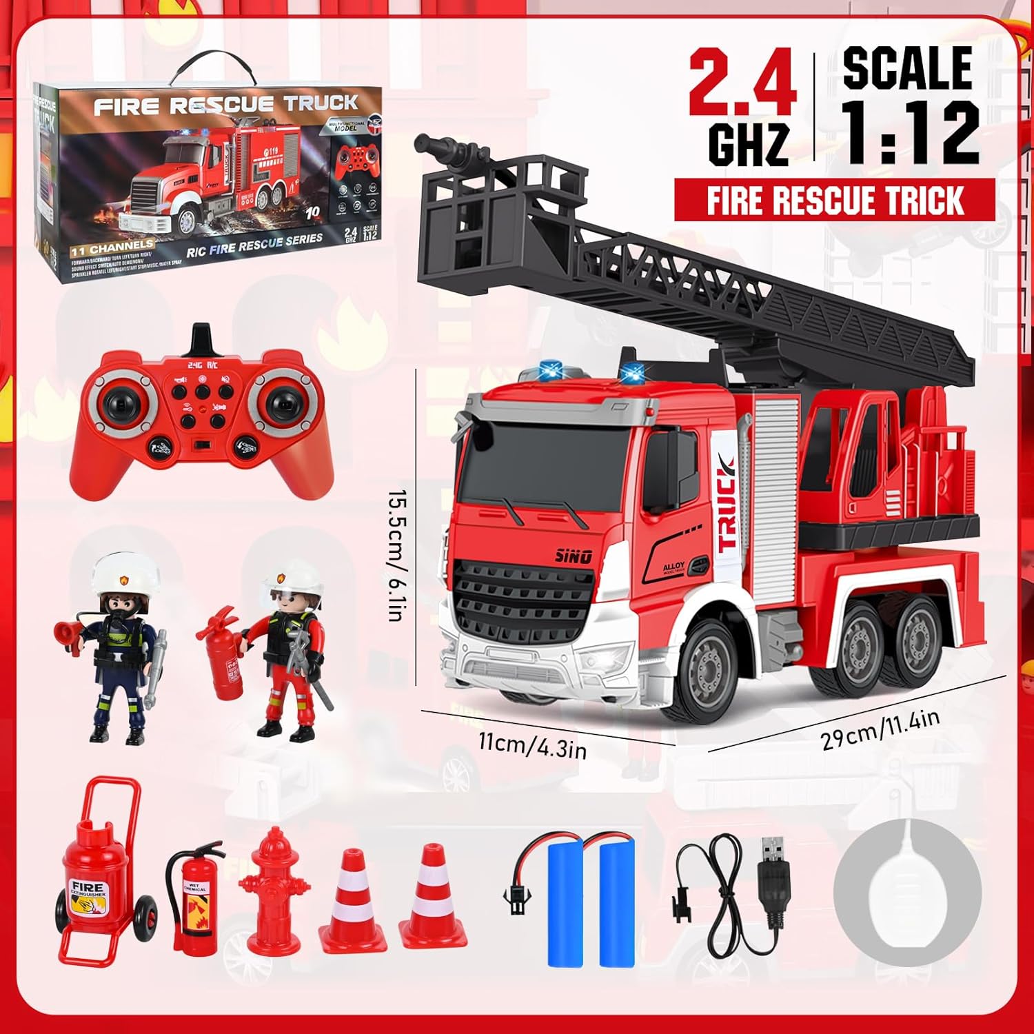 🚒 🚒【Contenuto Della Confezione】Riceverete 1 camion dei pompieri giocattolo in scala 1:12, 1 telecomando, 1 cavo di ricarica, 2 piccoli pupazzi dei pompieri, 1 set di attrezzature antincendio (idrante + estintore + carrello antincendio + barriera stradale), 1 siringa e 1 manuale di istruzioni. Questo non è solo un normale camion giocattolo, ma anche la scelta perfetta per stimolare infinite avventure e giochi intensi. 👨🚒👨🚒【Descrizione del Gioco】Questo camion dei pompieri giocattolo è dotato anche di diverse funzioni, come effetti musicali e luminosi. Il braccio telescopico è telecomandato, è dotato di una vera pistola ad acqua, può essere riempito d'acqua e spruzzare, e insieme ai pupazzetti dei pompieri simula una vera situazione di incendio. 🔥🔥【Telecomando a 2,4 GHz】La tecnologia garantisce un segnale stabile e senza interferenze, il telecomando funziona in modo fluido e ha una portata wireless fino a 40 metri, consentendo di controllare le funzioni di avanzamento, retromarcia, luci, rotazione della scala e spruzzo d'acqua dell'autopompa. Consente a più veicoli di circolare contemporaneamente e può essere utilizzato sia all'interno che all'esterno, offrendo un'esperienza davvero emozionante. 💧💧【Design di Alta Qualità】Questo camion dei pompieri giocattolo è realizzato in plastica ecologica sicura e divertente, resistente alle cadute e all'usura; è alimentato a batteria, con 1,5 ore di ricarica è possibile giocare per 0,5 ore, adatto a bambini di età superiore ai 3 anni e adulti con esperienza di collezionismo. 🎁🎁【Il Regalo Perfetto】Questo camion dei pompieri telecomandato non è solo un giocattolo, ma anche una mini caserma dei pompieri! Questo giocattolo è progettato per stimolare l'immaginazione dei bambini, promuovere il gioco di ruolo creativo e offrire loro un divertimento senza fine. Potete scegliere questo grande camion dei pompieri come regalo di compleanno, regalo per una festa o regalo di Natale per i vostri bambini, che lo adoreranno sicuramente.
