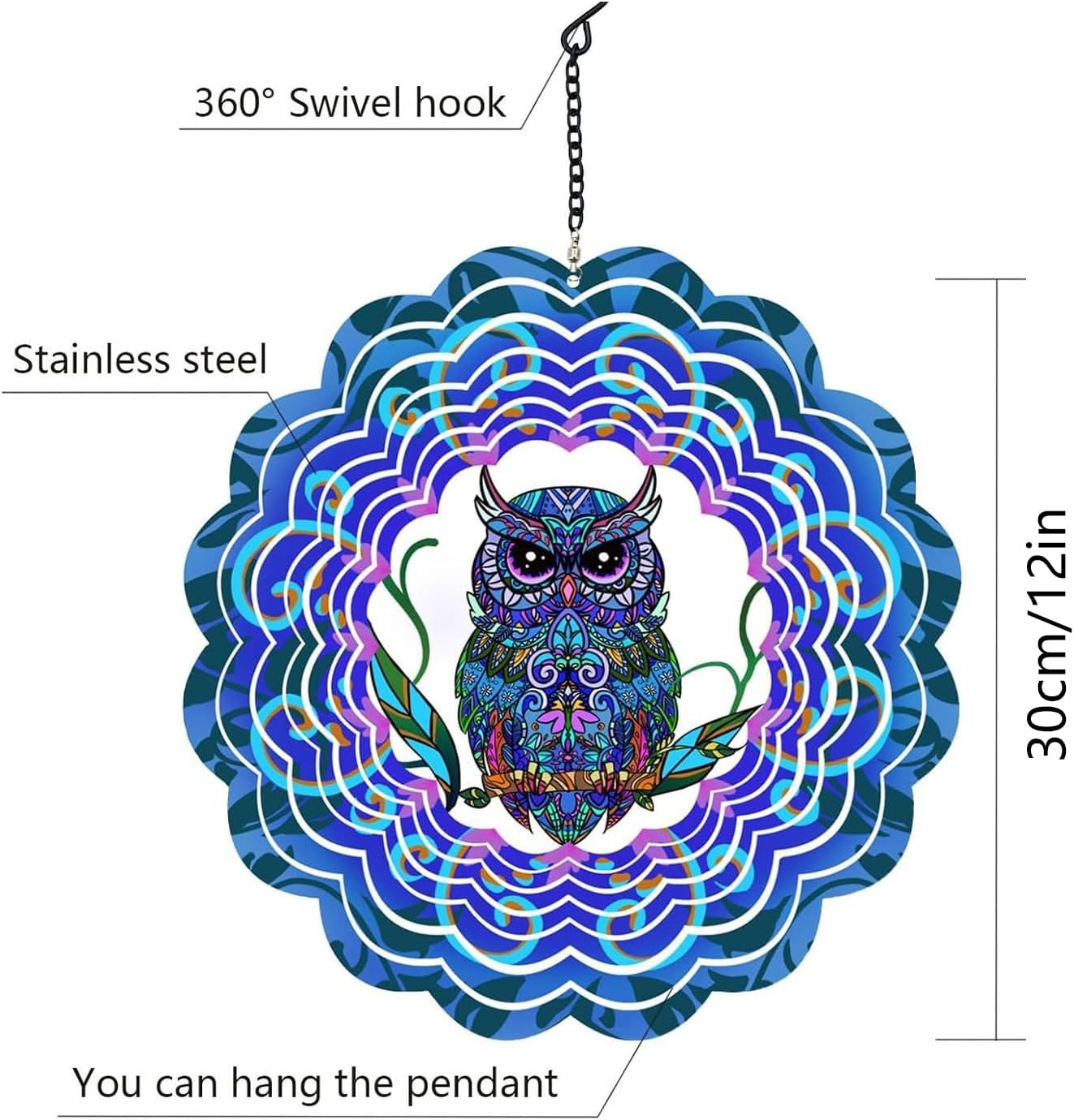 Affascinante design a forma di gufo: solleva il tuo spazio esterno con l'affascinante design rotante 3D di questa girandola da giardino. Lo squisito motivo a gufo ornato con colori vivaci si muove dolcemente con il , creando un'atmosfera rilassante e unica di bellezza e tranquillità. Lavorazione sofisticata: migliora il tuo giardino con questa girandola da giardino realizzata con cura e caratterizzata da un intricato design a forma di gufo. Realizzata con materiali di alta qualità, questa d'arte non è mente sbalorditiva ma anche estremamente robusta, rendendola un'aggiunta duratura al tuo arredamento da esterno. Crea un'atmosfera rilassante: sperimenta le melodie pacifiche e la grazia estetica di questa girandola da giardino, che offre una miscela armoniosa di bellezza e toni rilassanti. Decorazioni raffinate: questa girandola da giardino è un must per ogni casa, aggiungendo decorazioni multifunzionali e fascino dinamico alle tue aree esterne come giardini e terrazze. Puoi anche dare vita agli spazi interni come soggiorni e camere da letto grazie alla sua versatilità e al design unico. Installazione semplice: questa girandola da giardino è facile da installare e progettata per mantenere la sua bellezza e funzionalità nel con una manutenzione minima. Appenderlo in qualsiasi ambiente per un tocco di eleganza senza sforzo.