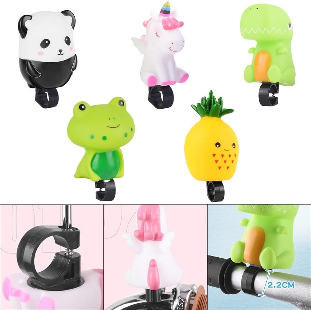 Design con cartoni animati: questo campanello per bicicletta ad aria presenta un simpatico design a cartoni animati che aggiunge un tocco divertente e giocoso a bici e scooter per bambini. Varietà di stili: con diversi stili disponibili, puoi trovare il campanello perfetto per abbinare la personalità e la bici del tuo bambino, consentendo loro di esprimere il proprio stile unico durante la guida. Facile installazione: il campanello è facilmente installato su manubri con un diametro di 2 cm, fornendo una vestibilità sicura. Non si sposta facilmente durante le corse, un'esperienza senza problemi. Suono super forte: nonostante il suo aspetto carino, questa campana offre un suono super forte che avvisa efficacemente gli altri della tua presenza sulla strada o sul sentiero. Migliora la sicurezza durante la guida e offre tranquillità ai genitori. Ideale per i bambini: questo campanello è ideale per i bambini che amano i dinosauri e amano andare in bicicletta o scooter. Porta gioia ed eccitazione nelle loro avventure all'aria aperta.