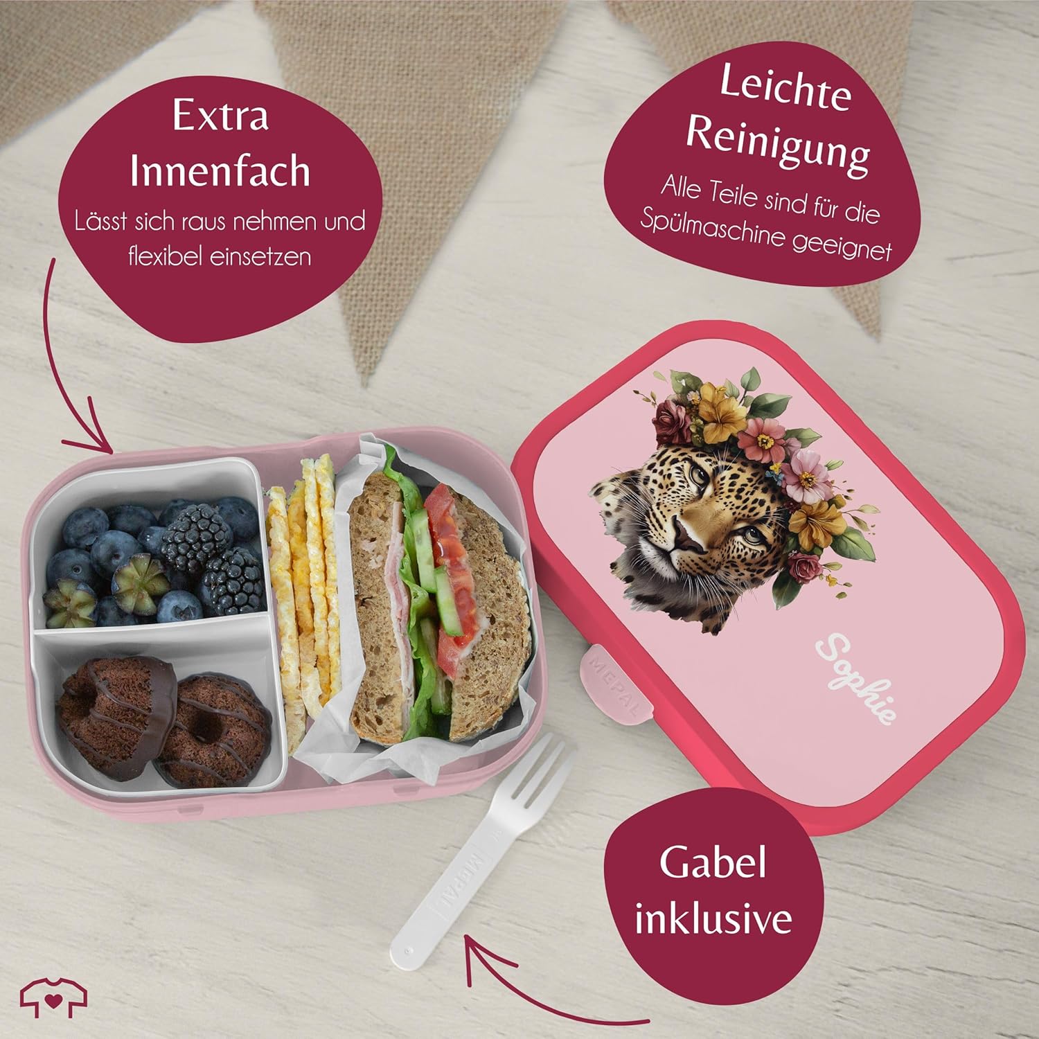Campus per bambini Mepal - Leopardo - contenitore per il pranzo con motivo leopardato
