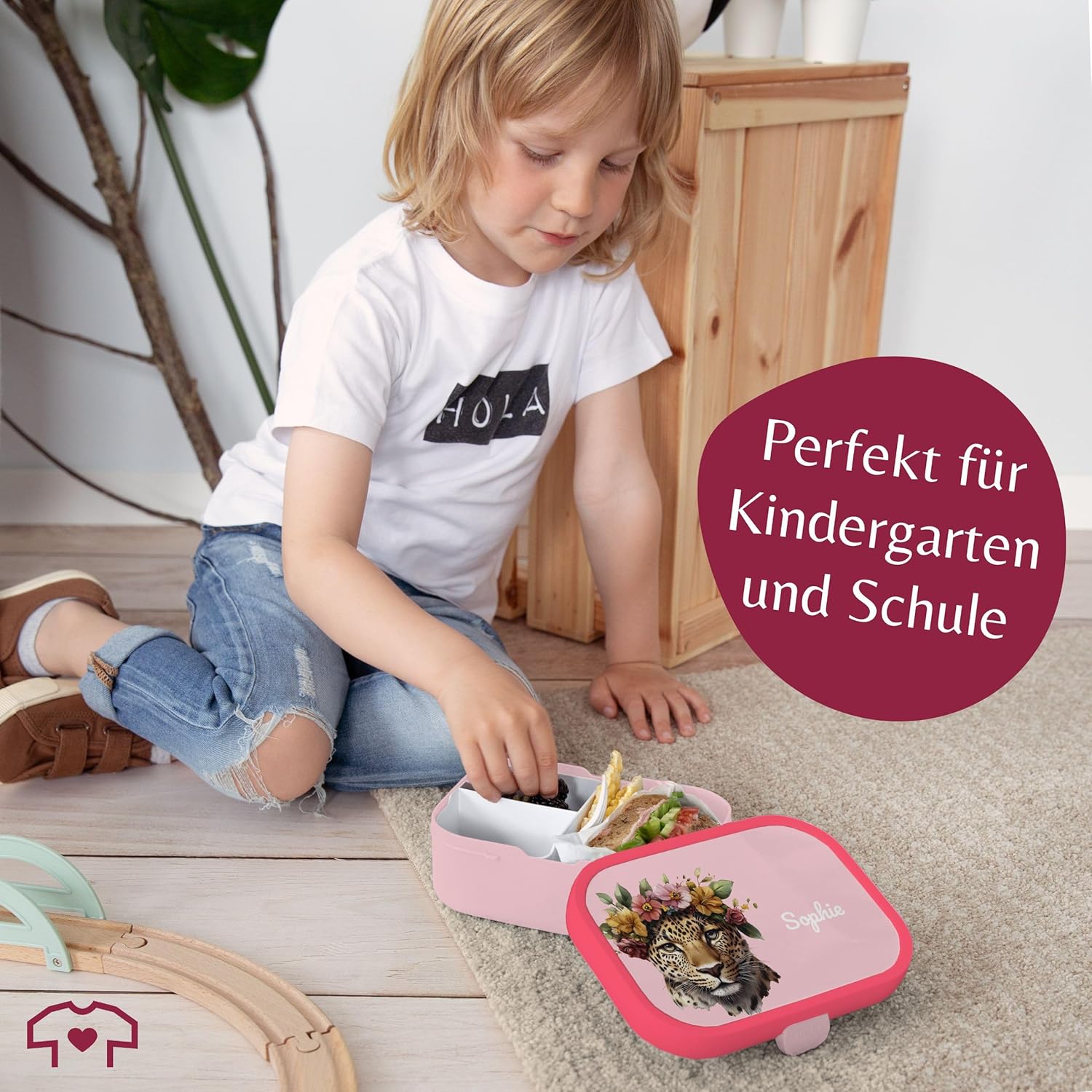 Inserto Bento: questo bellissimo contenitore per il pranzo per bambini consente di separare il cibo grazie all'inserto Bento rimovibile e può quindi essere utilizzato in diversi modi. Che si tratti del classico pranzo o della frutta fresca e secca per la scuola, grazie agli scomparti tutto rimane fresco e appetitoso. Forchetta snack: il contenitore per il pranzo ti invita a gustare un'ampia varietà di cibi con la piccola forchetta snack. Il contenitore per snack non è adatto al microonde. Per riscaldare il cibo è quindi necessario toglierlo dal contenitore del pranzo. Lavabile in lavastoviglie: la pulizia del contenitore per il pranzo dei bambini può essere effettuata facilmente in lavastoviglie dopo l'uso. Sia il contenitore per il pranzo, l'inserto bento che la forchetta sono lavabili in lavastoviglie e quindi facili e igienici da pulire. Il materiale del contenitore per il pranzo è privo di BPA e adatto agli alimenti, quindi non dovrai preoccuparti delle sostanze chimiche nocive. Leggero: con un peso di soli 250 grammi, il contenitore per il pranzo stampato può essere facilmente portato ovunque. Con una dimensione di 132 mm di larghezza, 178 mm di lunghezza e 61 mm di altezza, il contenitore per il pranzo è compatto e perfetto per la borsa della scuola o lo zaino. Con una stampa divertente, il portapranzo è perfetto per l'inizio della scuola e per ogni altra pausa pranzo. Facile da aprire: grazie al sistema di chiusura, aprire il portapranzo è un gioco da ragazzi. Il coperchio può essere completamente rimosso, il che è particolarmente pratico quando si mangia fuori dal contenitore per il pranzo. Gli inserti separatori e la forchetta snack inclusa assicurano che il tuo spuntino rimanga appetitoso e fresco