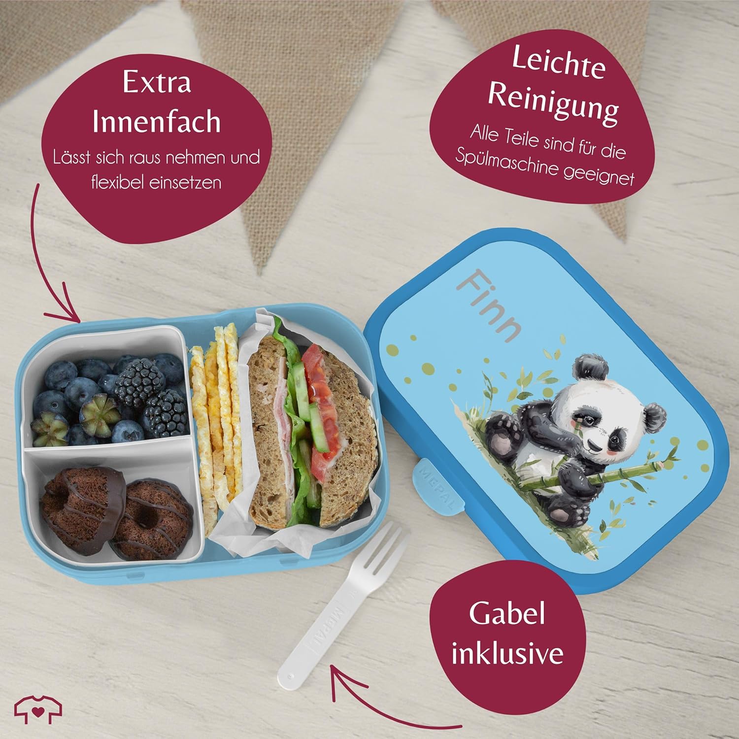 Campus per bambini Mepal - Panda - Portapranzo personalizzato con orsetto panda