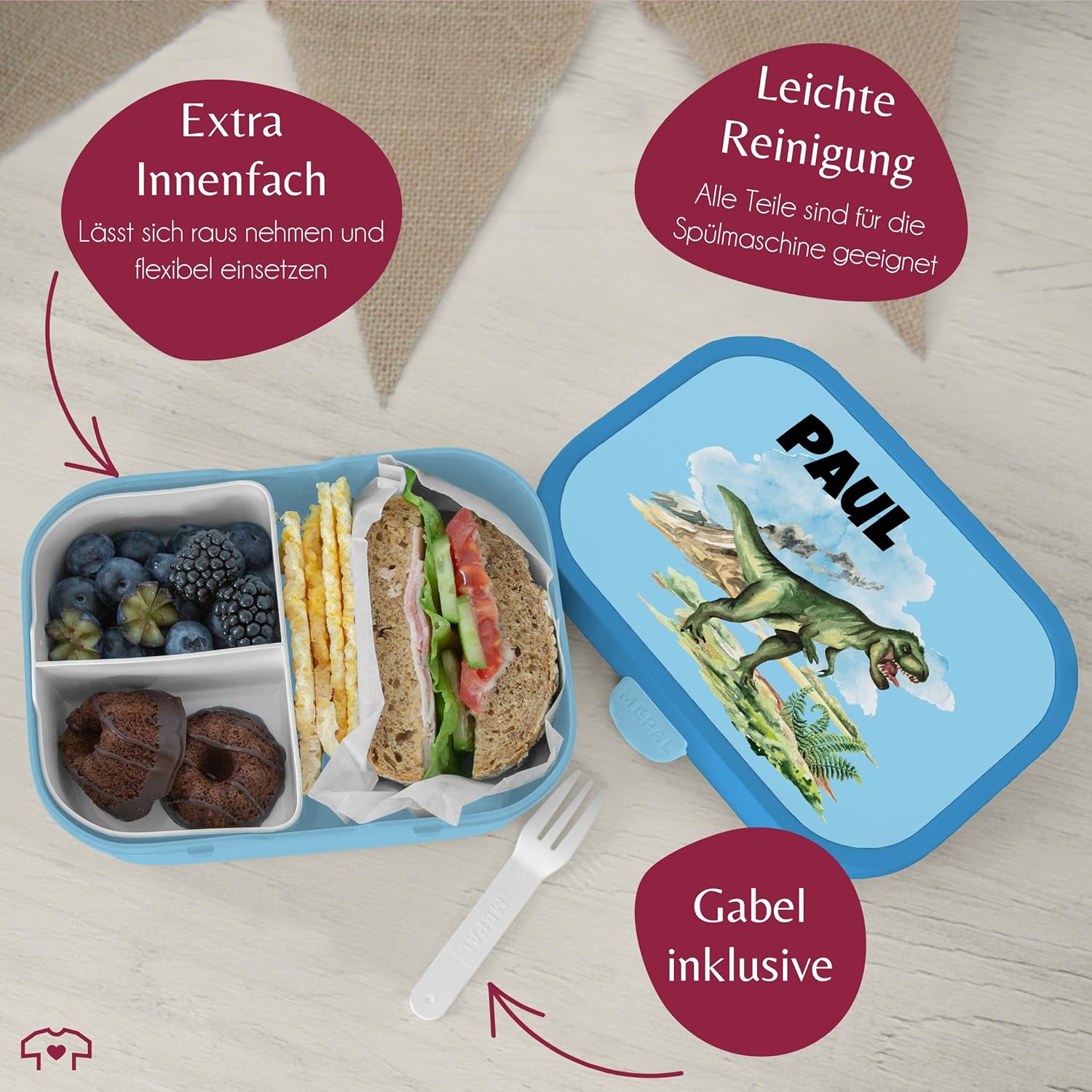 | Enthaltene Komponenten | Bento-Einsatz, Brotdose, Snack-Gabel |