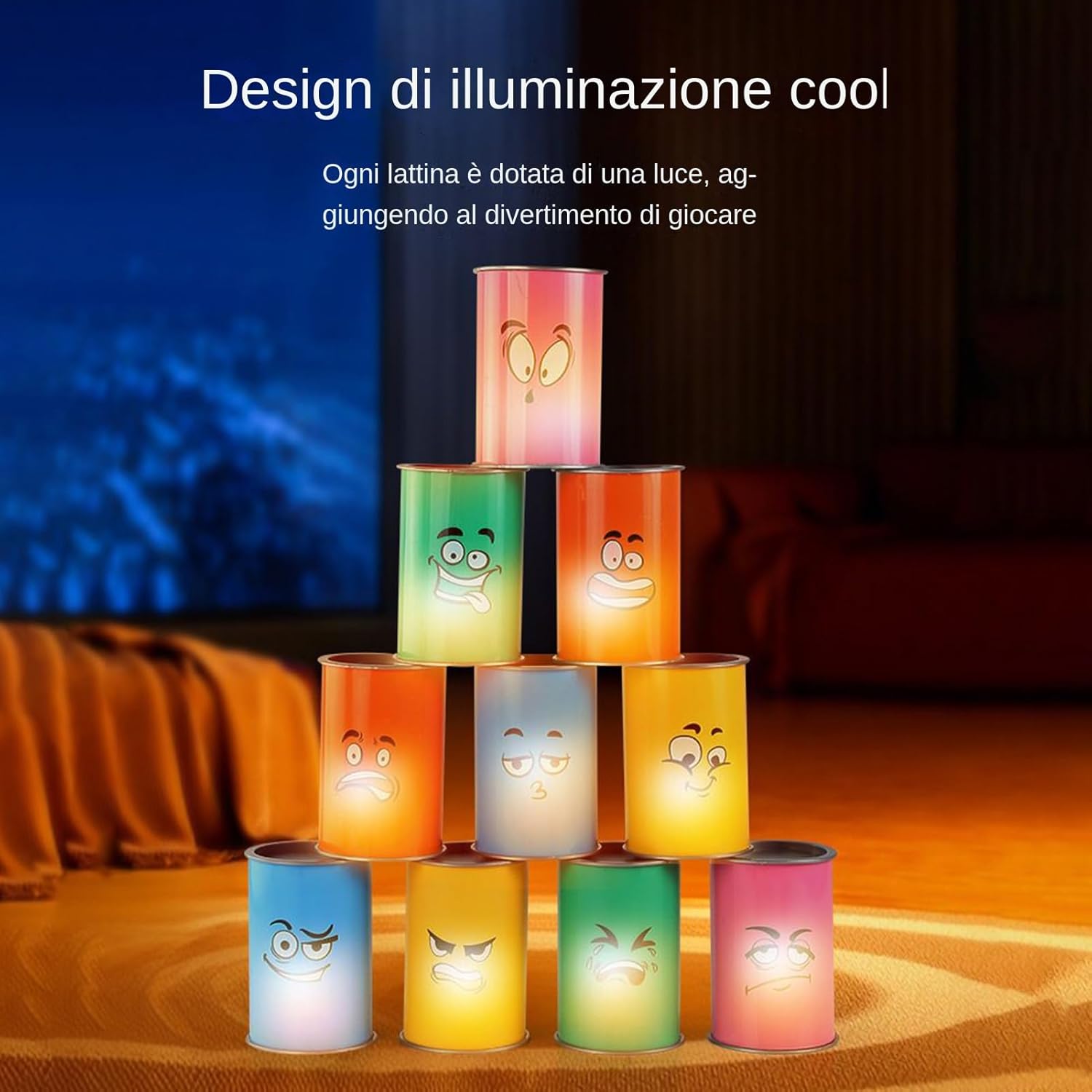 Coord. Occhio-Mano: Progettato per sviluppare coordinazione occhio-mano, aiuta a potenziare abilità motorie e concentrazione con allenamenti costanti sul bersaglio Regalo Affettuoso: Progettato per tutte le età, questo gioco di lancio barattoli favorisce l'interazione sociale, rendendolo una scelta popolare per feste di compleanno e attività di gruppo, oltre a essere un'idea regalo premurosa per occasioni speciali. Doppia faccia divertente: Scopri opzioni di gameplay dinamico con layout a due lati, caratteristiche LED illuminate, bersagli chiaramente segnati e compatibilità per allenamenti notturni eccitanti Attività Versatile Interno/Esterno: Migliora la tua esperienza all'aperto con questo gioco da lancio barattoli, unendo divertimento familiare e interazione di gruppo; dotato di barattoli LED da lancio, serve come attività coinvolgente per campeggi e incontri interno-esterno, stimolando risate e legami Costruzione Robusta: Realizzato con materiale ABS di alta qualità, resiste efficacemente agli impatti, assicurando sicurezza e solidità per innumerevoli sessioni di gioco divertente con famiglia e amici