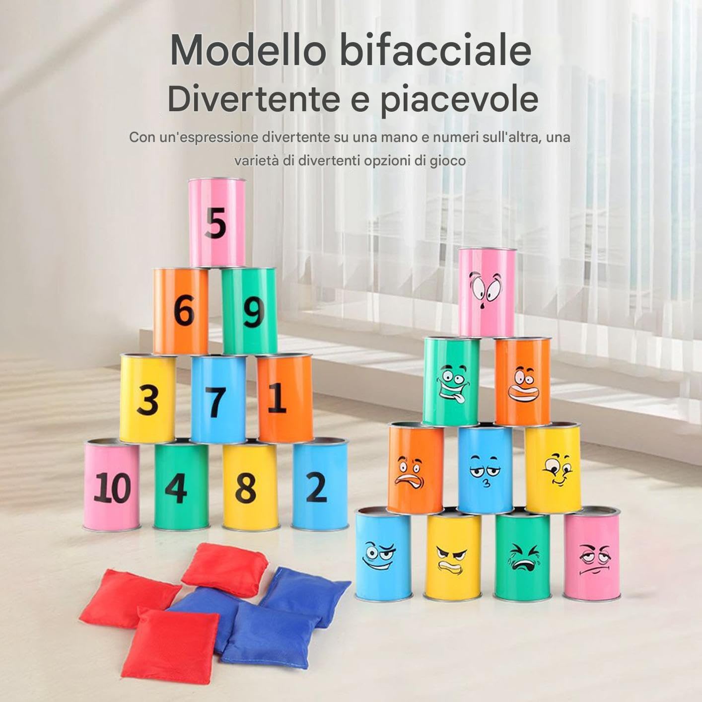 Sviluppo Abilità: Ideale per affinare la precisione, il gioco di lancio favorisce la coordinazione occhio-mano e potenzia la concentrazione offrendo un'esperienza divertente ma stimolante Regalo Affettuoso: Progettato per tutte le età, questo gioco di lancio barattoli favorisce l'interazione sociale, rendendolo una scelta popolare per feste di compleanno e attività di gruppo, oltre a essere un'idea regalo premurosa per occasioni speciali. Doppia faccia divertente: Scopri opzioni di gameplay dinamico con layout a due lati, caratteristiche LED illuminate, bersagli chiaramente segnati e compatibilità per allenamenti notturni eccitanti Intrattenimento Eccitante per Campeggio: Favorisce il lavoro di e la connessione con questo gioco interattivo da lancio barattoli, adatto sia per interni che esterni; i barattoli con LED offrono più intrattenimento, rendendolo un must have per riunioni familiari e avventure in campeggio Struttura Inalterabile: Ideato con materiale ABS antiurto, offre una struttura sicura e duratura, mantenendo condizioni eccellenti anche dopo ripetuti utilizzi grazie alla sua composizione robusta e affidabile
