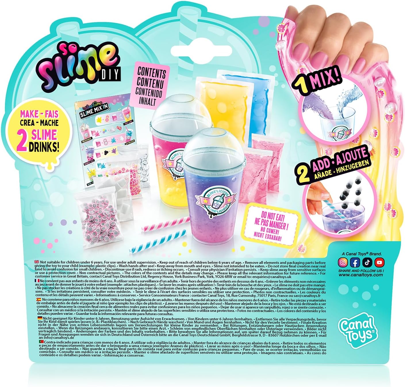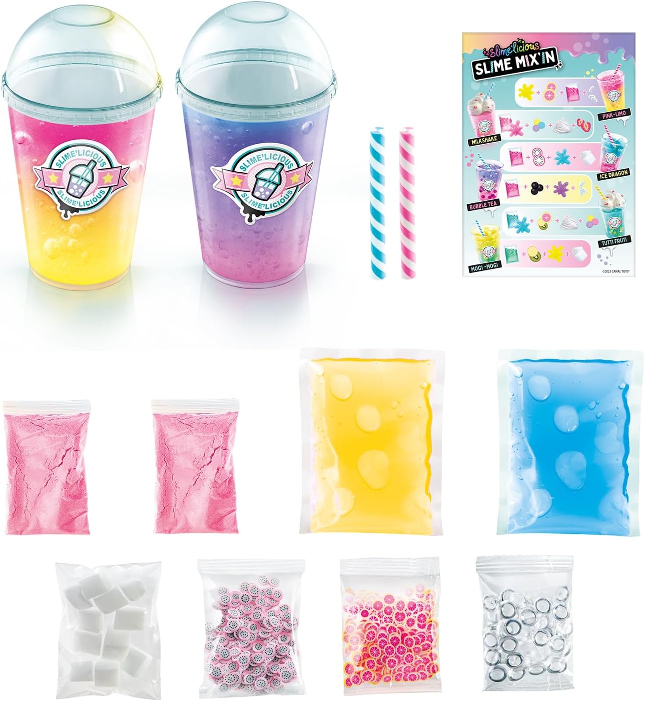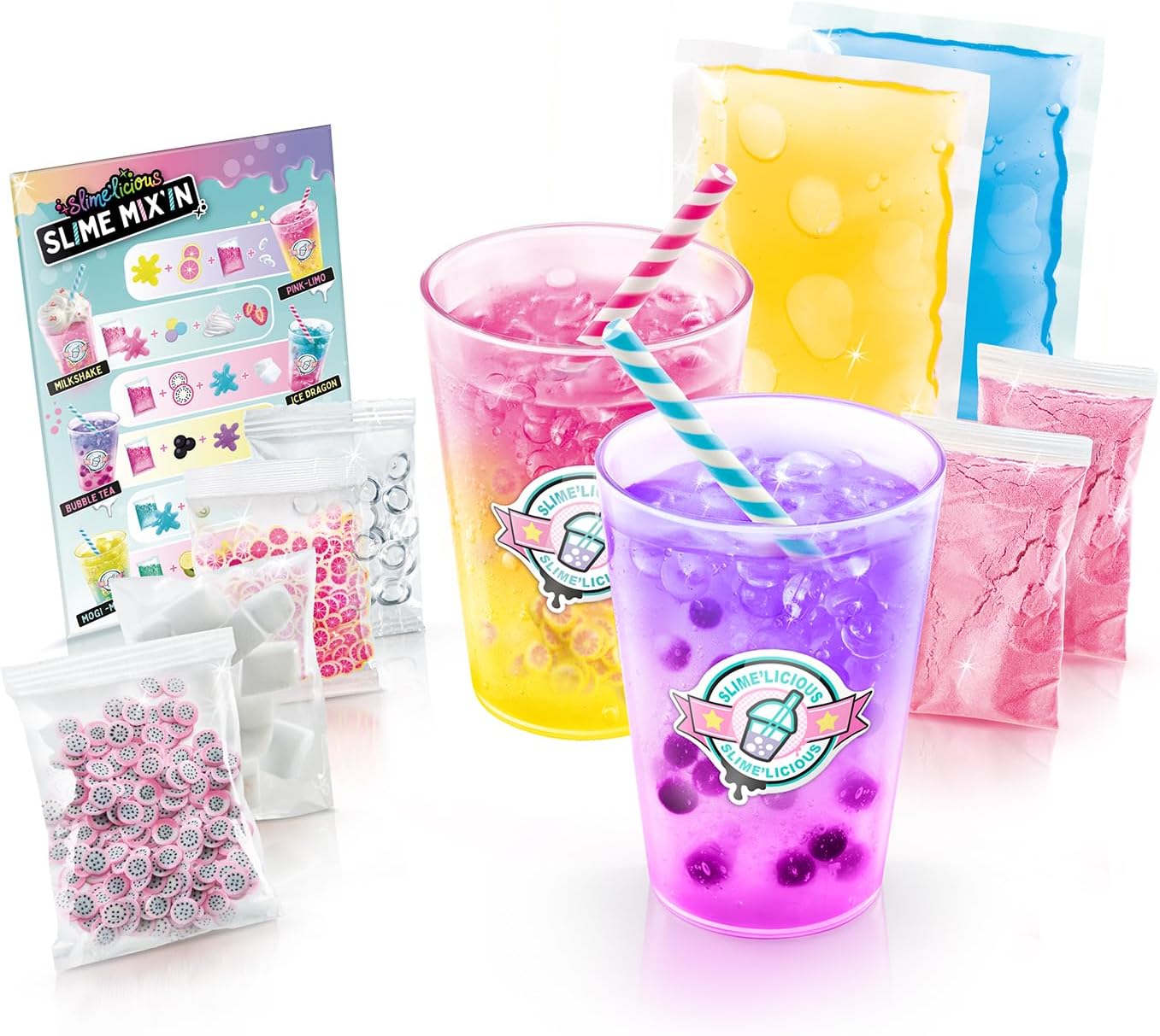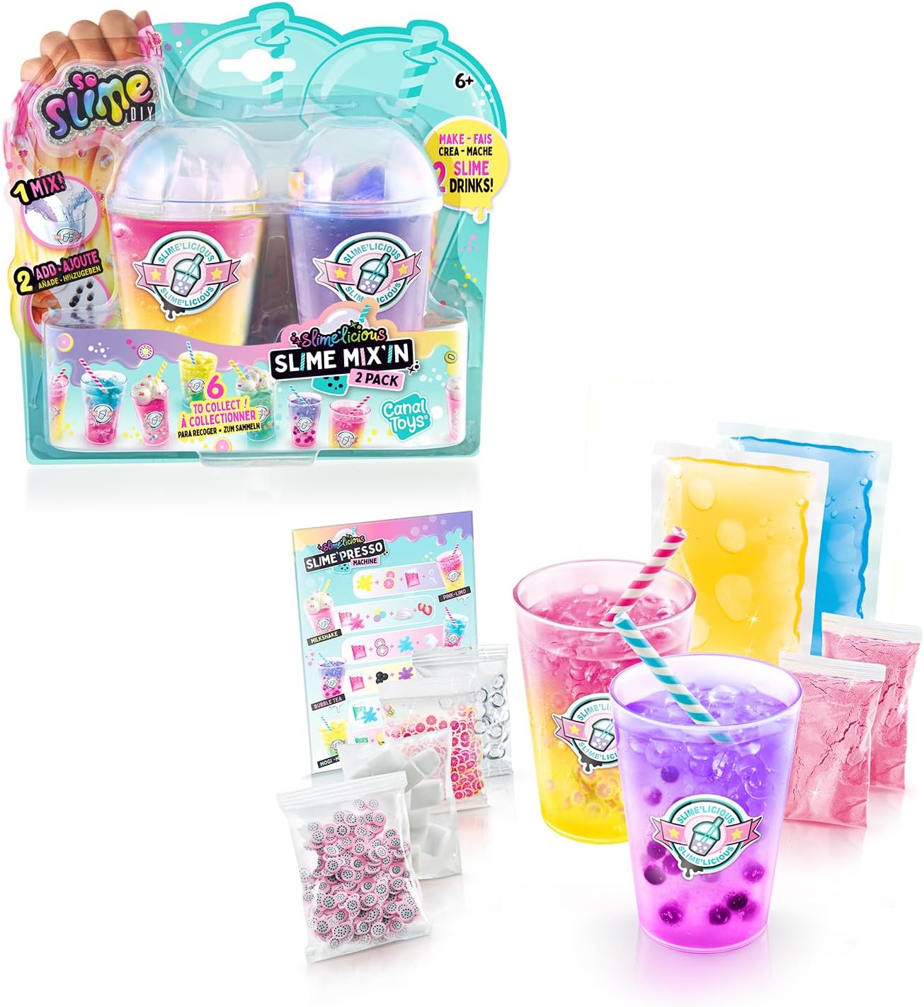 2 SHAKERS: grazie a questo pacchetto di 2 shaker, composto da 2 polveri di melma da un gelificante di origine naturale a base di alghe, 2 melme prefatte e 4 decorazioni; produce e colleziona tutti i tuoi Drinks Slime. Facile da usare 6 stili da collezionare! Sviluppo in Francia: formula atossica conforme alle norme giocattolo. Prodotto sviluppato in Francia.