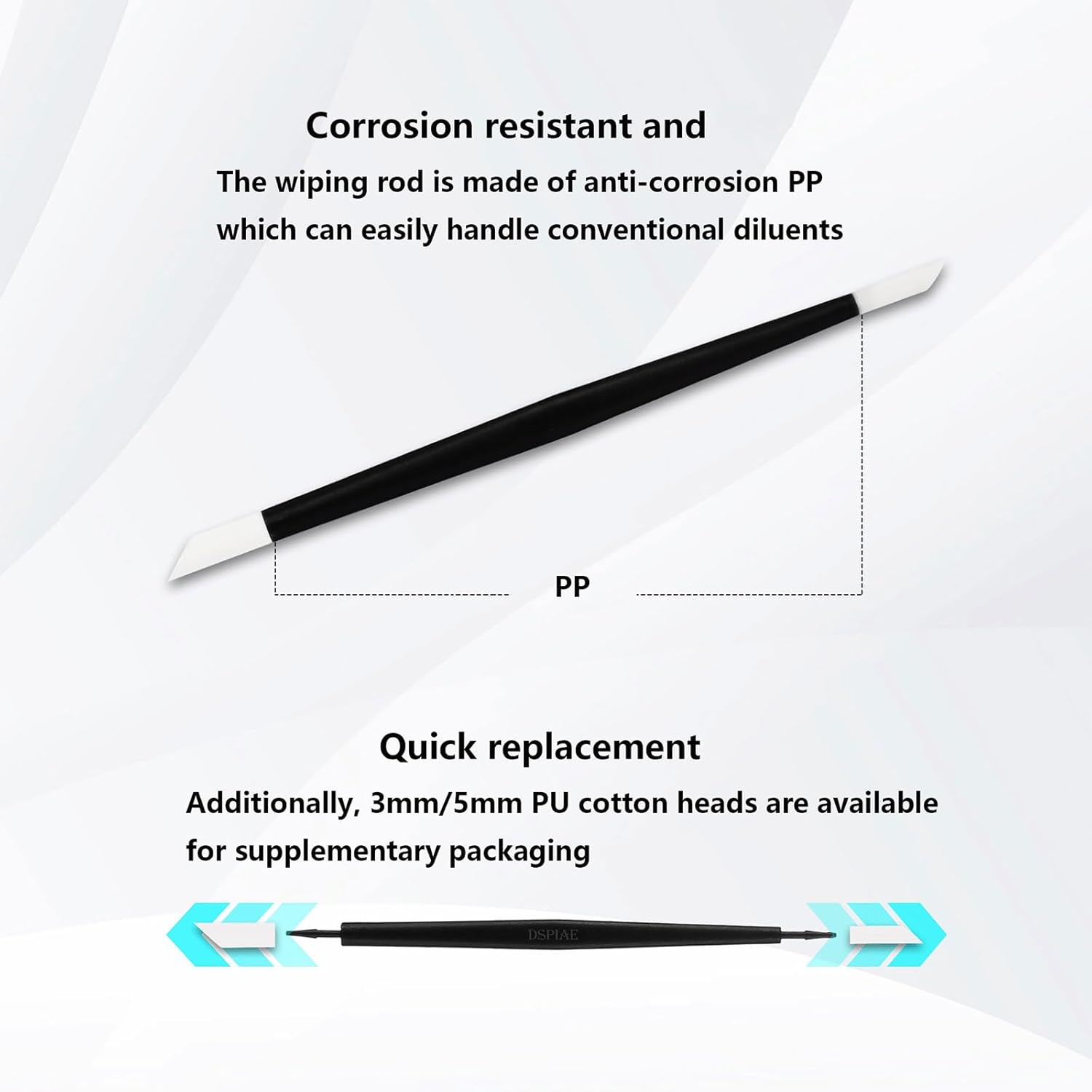 Design leggero, facile da impugnare e da usare, adatto per un uso a lungo termine senza fatica, rendendo la pulizia dei modelli uno strumento essenziale per gli appassionati Realizzato in PP selezionato per garantire che il bastoncino di pulizia sia stabile, con buona resistenza alla corrosione, adatto per un uso a lungo termine senza preoccuparsi dell'usura degli strumenti Non solo adatto per modelli, ma anche ampiamente utilizzato per pulire altri modelli o oggetti artigianali, soprattutto quando si ha a che fare con superfici curve e giunti angolari, per garantire che ogni dettaglio sia liscio come nuovo La testina di cotone è realizzata in fibra di poliestere, che ha un forte assorbimento d'acqua e non lascia residui sporco. Il design inclinato a 45° è più facile da usare. Può essere pulito con il solvente appropriato della soluzione di infiltrazione, può essere utilizzato più volte e può rimuovere facilmente aree difficili da trattare come il traboccamento della soluzione di infiltrazione e vecchie macchie nel modello, evitando efficacemente le superfici.