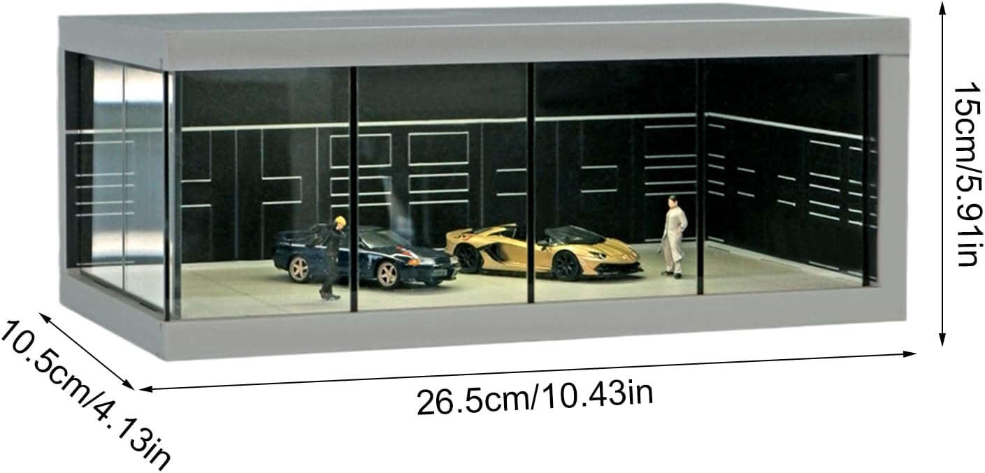 Offri un posizionamento stabile: consente un posizionamento sicuro delle auto senza sentirsi ingombra o instabile, mostrando ogni modello con precisione per un display impressionante Impostazione del display trasformativo: infondere la tua mostra di auto con un ambiente di parcheggio realistico, con strade, parcheggi, cartelli e dettagli intricati per un'esperienza visiva coinvolgente Offerta di protezione: realizzato in acrilico affidabile, questa vetrina fornisce una protezione della polvere e resistente alle macchie. Il suo design impilabile offre flessibilità per espandere lo spazio del display senza sforzo Facile da usare: ti fa andare senza intoppi; Tutte le parti della vetrina del modello sono pretrattate, con istruzioni chiare e illustrazioni dettagliate per un semplice processo di assemblaggio Case di visualizzazione illuminate: mostra i tuoi modelli di auto in 1/64 in questa elegante vetrina; Le luci a LED ad alta luminosità integrate illuminano ogni angolo in modo uniforme, migliorando l'effetto visivo complessivo