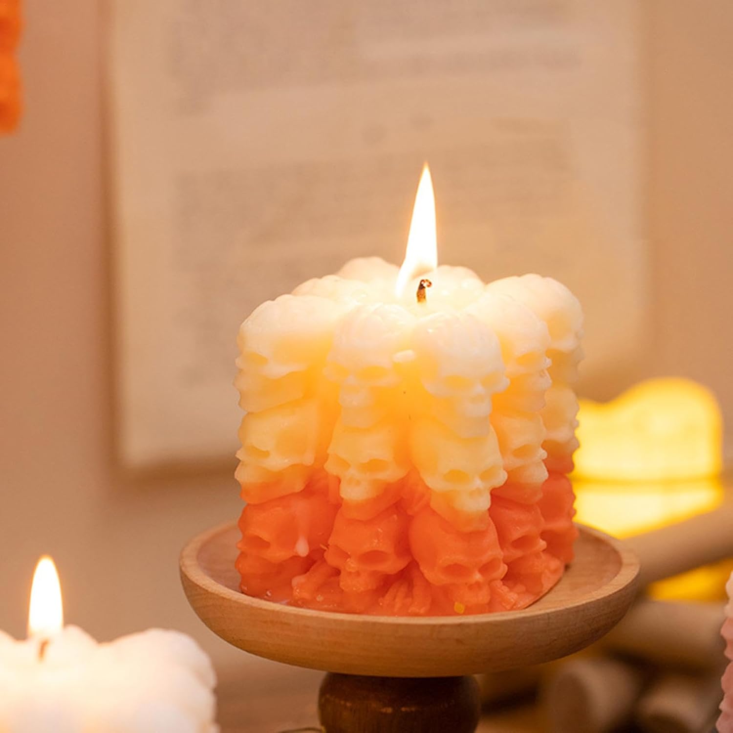 Design unico: la nostra candela a forma di teschio dal design unico è l'aggiunta perfetta alle tue decorazioni di Halloween. La sua forma raccapricciante a forma di teschio crea un'atmosfera festosa senza pari che aggiungerà sicuramente un tocco spaventoso al tuo display. Preparati a stupire i tuoi ospiti con questo inquietante accessorio per feste Rilassante sensoriale: immergiti in un'atmosfera tranquilla e serena con un delizioso profumo emanato dalla candela Skull. Migliora il tuo umore e solleva i tuoi sensi con questa esperienza confortevole e rilassante Squisita fattura: ogni candela a forma di teschio è sapientemente realizzata a mano, con perfetta attenzione ai dettagli e squisita fattura, risultando in un prodotto eccezionale e raffinato Materiale fantastico e sicuro: incontra la ricerca della vita verde, sicuro da usare e sceglie materiali naturali ed ecologici, garantendo una scelta sostenibile ed ecologica Ampie applicazioni: rilascia atmosfere spaventose per feste di Halloween con questa candela a forma di teschio. La sua inquietante raffinatezza aggiunge un tocco di mistero e meraviglia al tuo arredamento, rendendolo adatto per un uso multiuso oltre le festività natalizie