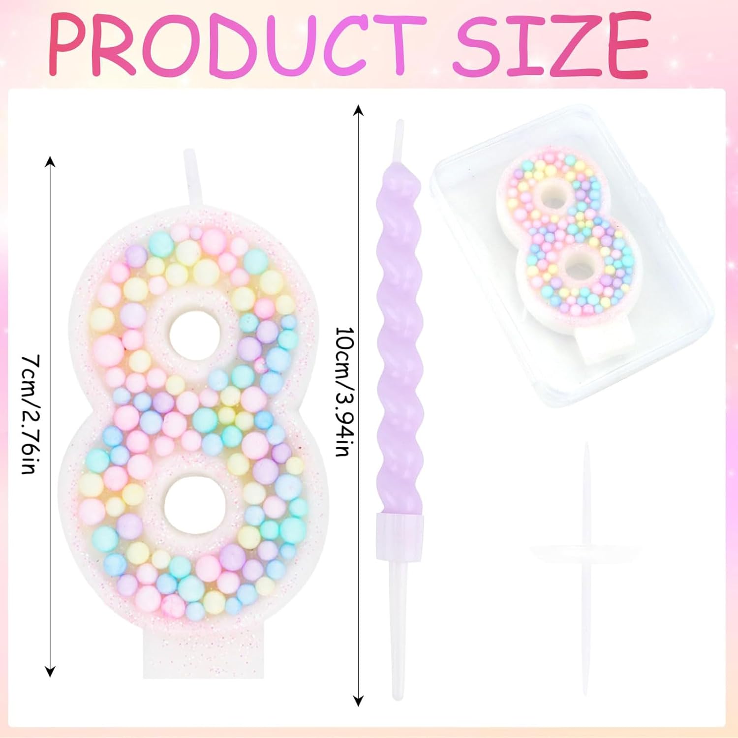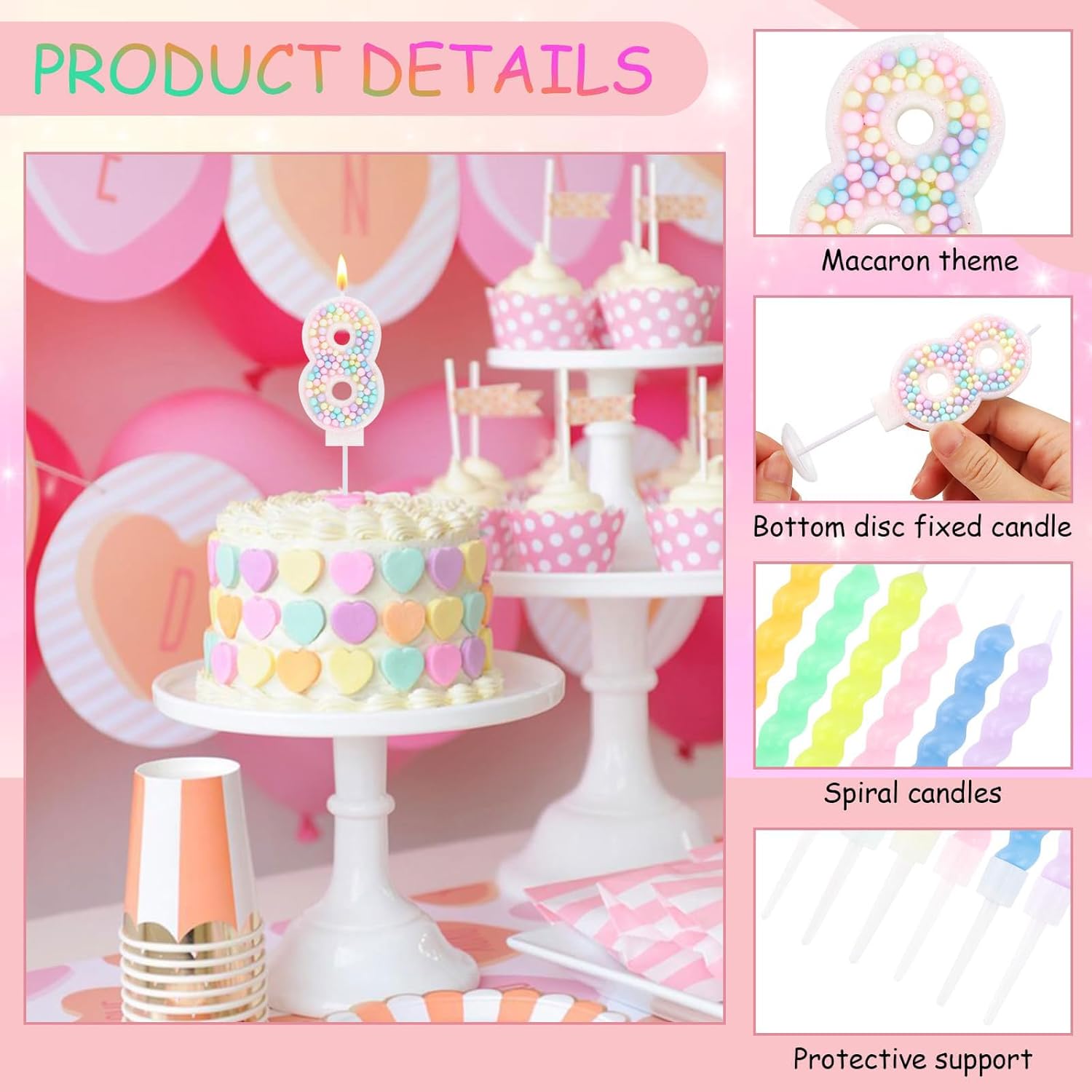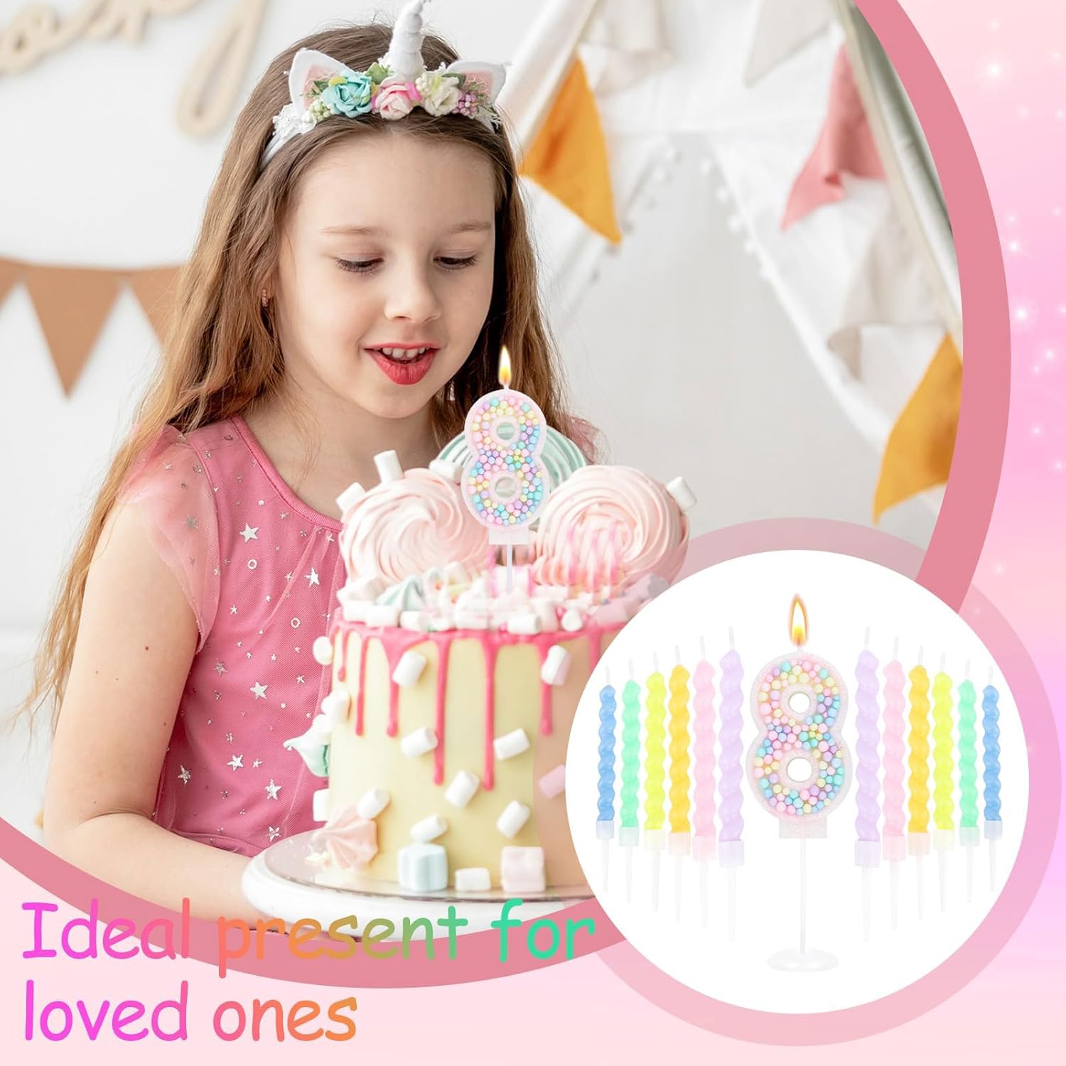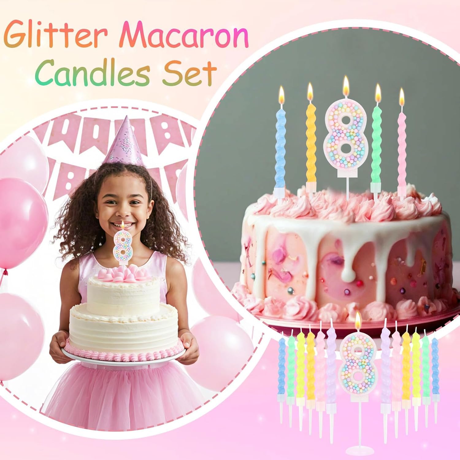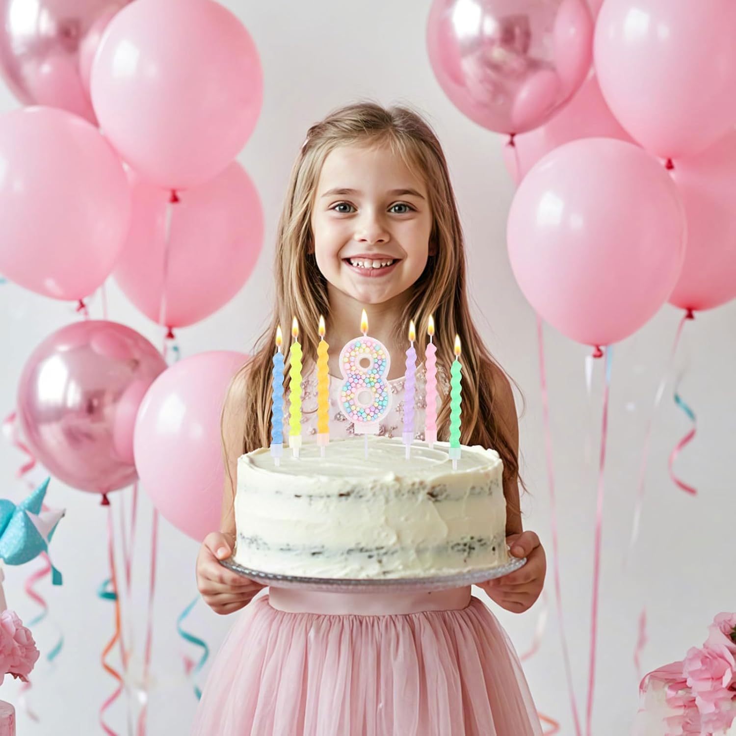 Design unico con numeri: Questo set include una vivace candela numerica in colori macaron, ideale per un compleanno speciale. Migliora l'aspetto della torta e aggiunge un tocco di festa 12 candele per versatilità: Oltre alla candela numerica, ci sono altre 12 candele incluse per infinite possibilità decorative. Usale per adornare cupcake, creare un'esposizione a più livelli o dare un tocco in più a qualsiasi dessert e rendi la tua festa davvero indimenticabile Paraffina di alta qualità per una combustione sicura: Queste candele sono fatte di paraffina di alta qualità che garantisce una combustione uniforme. La loro costruzione premium assicura un'esperienza sicura, permettendoti di concentrarti sull'occasione gioiosa senza preoccuparti di gocce o fiamme irregolari Ideale per molteplici celebrazioni: Oltre ai compleanni, questo set di candele è perfetto per anniversari, riunioni di famiglia o qualsiasi incontro festivo. Il suo design senza tempo e lo schema di colori rosa versatile si integrano perfettamente in diversi temi, rendendolo indispensabile per qualsiasi organizzatore di feste Installazione semplice e momenti indimenticabili: L'installazione è semplicissima - posiziona semplicemente le candele sulla tua torta o dessert, accendile e guarda come trasformano il tuo spazio in una festa vivace. La lunga durata della combustione assicura che siano parte di ogni caro ricordo creando un'atmosfera calda e accogliente