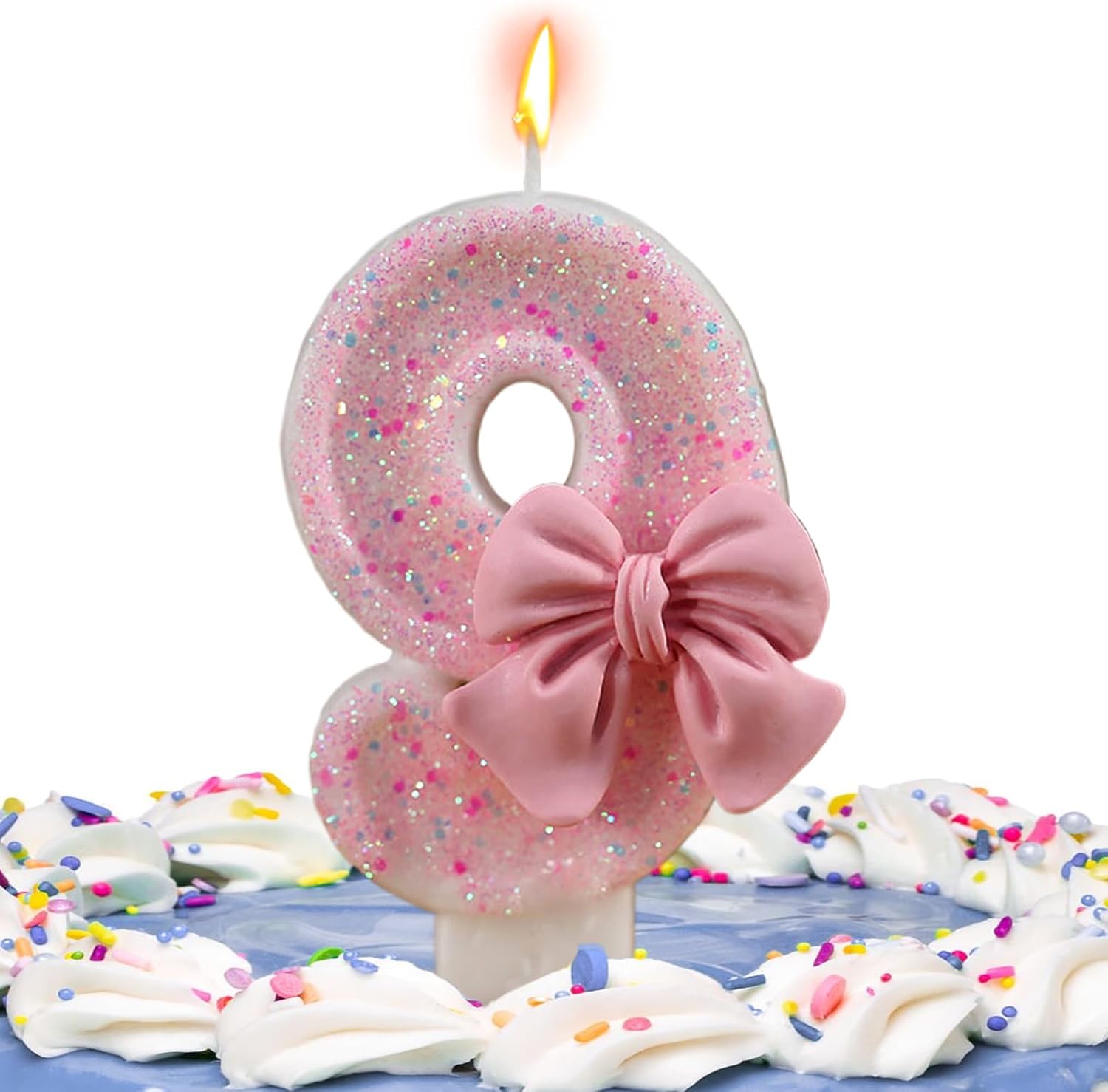 Elegante design glitterato con dettaglio a fiocco: questa elegante candela numerica presenta una finitura glitterata scintillante e un delicato fiocco per un tocco femminile e festivo, perfetta per compleanni, anniversari o celebrazioni per donne e ragazze. Selezione numerica versatile per qualsiasi età: mescola e abbina le cifre per contrassegnare qualsiasi età o data, dai favolosi 40 anni, aggiungendo raffinatezza e torte, cupcake, e tavoli da dessert al tuo evento speciale. Ideale per feste di compleanno e riunioni: che si tratti di una notte delle ragazze, di una riunione di classe o di una festa di compleanno a tema, questa candela numerica funge da centrotavola per la tua torta e migliora l'estetica generale della festa con fascino ed eleganza. Cera sicura per una combustione pulita: realizzate in cera di alta qualità, queste candele bruciano in modo uniforme e sicuro, creando una fiamma costante facile da accendere e perfetta per momenti indimenticabili di candela. Facile da inserire, visualizzare e rimuovere: presenta una robusta base per un posizionamento senza sforzo su tutti i tipi di torte, assicurando che rimanga in posizione verticale e perfetta per tutta la celebrazione mentre si rimuove dopo la festa.