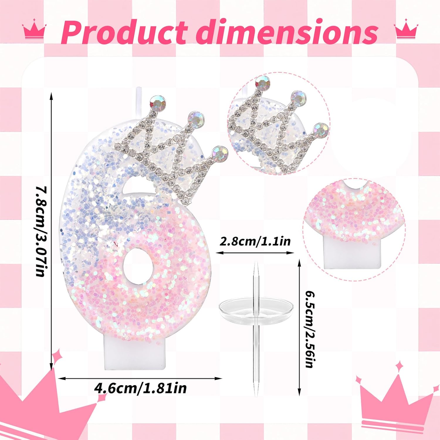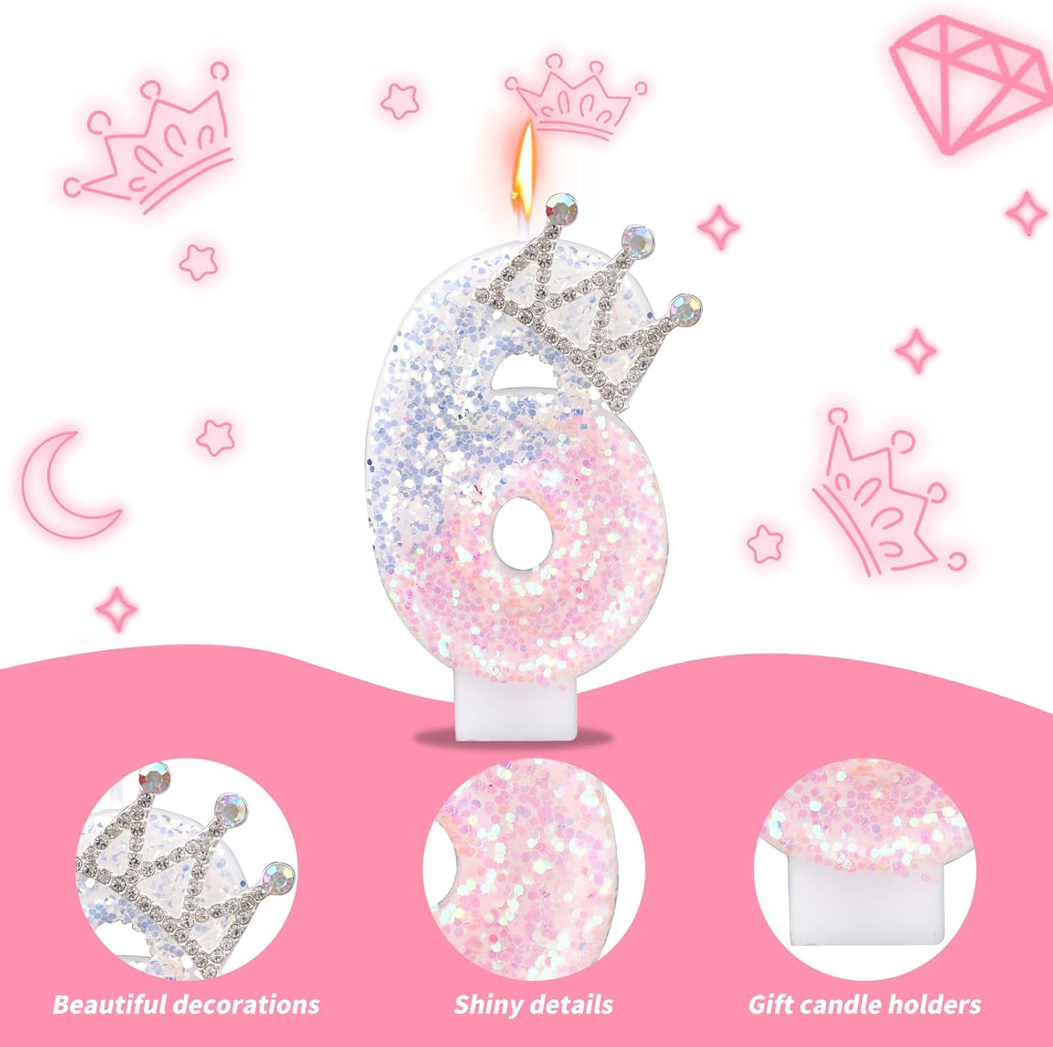 Elenco dei prodotti: riceverai un numero di compleanno candele, un bastone di supporto e un vassoio per migliorare la presentazione del dessert e creare ricordi indimenticabili. Materiali affidabili: la candela del numero di compleanno è realizzata con cera di paraffina di buona qualità e metallo, che sono affidabili, bruciano uniformemente e duraturi, sono chiari e luminosi e portano un bagliore caldo alla tua festa. Affascinante estetica: il design è rosa e argento, con una corona in cima e un ottimo glitter in superficie, che è elegante e squisito, aggiungendo un'atmosfera lussuosa per celebrare qualsiasi evento. Design eccellente: dotato di un vassoio e bastoncini di supporto, impedisce effettivamente a gocciolare la cera sulla torta, assicurando che la torta sia pulita e ordinata durante la celebrazione. Ampia applicazione: questa candela di compleanno può essere ampiamente utilizzata in vari eventi, come compleanni, feste a tema, matrimoni, feste di pensionamento, docce per bambini, ecc.