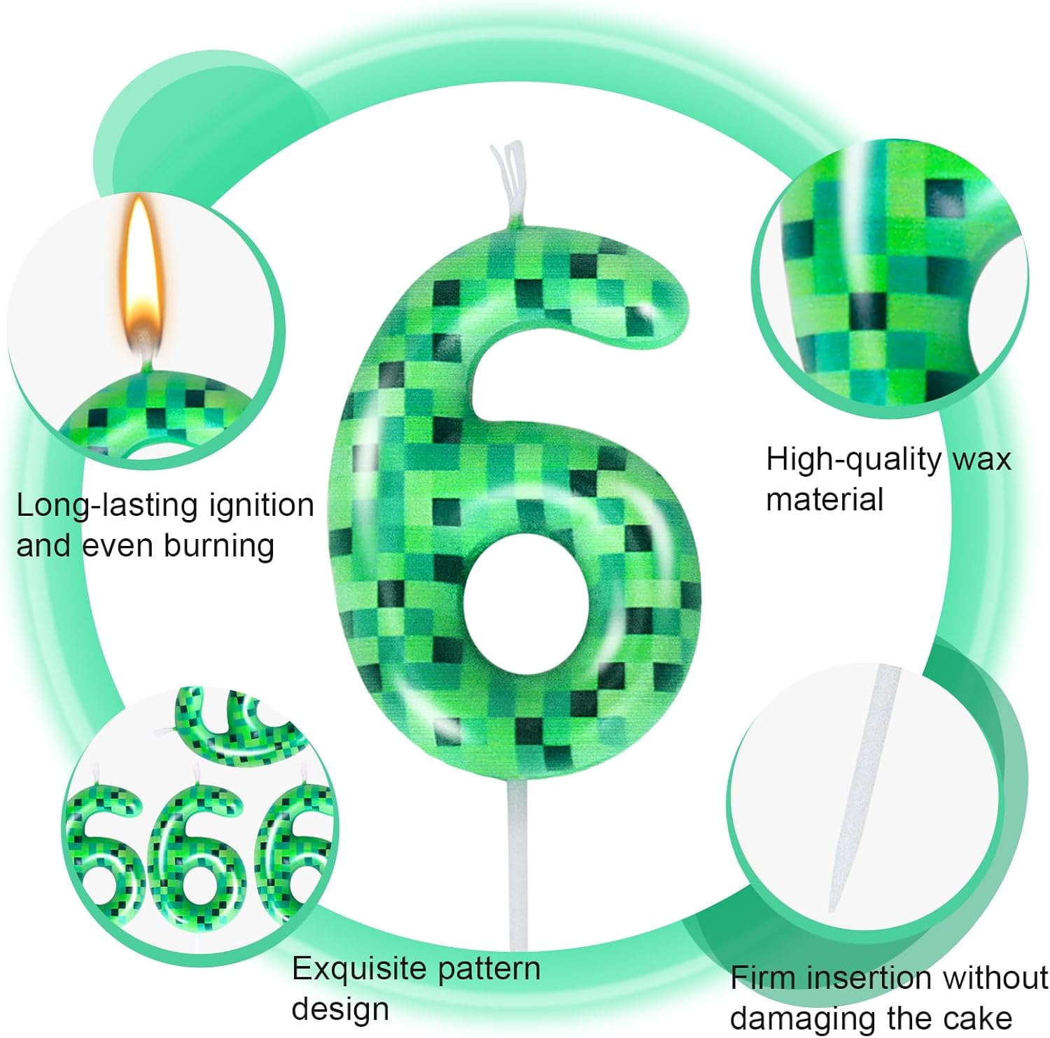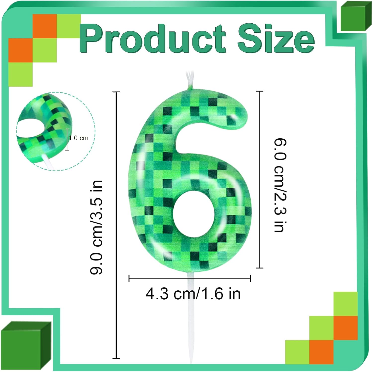 【Contenuto del prodotto】: Riceverai 1 pezzo di candela di compleanno pixel - l'aggiunta ideale per decorare la tua torta di compleanno. Crea un'atmosfera vivace e divertente per la tua festa. 【Dimensioni del prodotto】: questa candela pixel è alta 9 cm (di cui l'altezza della colonna è 3 cm), larga 4,3 cm ed è adatta per la maggior parte dei tipi di torte. 【Materiali di alta qualità】 Le nostre candele con numeri verdi sono realizzate con cera di paraffina di alta qualità, affidabile, durevole e di lunga durata. Ci sono candeline di compleanno numerate 6, 7, 8, 9 tra cui scegliere. Assicurati di vivere un'esperienza di compleanno felice e indimenticabile. 【Bellissimo design】 Questa candela con numero di compleanno presenta un esclusivo design a piccoli pixel quadrati e combina un colore verde multistrato. Sembra nuovo e interessante, aggiunge un tocco personale alla torta di compleanno ed è una scelta decorativa ideale per feste ed eventi a tema. 【Ampia applicazione】: questa candela di compleanno pixel verde con numeri è adatta a varie occasioni celebrative come matrimoni, feste a tema, feste di compleanno e baby shower, poiché può creare un'atmosfera unica e interessante e lasciare bellissimi ricordi.
