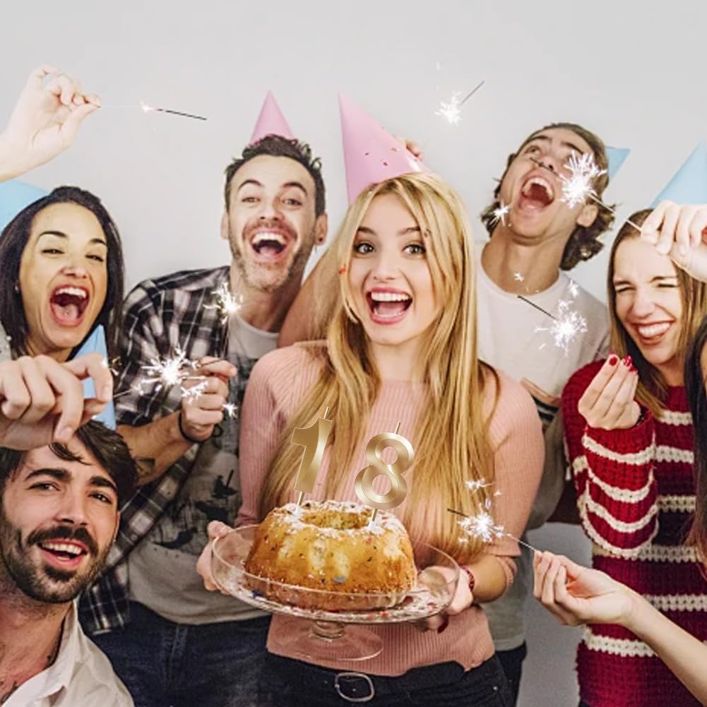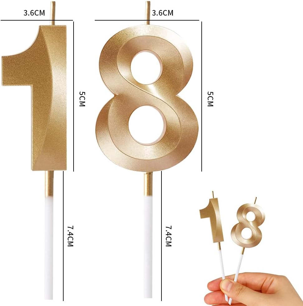 Materiali: Il nostro digitale Fatto di materiale di cera, sicuro e inodore. Viene fornito con 2 pezzi di candele numero con numeri 1 e 8. Design: Aspetto delicato, senso 3D, Le nostre candele di compleanno hanno una forma tridimensionale, proprio come la superficie tagliata dei diamanti, l'oro champagne sottolinea l'atmosfera ancora meglio, adatto a persone di tutte le età e entrambi i sessi. Dimensione: 7.4*5*3.6cm, dimensione giusta come decorazione della torta per la maggior parte delle torte di compleanno e di nozze, anche leggera e conveniente da trasportare o conservare. Candele digitali: Le nostre candele digitali sono progettate per sostituire le candele tradizionali. Invece di contare la quantità di candele, queste candele digitali possono decorare la tua torta di compleanno in modo semplice e intuitivo. Versatile: come compleanni, anniversari, riunioni di famiglia, matrimoni, feste alle Hawaii, anche Natale, può servire anche come oggetti di scena per scattare foto memorabili.