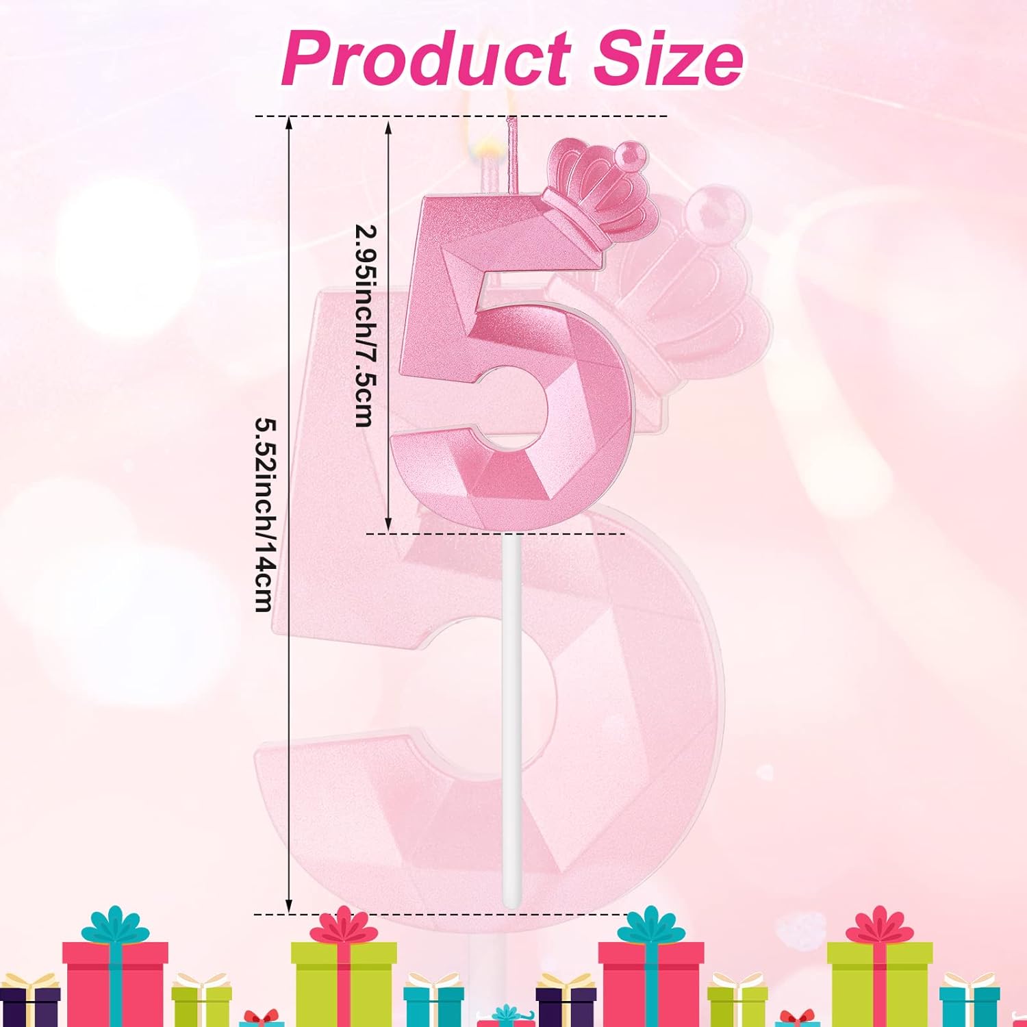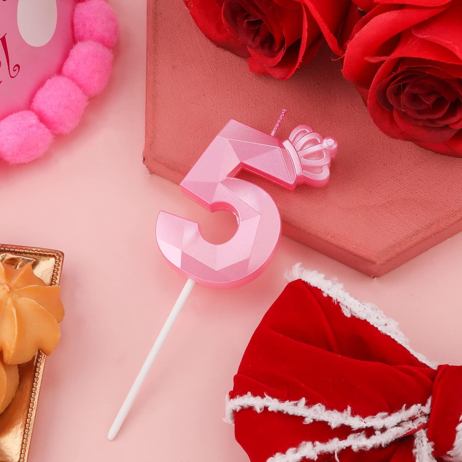 Candela Numero, 7,5 cm Candela Compleanno 3D Candela Torta Rosa Candela Compleanno Corona per Ragazze Decorazione per Festa di Compleanno Matrimonio Anniversario (5)