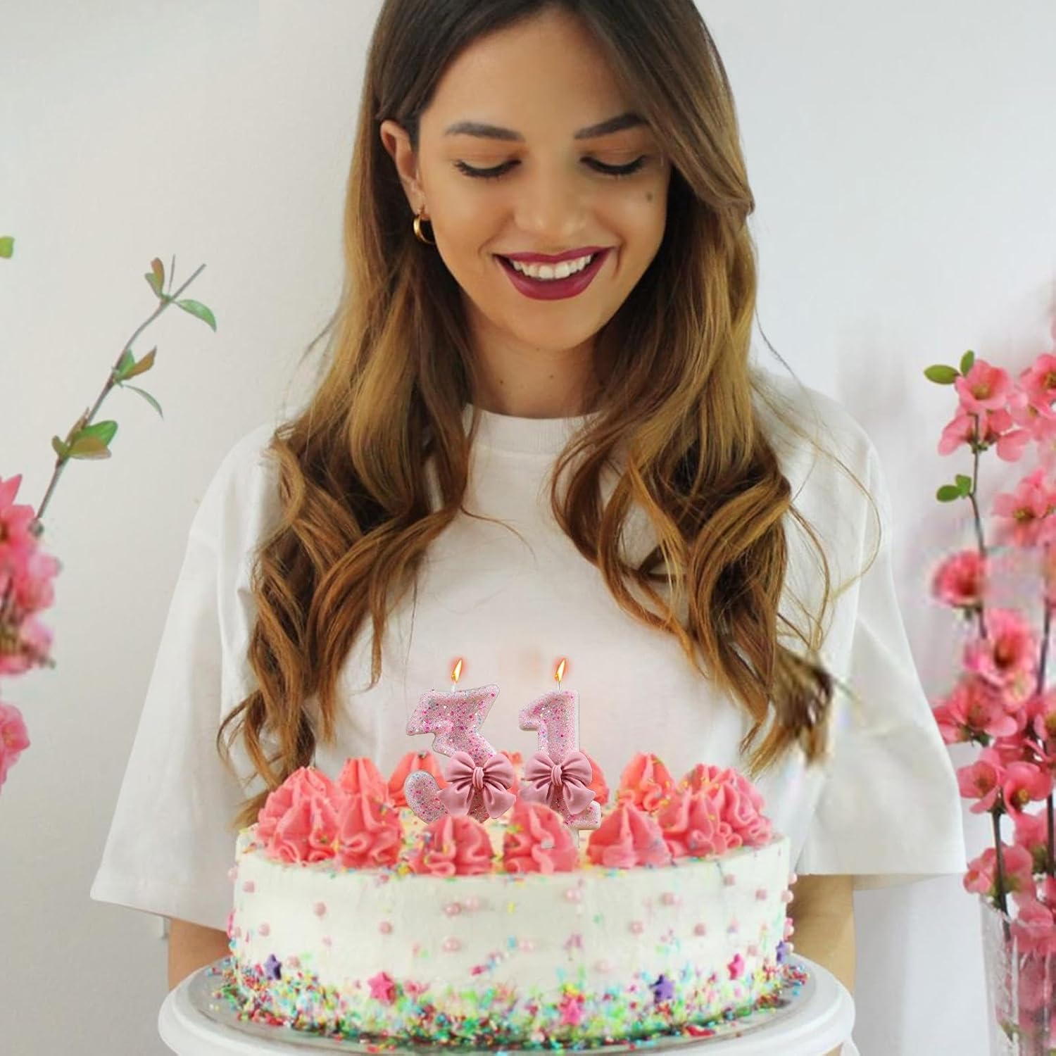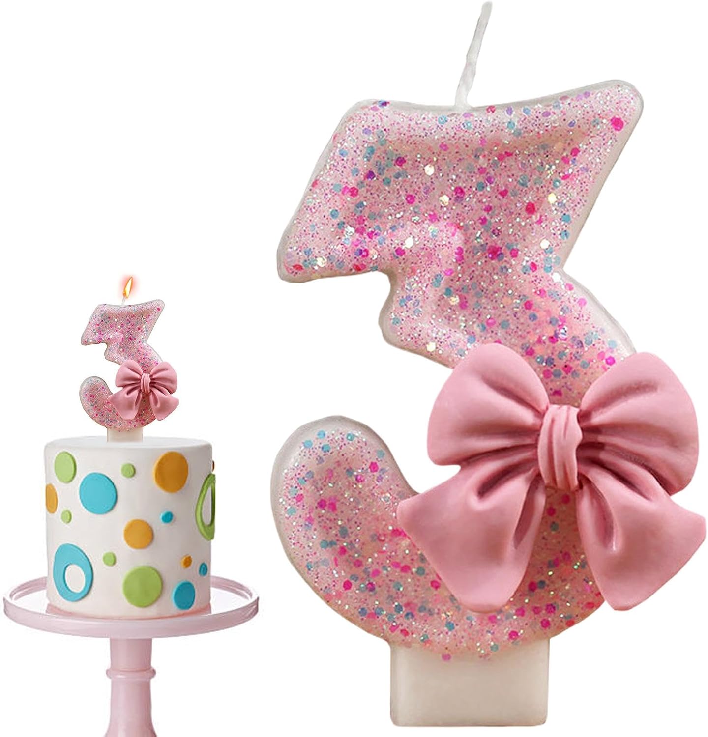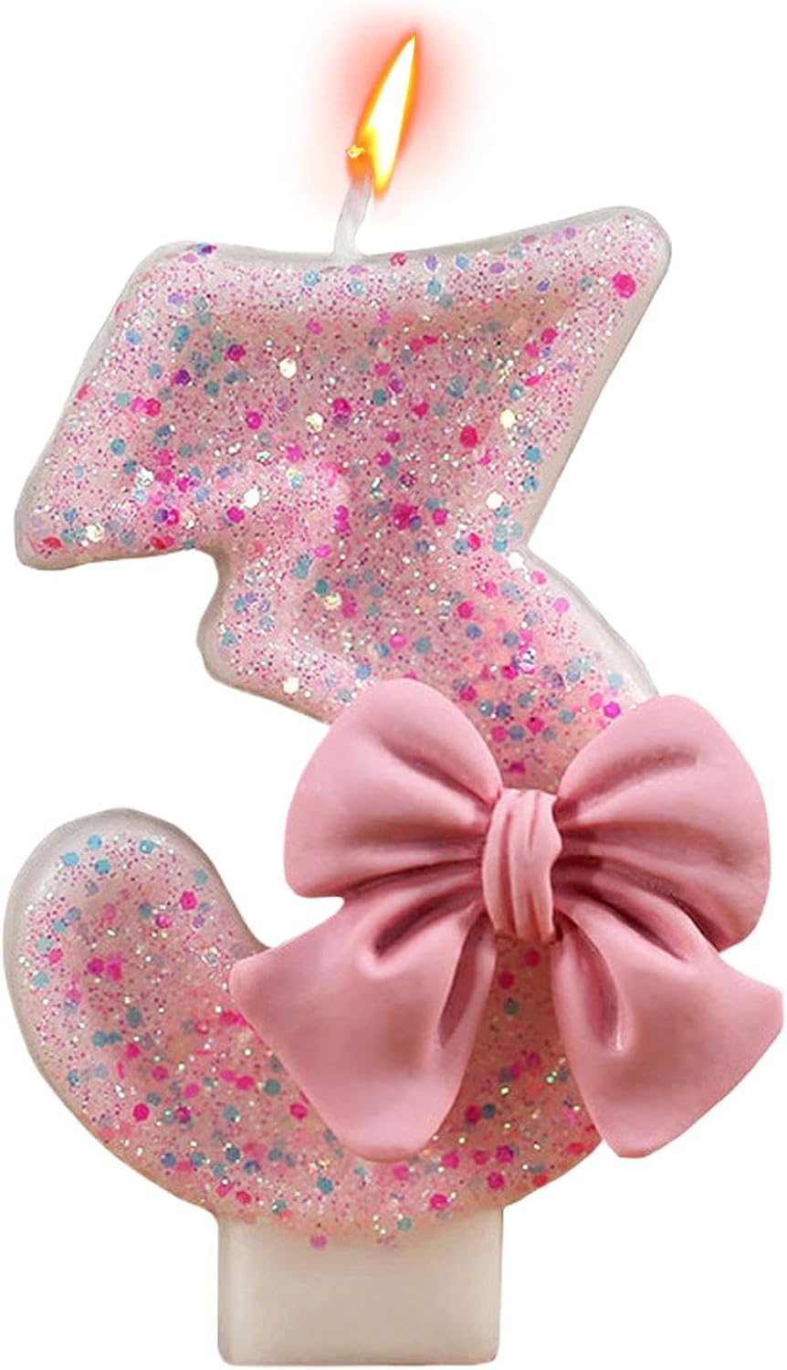 Candela numero di compleanno, candele numerate per torte di compleanno - scintillante con decorazioni Bowknot | Decorazione per torta di compleanno forniture per celebrazione, candele n