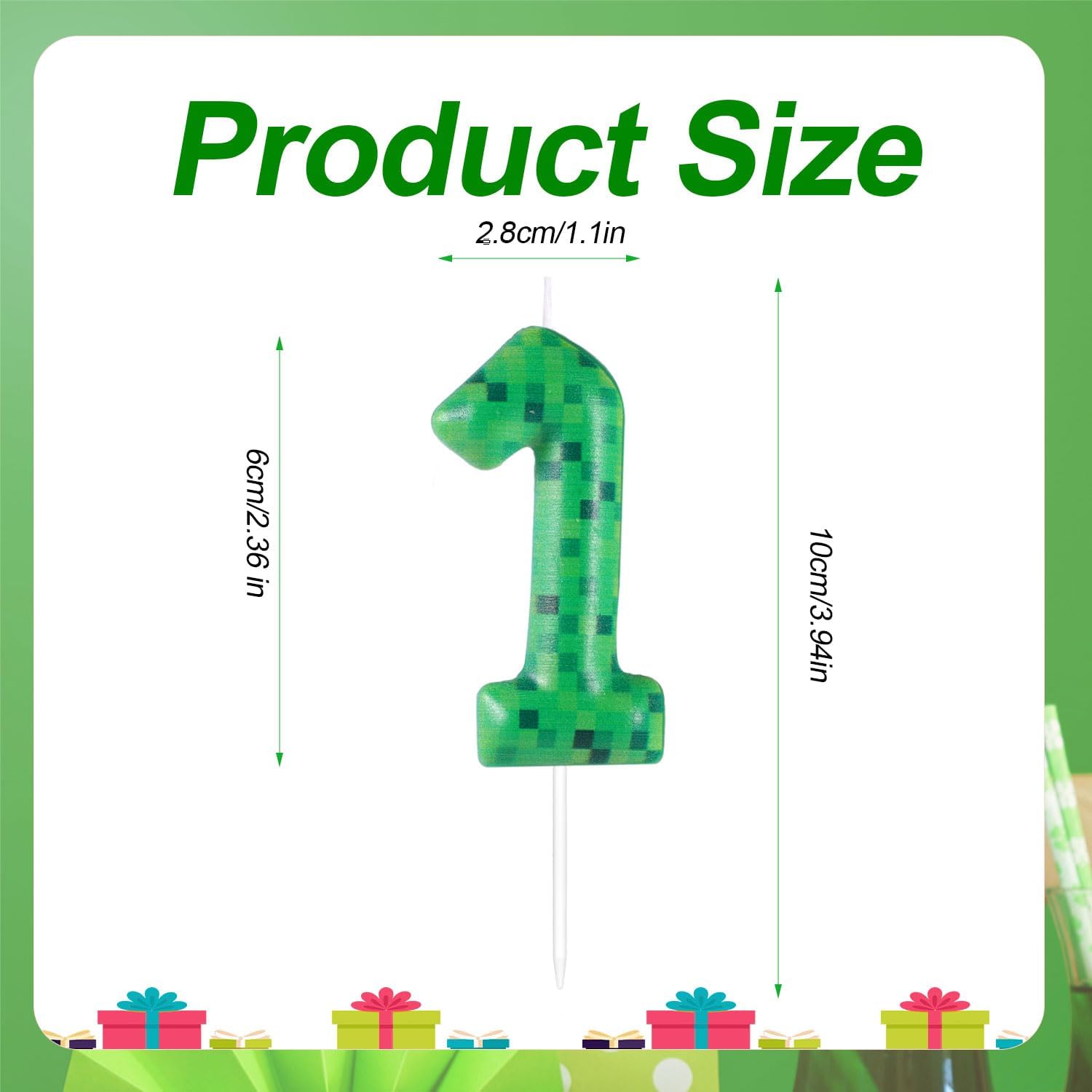 Contenuto del prodotto: riceverai una candela per torta di compleanno Pixel Miner, una decorazione personalizzata per torta di compleanno con aspetto digitale. Materiale del prodotto: le nostre candele digitali sono realizzate in cera di paraffina e sono di buona qualità. La fiamma brucia intensamente e non emette alcun odore sgradevole, quindi puoi usarla con sicurezza. Design speciale: le nostre candeline di compleanno digitali sono progettate con abbinamenti di colore verde multistrato e temi con stampa pixel, che sono mini e carini, facendo sentire le persone interessanti e nuove, e decorazioni ideali per le feste di compleanno e le attività di Pixel Miner Game. Decorazione di compleanno: questa candela digitale è bella e semplice, facile da trasportare e il motivo a pixel verdi appositamente progettato può aggiungere un'atmosfera di gioco interessante alla tua festa, consentendo a bambini e adulti di sentire il fascino della festa di compleanno di Pixel Miner Game. Ampia applicazione: questa candela digitale può essere applicata a una varietà di occasioni come feste di compleanno, giochi di pixel miner, feste a tema TNT, baby shower, ecc. Per creare un'atmosfera divertente e lasciare ricordi indimenticabili.