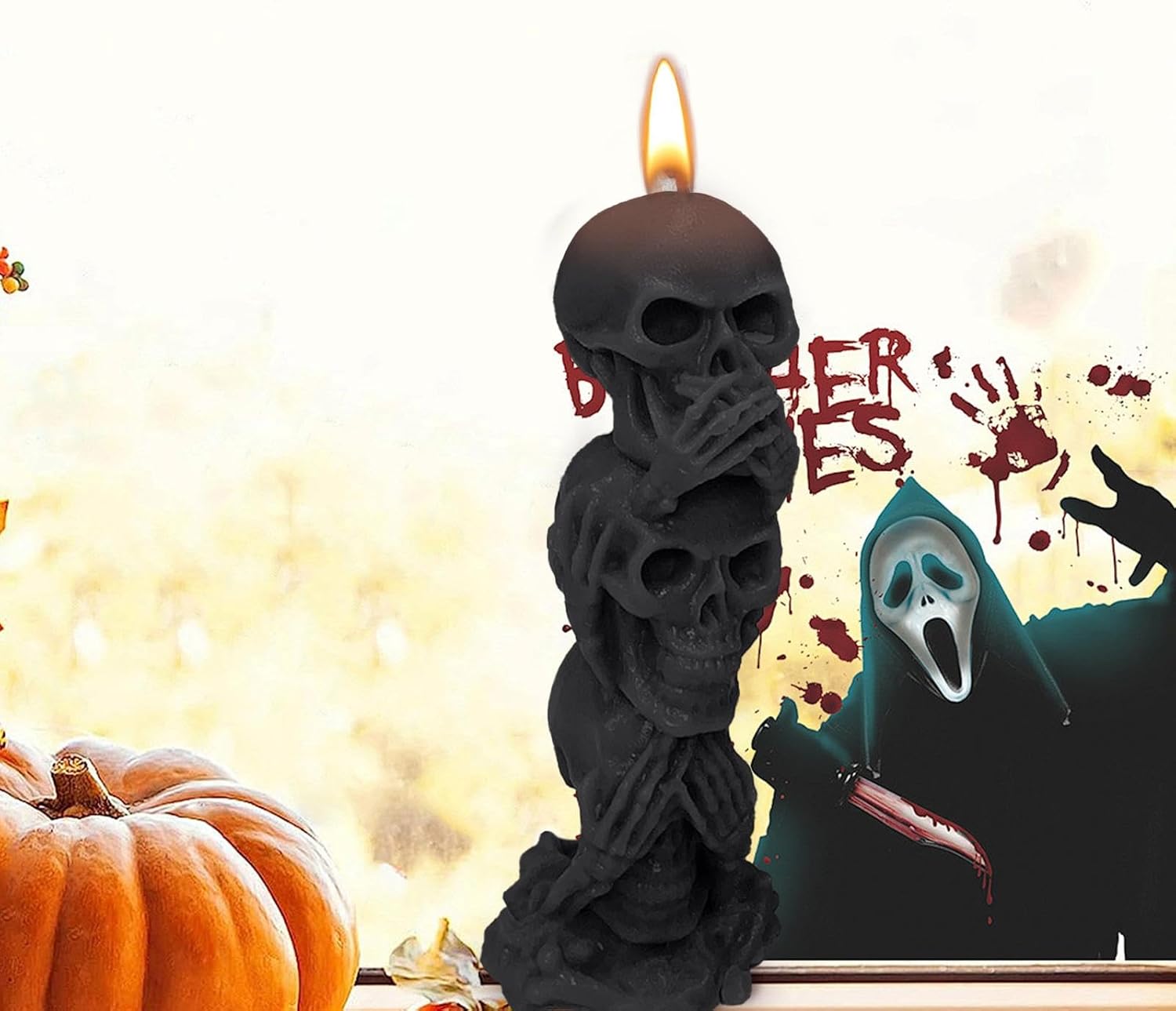 Aspetto creativo: tre teschi sono abilmente uniti insieme, evidenziando intricati dettagli del viso e struttura ossea che aggiungono un tocco di spettralità all'arredamento di Halloween. Miglioramento dell'atmosfera: con le sue ombre inquietanti e gli effetti di luce, la candela a forma di teschio di Halloween crea un'atmosfera spettrale sotto una luce soffusa, creando una visione indimenticabile per le tue decorazioni di Halloween. Fascino olfattivo: lascia che la nostra candela a forma di teschio di Halloween diffonda una fragranza accattivante, creando un'atmosfera spettrale ma accogliente. Con una funzione di aromaterapia, migliora l'esperienza sensoriale per un pieno fascino olfattivo. Multiuso: questa candela a forma di teschio di Halloween è un must per la tua collezione di decorazioni. Migliora la tua decorazione fantasma, festa di Halloween autunnale e decorazioni da tavola per la casa con il suo stile unico e versatilità per qualsiasi decorazione della casa. Porta felicità: come regalo speciale per le vacanze, questa candela porta un divertimento horror unico per bambini e adulti, creando un'atmosfera spettrale con il suo inquietante design a forma di teschio.
