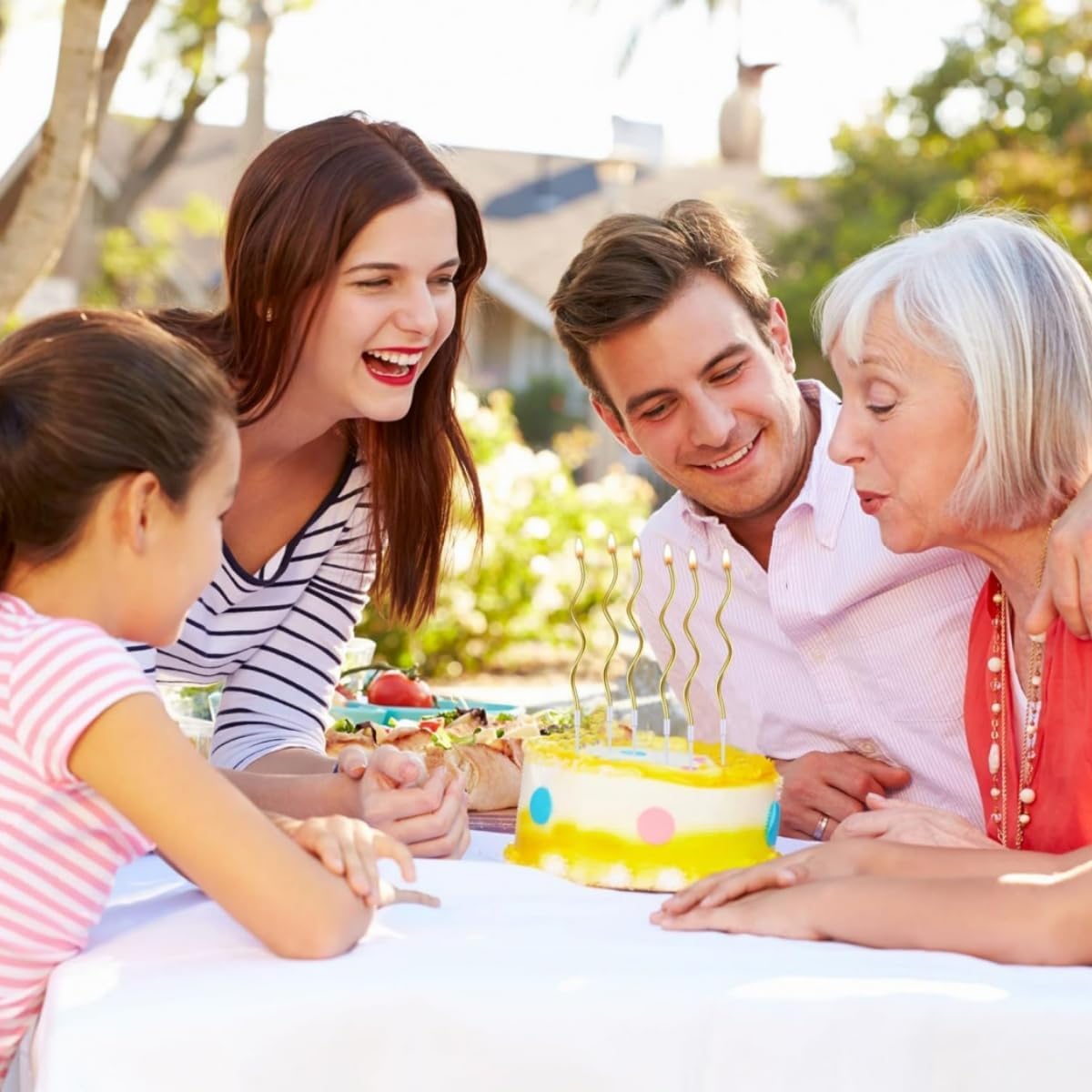 Candele di compleanno: queste candeline per torta di compleanno sono realizzate in cera di paraffina di alta qualità, atossica, inodore e sicura. Le candele lunghe sono sicure da usare e facili da accendere. Puoi sicuramente metterli sulla tua torta di compleanno. Design a spirale: queste candeline per torta sono progettate a forma di spirale Sembra che molte fate ballino sulla torta, creando un'atmosfera romantica. Il supporto in plastica aiuta a evitare belle superfici della torta. Design a spirale: queste candeline per torta sono progettate a forma di spirale e dipinte in diversi colori. Sembra che sulla torta ballino tante fate, creando un'atmosfera romantica. Il supporto in plastica aiuta a evitare belle superfici della torta. Design raffinato: la candela ha un supporto in plastica per un facile inserimento e utilizzo senza preoccuparsi di danneggiare la bellissima superficie della torta. Pregevole fattura, pressione uniforme e superficie liscia. Colori vivaci: le candele di compleanno curve sono adatte a ragazzi e ragazze, donne e uomini. Il colore della candela di compleanno con supporto è molto luminoso e la fiamma è molto bella, il che può creare un'atmosfera romantica. Ampia applicazione: le nostre candeline sottili sono ottime decorazioni per le tue torte, adatte per compleanni, baby shower, matrimoni, Natale, vacanze e altre occasioni speciali. Le candele donano alla tua festa un effetto elegante e un'atmosfera romantica.