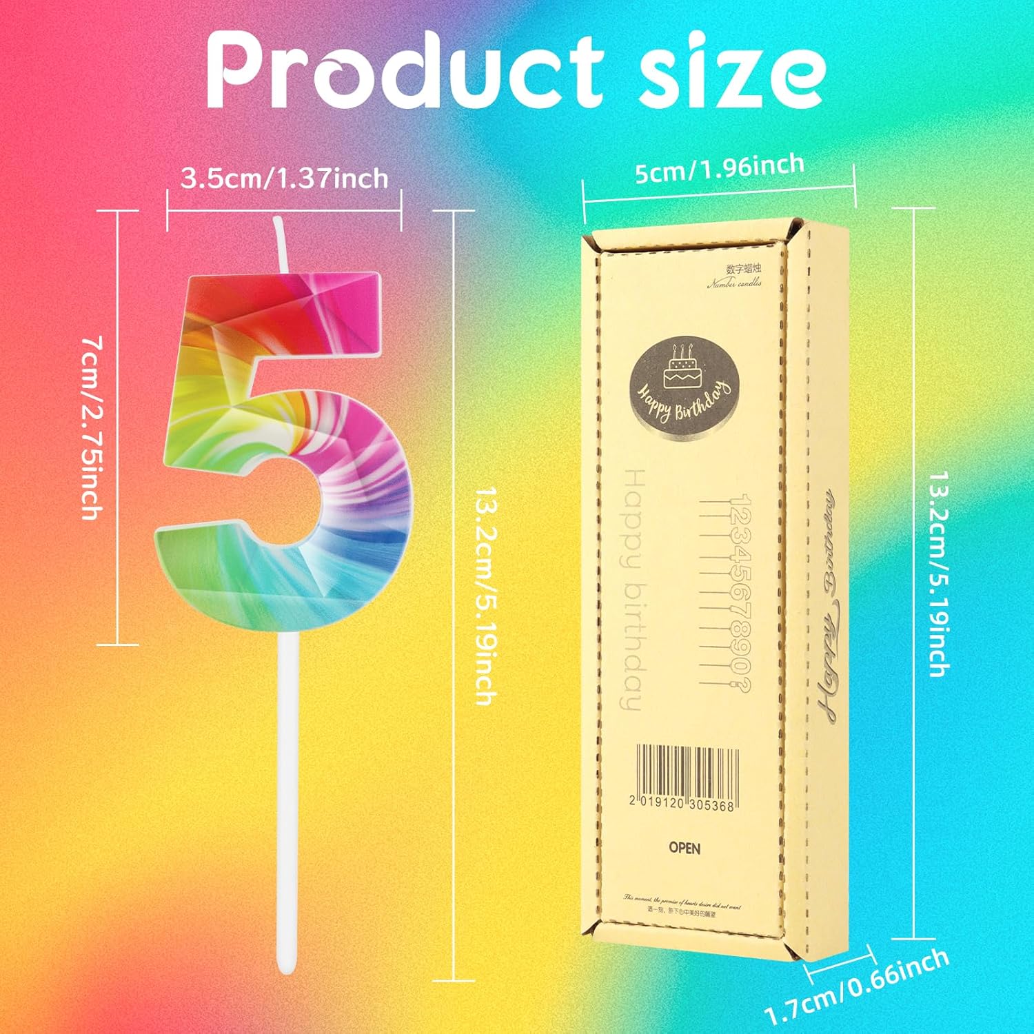 【Candele di compleanno arcobaleno incluse】: Riceverai 1 numero colorato con numero 4.3D. Il colore delle candele è un arcobaleno colorato, sembra molto carino sulla tua torta di compleanno, candele arcobaleno per torta di compleanno, candele di compleanno a tema arcobaleno, candela di compleanno felice, numero di candele di compleanno, festa a tema graffiti, festa dei bambini. 【Informazioni sul compleanno della candela con numero colorato】: candele con numero arcobaleno materiali per uso alimentare, non tossici, inodore, rispettosi dell'ambiente. La dimensione numerica della candela della torta di compleanno è lunga circa 13 cm/5,12 pollici (il corpo della candela è di circa 7 cm/2,76 pollici), dimensione giusta come decorazione per la decorazione della candela per la maggior parte dei cupcake di compleanno e torta nuziale. 【Materiale Toppers per torta con candele Graffiti】: Topper per torta con candele con numeri Graffiti, tutto è colorato, design con stampa arcobaleno, luminoso e luminoso al buio. e si abbina facilmente alle decorazioni della festa di compleanno con temi e colori arcobaleno. Non è solo per i compleanni di adulti e bambini, ma anche per i compleanni di animali domestici. 【Candele Metalliche Arcobaleno per Feste, Vari Usi】: fantastiche candele decorative per cake topper, facili da inserire nella torta. La prima cosa che attira l'attenzione è il bellissimo effetto lucido del pizzo che può essere incollato sulla torta, bellissimo numero di candeline perfette per le decorazioni della torta, nessuna preoccupazione che si ribalti o cada, adatto per compleanni, matrimoni e altre feste e banchetti. 【Decorazioni perfette per il 4° compleanno per ragazze e ragazzi】: il set di toppers per torta con candele di compleanno arcobaleno è un intero set di candele con stampa di graffiti colorati, ideale non solo per decorare torte e cupcake, ma anche giocattoli per bambini o decorazioni per la casa. È anche il regalo perfetto per una festa o un regalo di compleanno per la festa a tema graffiti per ragazze e ragazzi.