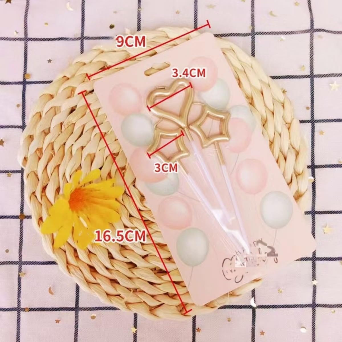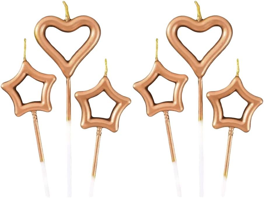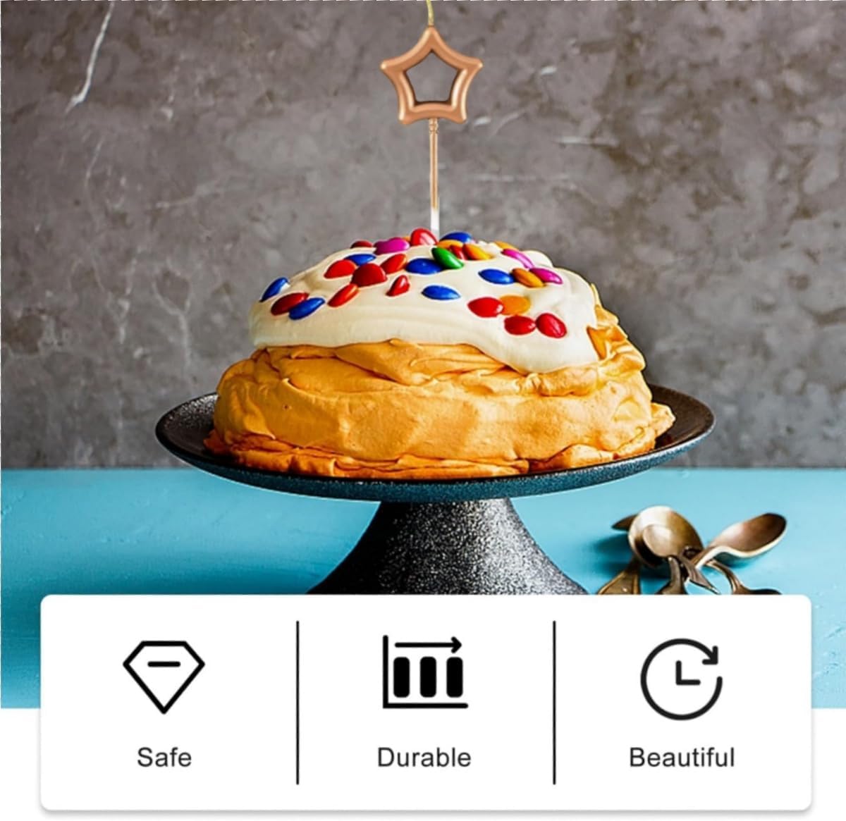 Dettagli del prodotto: Ogni confezione di candeline per torta in metallo contiene 15 candele, 10 candele a forma di stella e 5 candele a forma di cuore, con un totale di 5 colori, molto strutturate e squisite DESIGN SQUISITO: le candele glitterate aggiungono un tocco di luce elegante e brillante alle tue celebrazioni e creano un'atmosfera romantica. Sono facili da accendere e sono adatti per decorare tutti i tipi di torte e cupcake Candele interessanti: interessanti candele a forma di cuore possono dare alle persone un'atmosfera felice e calda, mentre lo stile infantile dà alle persone una sensazione confortevole Pratico: con il supporto è possibile inserire piccole candeline nei muffin, nelle torte, ecc. durante le feste di compleanno dei bambini Ampiamente usato: la decorazione di torte è adatta a varie feste o occasioni speciali come matrimoni, feste di compleanno e anche per pasticcerie, bar e panetterie