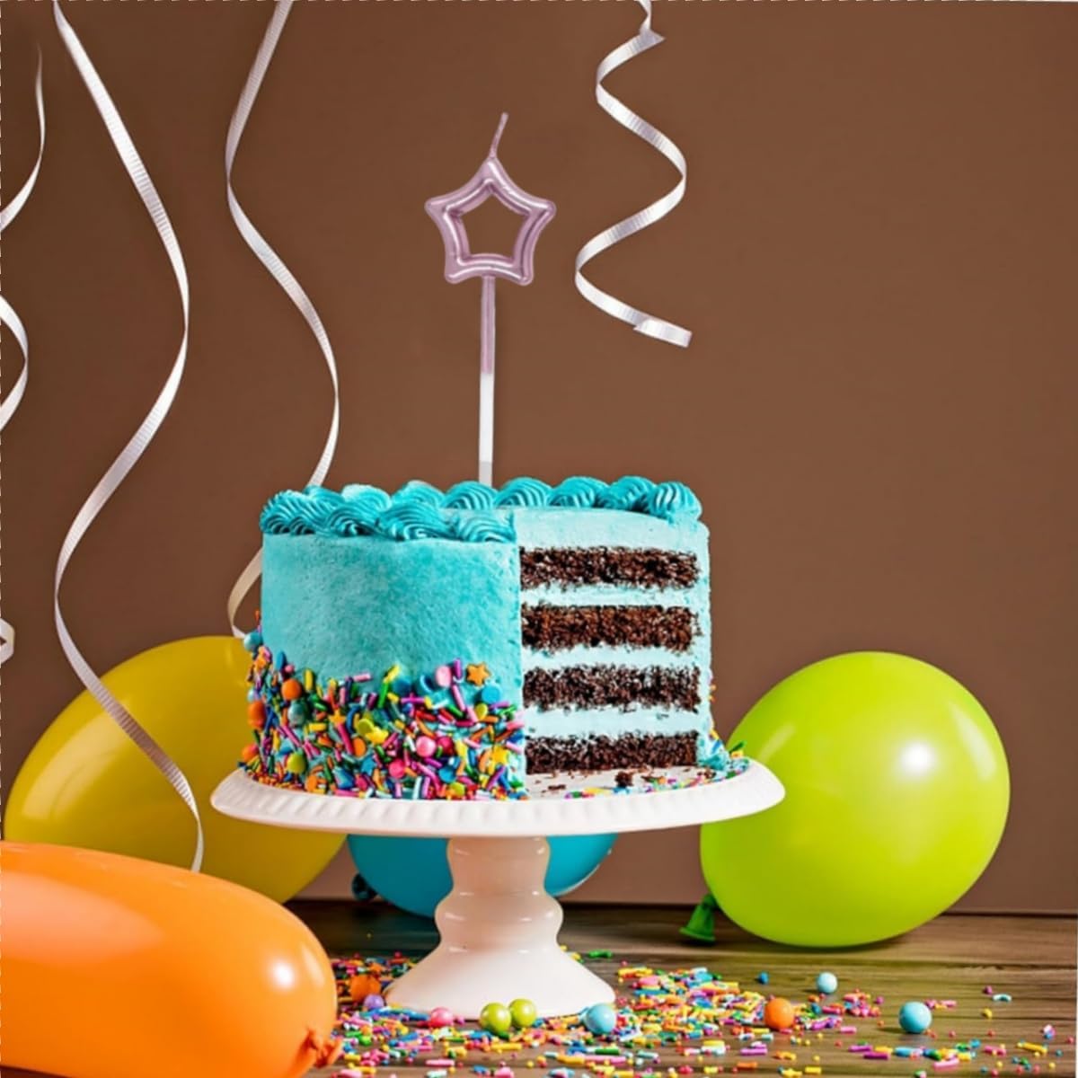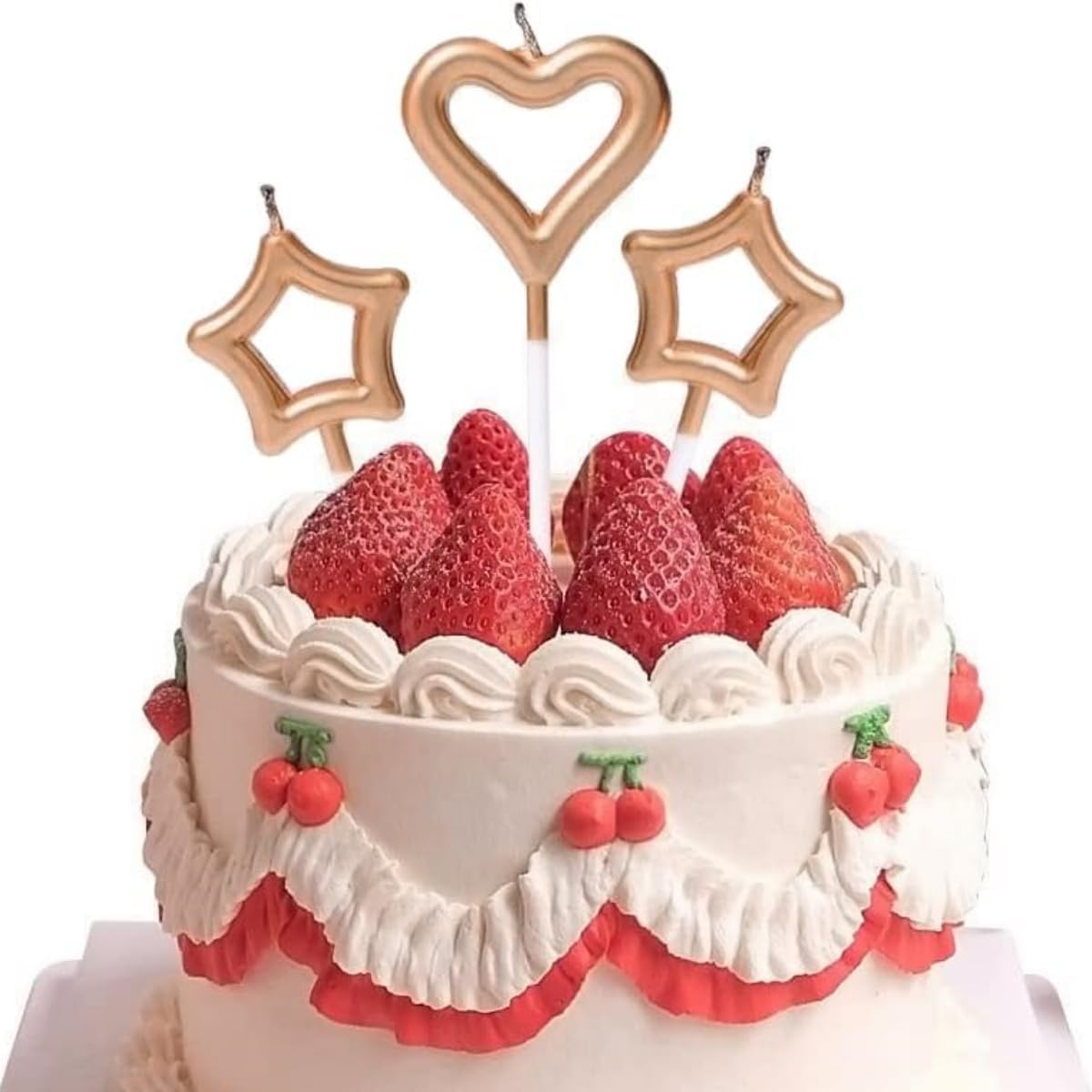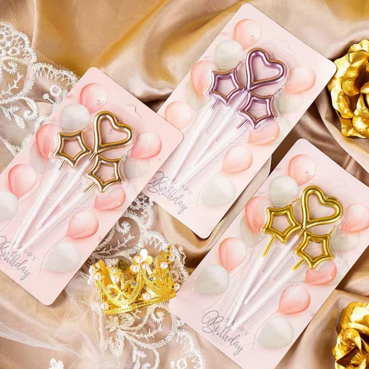 Dettagli del prodotto: Ogni confezione di candeline per torta in metallo contiene 15 candele, 10 candele a forma di stella e 5 candele a forma di cuore, con un totale di 5 colori, molto strutturate e squisite DESIGN SQUISITO: le candele glitterate aggiungono un tocco di luce elegante e brillante alle tue celebrazioni e creano un'atmosfera romantica. Sono facili da accendere e sono adatti per decorare tutti i tipi di torte e cupcake Candele interessanti: interessanti candele a forma di cuore possono dare alle persone un'atmosfera felice e calda, mentre lo stile infantile dà alle persone una sensazione confortevole Pratico: con il supporto è possibile inserire piccole candeline nei muffin, nelle torte, ecc. durante le feste di compleanno dei bambini Ampiamente usato: la decorazione di torte è adatta a varie feste o occasioni speciali come matrimoni, feste di compleanno e anche per pasticcerie, bar e panetterie