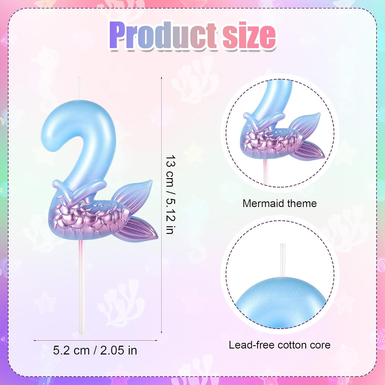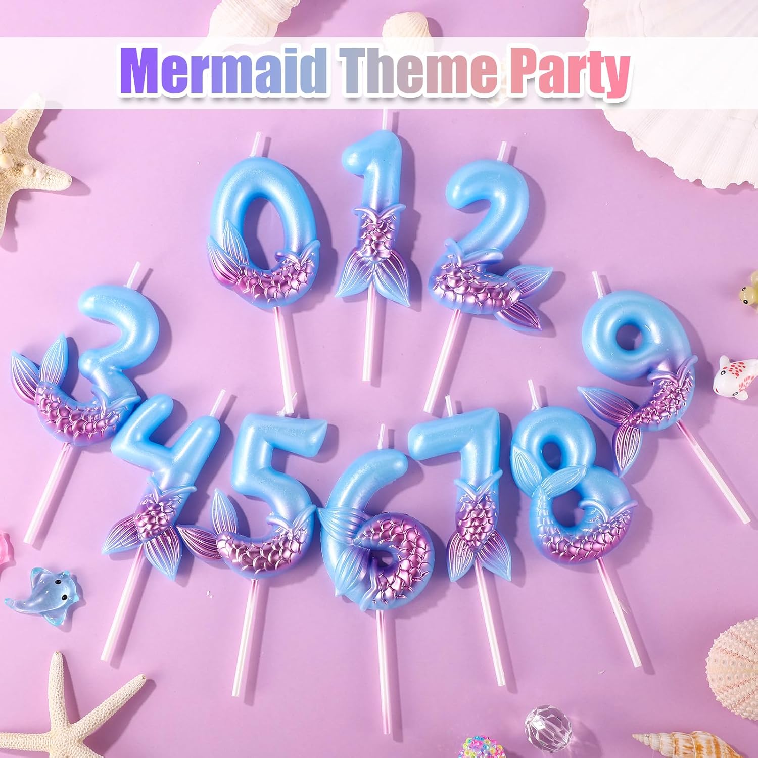 Contenuto del pacchetto: riceverai 1 candela di compleanno della sirena, perfetta per la tua festa di compleanno, aggiungendo un tocco di calore. Combinazione: ci sono numeri da 0 a 9, la nostra candela con i numeri di compleanno può essere abbinata ad altri numeri per soddisfare le tue varie esigenze di anniversario, come 8, 12, 26, 34, 39, 47, 58, 89 ecc. Materiale affidabile: la nostra candela di compleanno della sirena è realizzata con paraffina premium, affidabile e sicura, facile da inserire e luce.Bruciare in modo uniforme e coerente. Design divertente: la candela blu di compleanno è progettata con un elemento sirena carino e classico, il design carino e divertente attirerà bambini e adulti.Può brillare al buio.Mermaid Cake Topper può facilmente abbinare i colori di vari temi e decorazioni per feste. Ampia applicazione: il numero di candele per il compleanno blu è una decorazione perfetta per la festa di compleanno della sirena, anniversario di matrimonio, feste di pensionamento, incontri di famiglia, Natale, ecc.