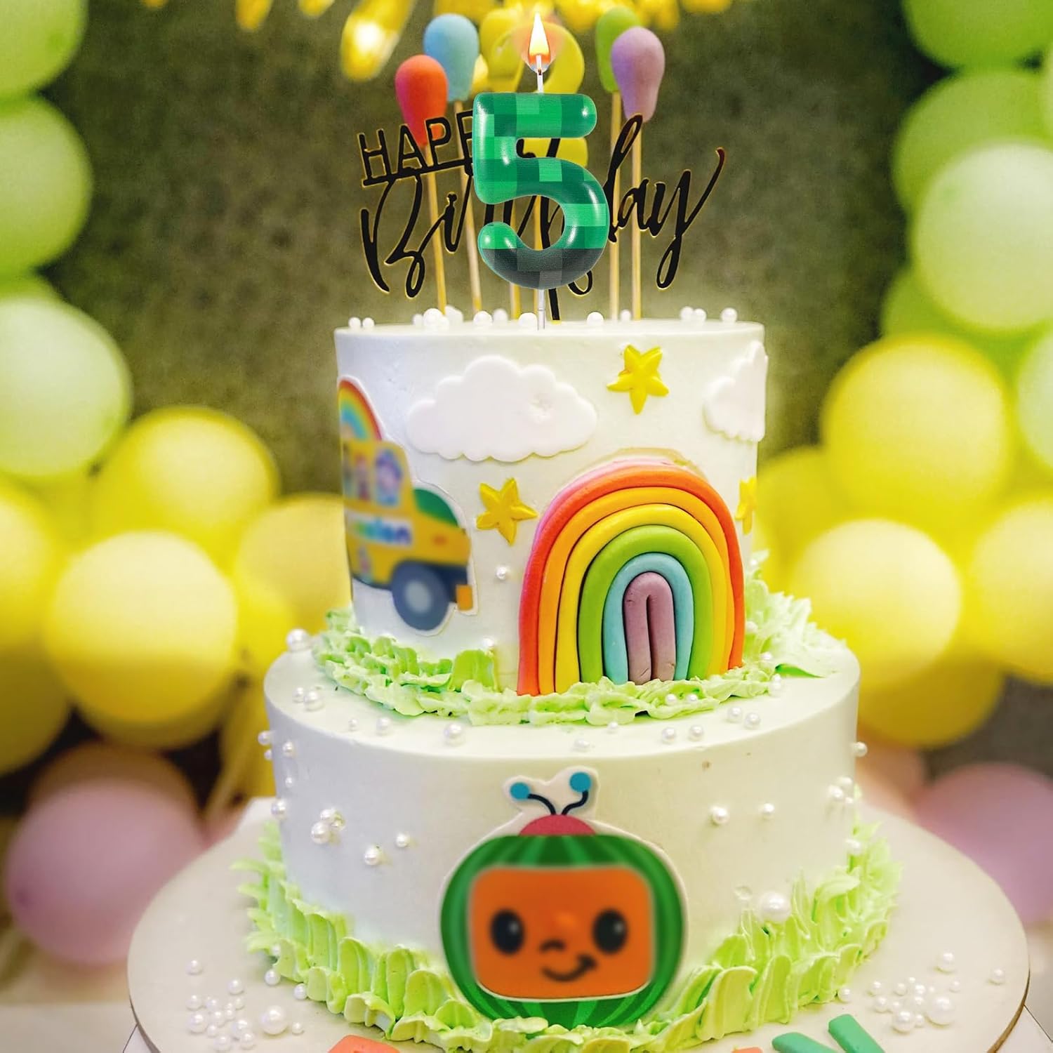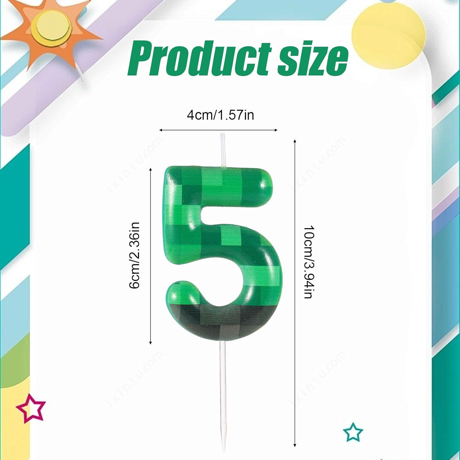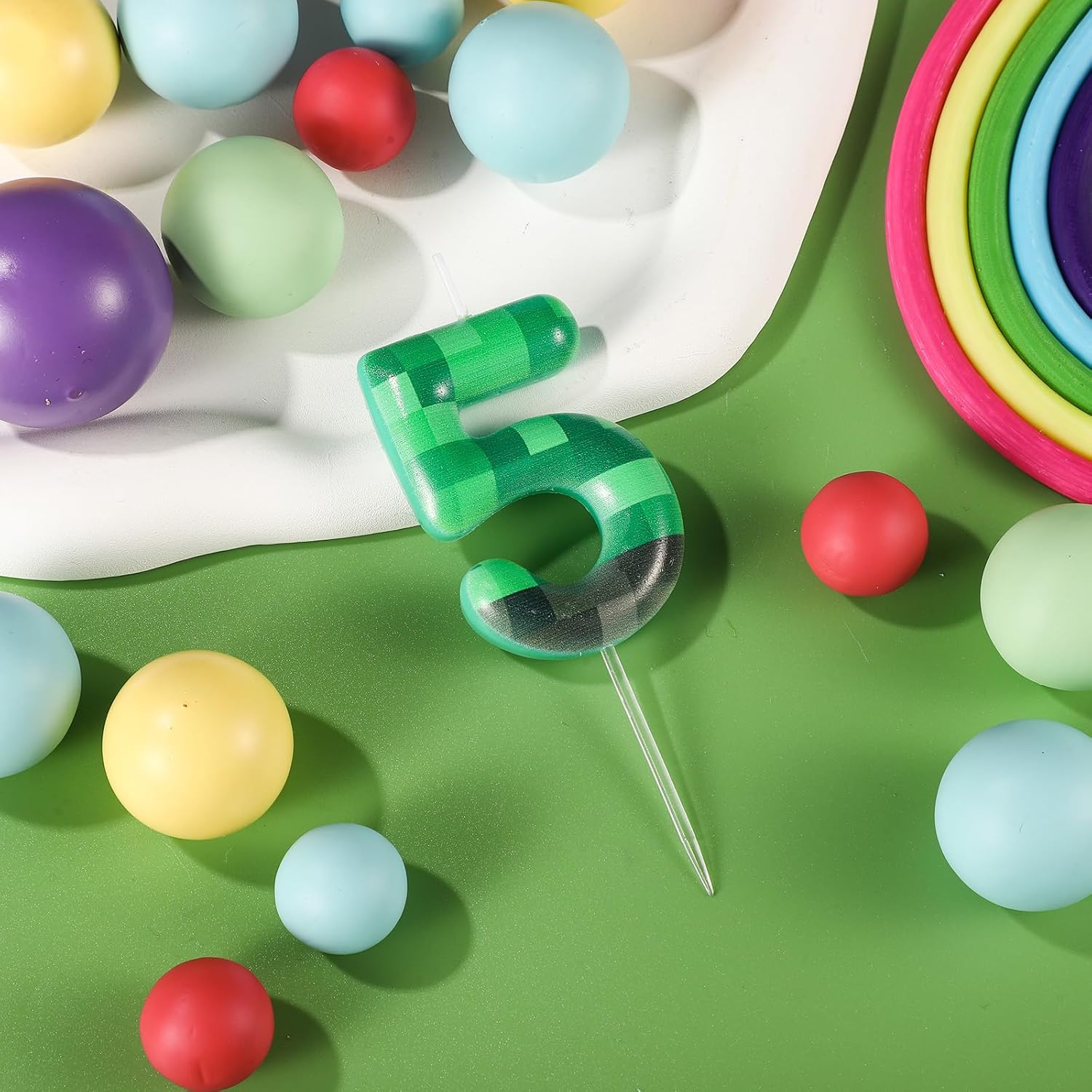 Candele di Compleanno a Tema TNT per Torta, Candele di Compleanno con Numeri Verdi Pixel Topper per Torta TNT per Compleanno Matrimonio Baby Shower Videogioco Decorazioni per Feste (Numero 5)