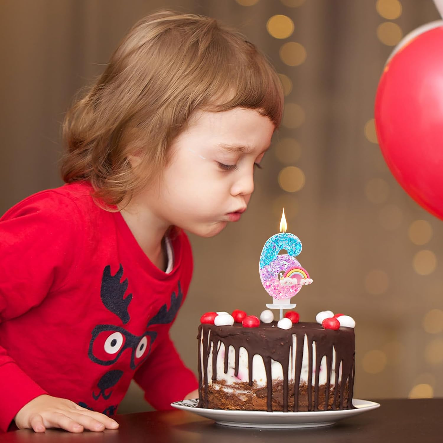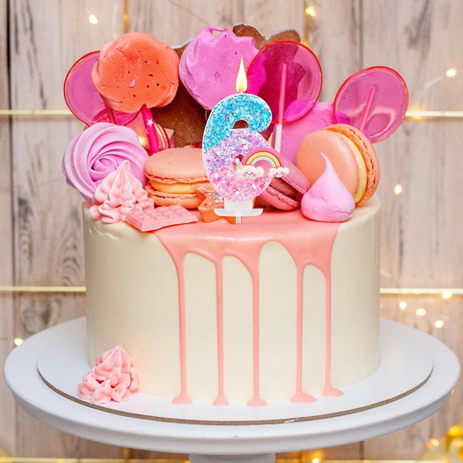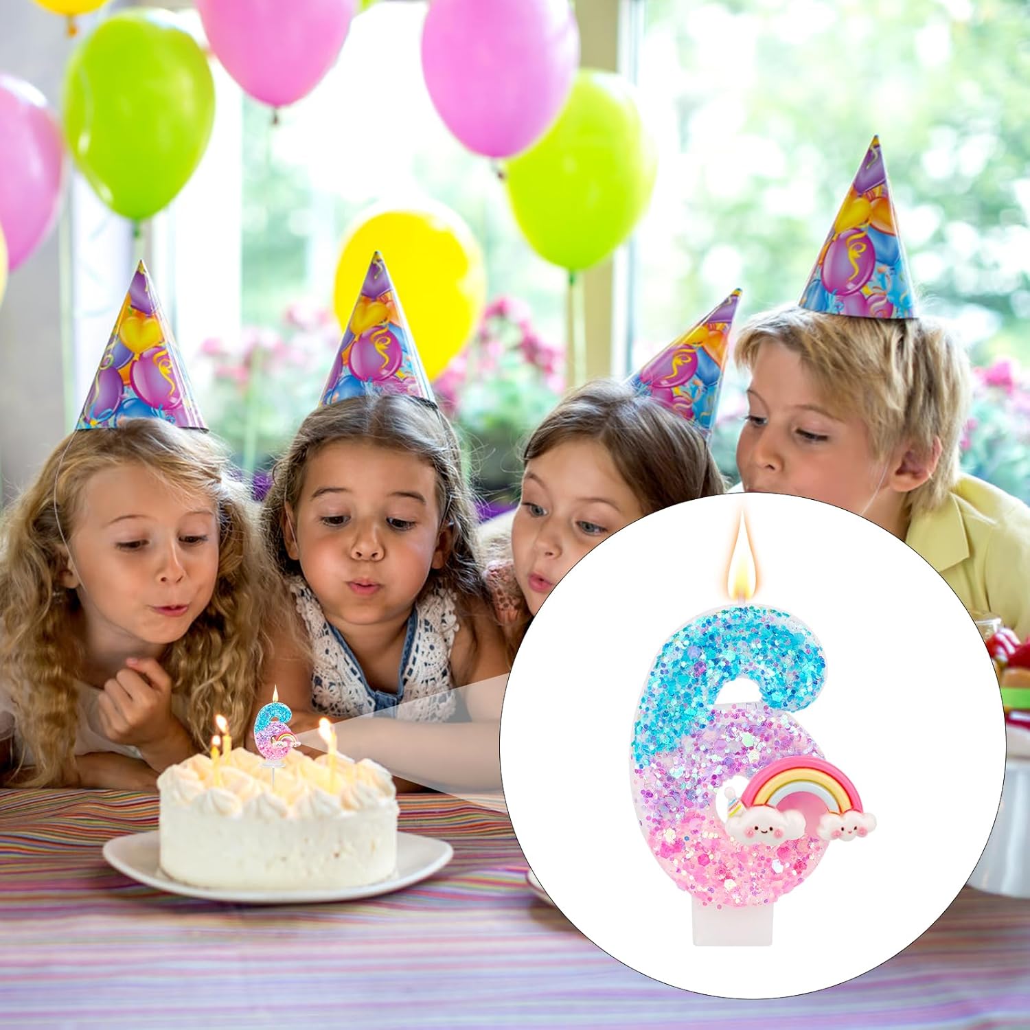 Il pacchetto include: riceverai 1 pezzo di candela di compleanno arcobaleno, vieni con 1 base di plastica e 1 inserto in plastica, facile da decorare la torta. Materiale affidabile: le candele per torta di compleanno sono realizzate in cera di paraffina premium, che è sicura e affidabile, senza fumo e senza odore, brucia in modo pulito e uniforme;Dotato di un supporto in plastica e di inserire l'asta, può essere posizionato in sicurezza sulla torta. Design luminoso: le nostre candele sono progettate con motivi arcobaleno luminosi e decorate con paillettes frizzanti, che sono delicati e lucenti, accattivanti e pieni di atmosfera festosa e gioiosa. Dimensione perfetta: la candela misura circa 7,3x4,3 cm, la dimensione di base è di 2,9x2,9 cm e la lunghezza dell'asta è di 6,5 cm, adatta per decorare varie torte.(La dimensione specifica della candela è mostrata nella foto) Ampia applicazione: la candela di compleanno arcobaleno è nuova e interessante, aggiungendo un'atmosfera festosa a torte di compleanno, cupcakes e tavoli da dessert, aggiungendo fascino alle celebrazioni, adatti per feste di compleanno, anniversari, docce per bambini e feste a tema dei cartoni animati.