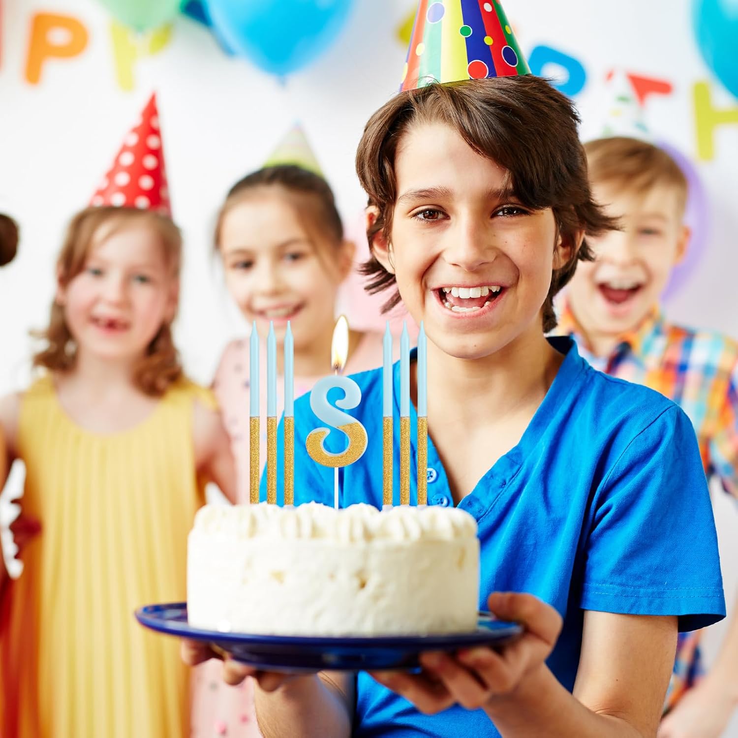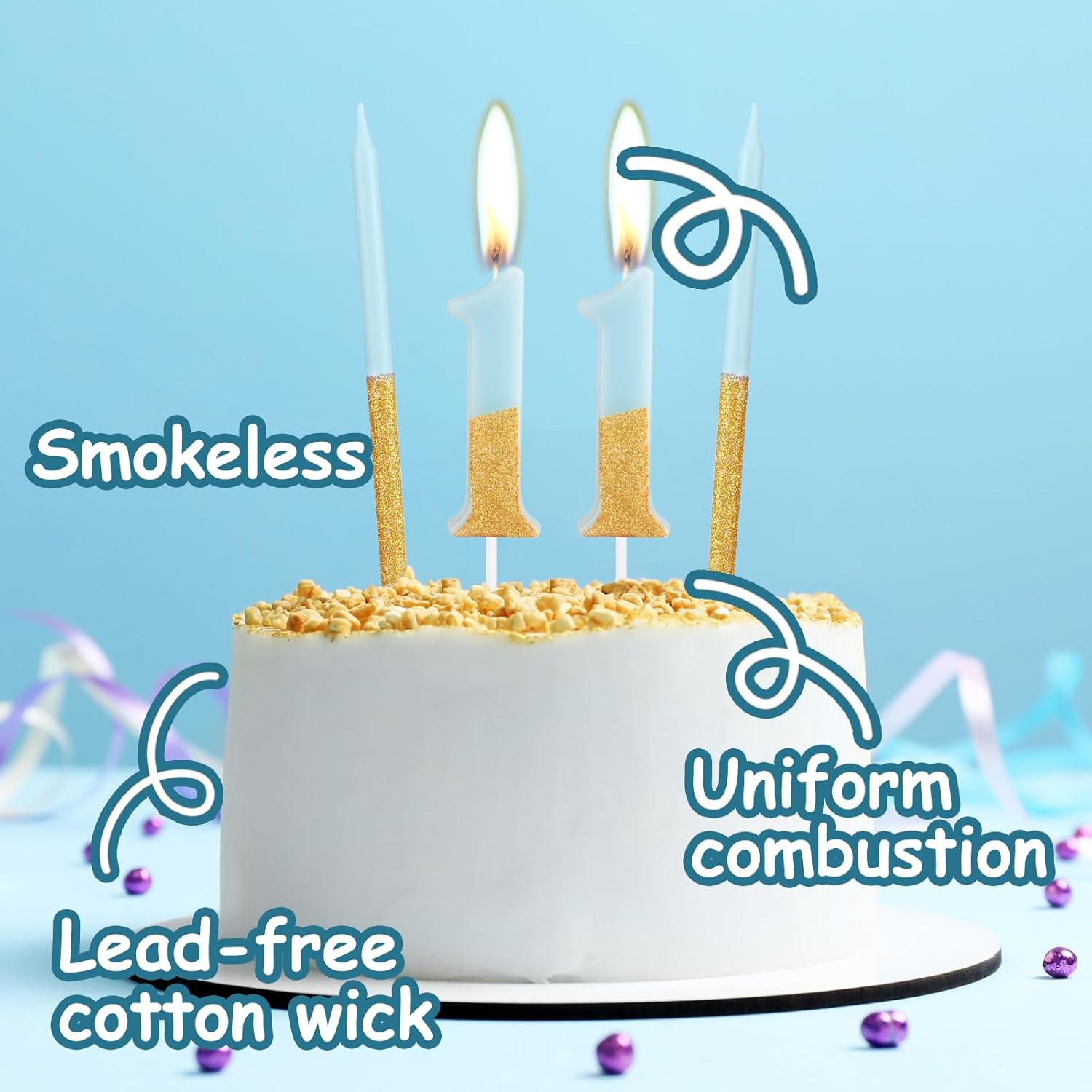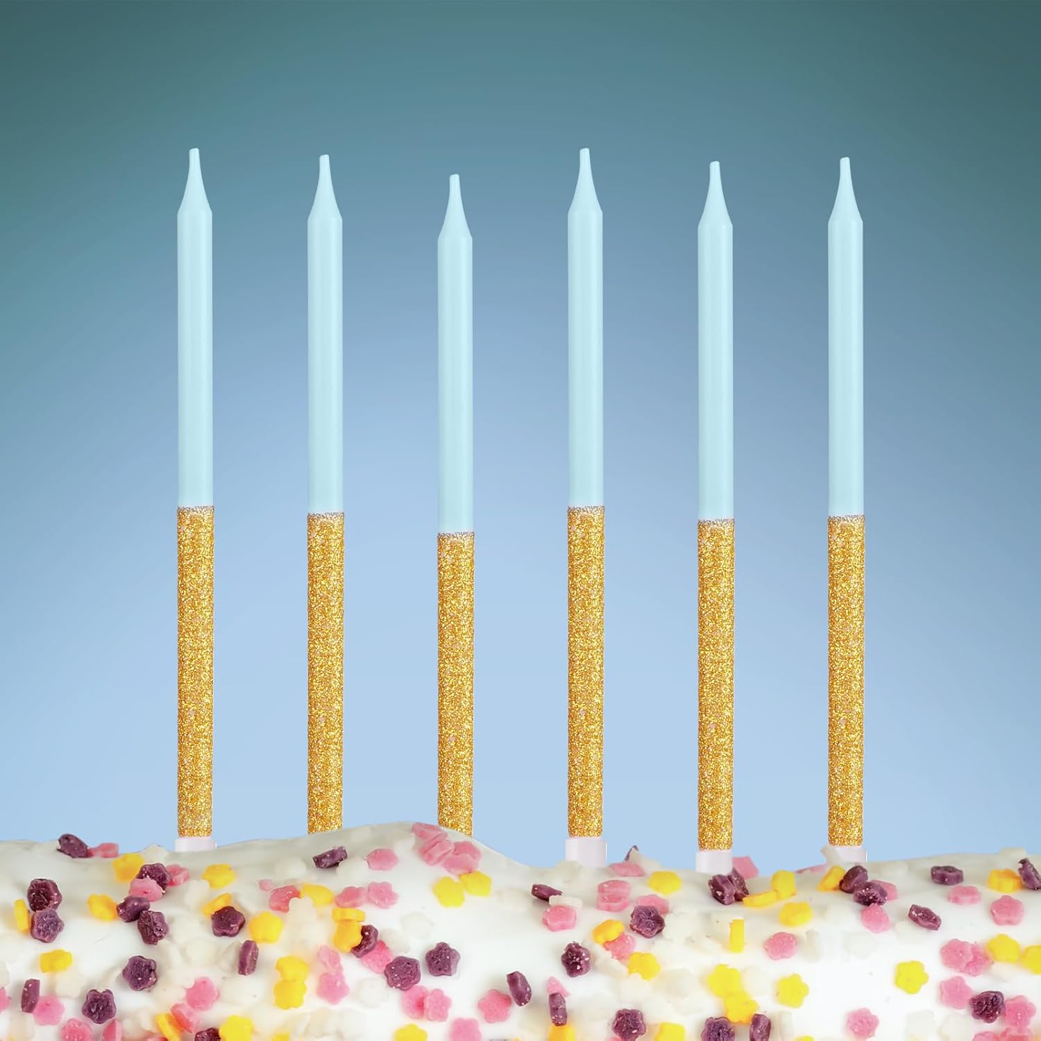 Candele con numeri blu oro con candele lunghe. Informazioni: la confezione contiene 2 numeri con 6 candele dorate blu/a bastoncino lungo. La lunghezza della candela numerica è di circa 12,5 cm (il corpo della candela è di circa 4,5 cm), la candela a bastone lungo è di circa 13 cm. Adatto per torte di compleanno di qualsiasi dimensione o per qualsiasi celebrazione. Candele di compleanno in oro blu con decorazione sicura: queste candele per torta di compleanno sono realizzate in cera alimentare atossica e insapore di alta qualità. Le candele per torte sono sicure da usare e facili da accendere, riutilizzabili. Sono senza fumo e non gocciolano. Puoi stare certo di metterli sulla tua torta di compleanno. Candele per 40° torta dall'aspetto delicato: fantastiche decorazioni per torte, design unico con glitter, la prima cosa che attira l'attenzione è il bellissimo effetto brillante della parte superiore che può essere inserito sulla torta o posizionato nel candelabro, adatto per compleanni, matrimoni e altre feste e banchetti. Candele numerate di alta qualità e convenienti: set di candele numerate e candele a bastoncino lungo, sono carine sulla tua torta e possono essere utilizzate insieme o separatamente. Dopo aver usato la candela di compleanno, devi solo tagliare la parte superiore della candela. Possono essere facilmente conservati e riutilizzati per il prossimo utilizzo, economici e raffinati. Regalo perfetto per il 40° compleanno: le nostre candele di compleanno sono molto carine candele con numeri sfumati, adatte a persone di qualsiasi età e di entrambi i sessi. Il set di candele è blu e oro, rende la candela più delicata. È anche il regalo perfetto per te o per la persona che ami. Accendi una candela e i tuoi bei desideri si avvereranno.