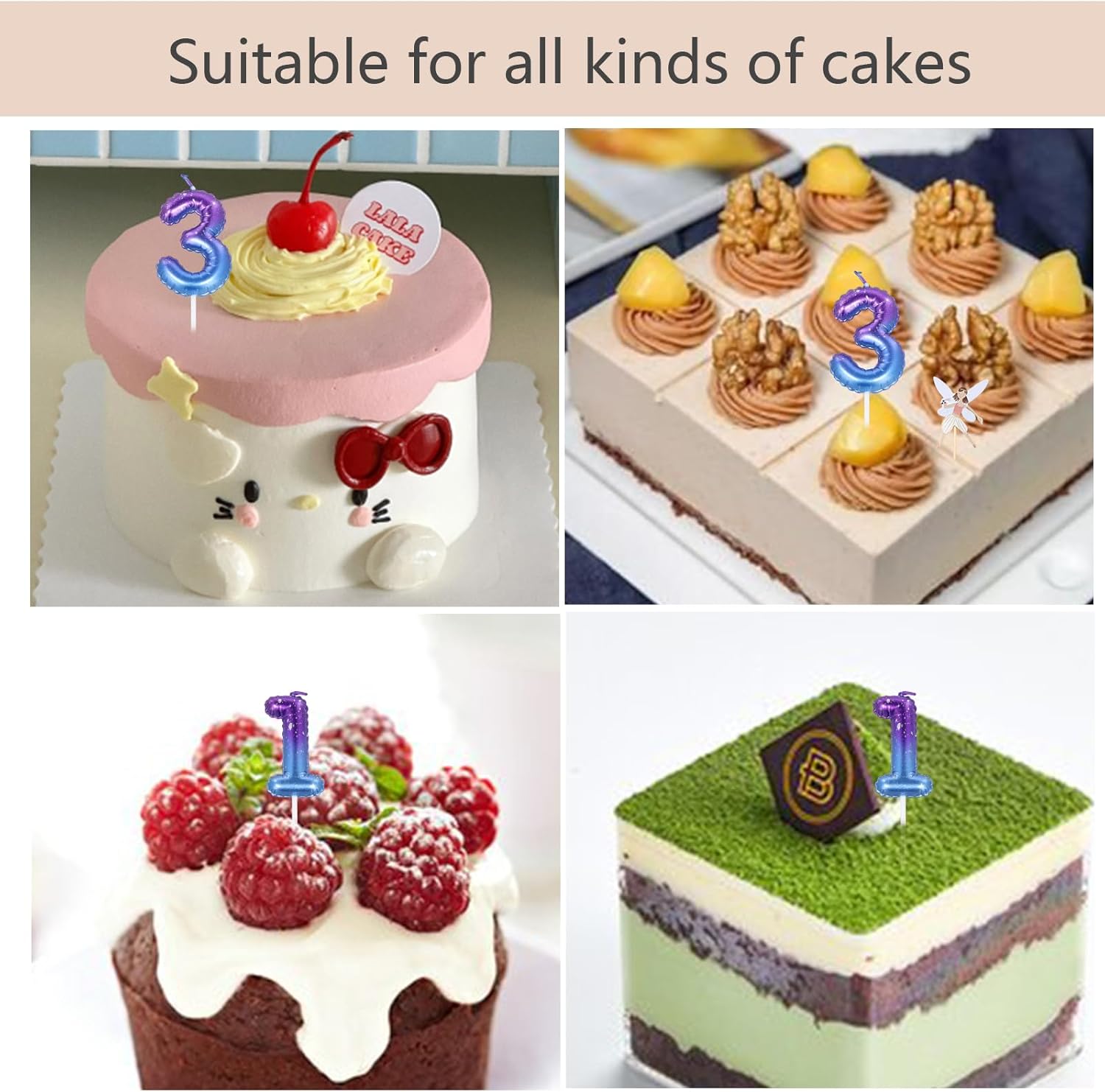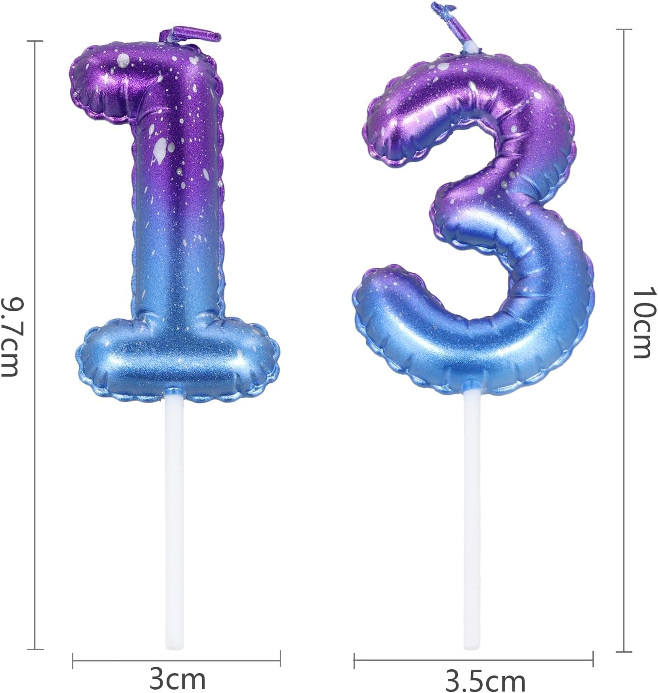Materiali ecologici di alta qualità: le nostre candele numeriche sono realizzate con cera ecologica di alta qualità. Sono inodori, senza fumo e non tossici, garantendo una combustione sicura e uniforme. Perfetto per varie torte e dessert. Design esclusivo con sfumatura blu-viola: caratterizzata da un bellissimo effetto sfumato blu-viola, ogni candela è confezionata singolarmente per una maggiore eleganza e unicità. Disponibili nei numeri 1, 3 o una combinazione di 1 e 3 per soddisfare le diverse esigenze. Design Tridimensionale: Le candele vantano un forte effetto tridimensionale. L'esclusivo design 3D brilla brillantemente a lume di candela, aggiungendo un'atmosfera romantica e calda alla tua torta, rendendola la decorazione perfetta per torte e dessert di compleanno. Dimensione perfetta: ogni candela numerica è lunga circa 5,8 cm, con una lunghezza totale (compreso lo stoppino) di circa 10 cm. Ideale per guarnire la maggior parte delle torte di compleanno e nuziali. Il colore sfumato blu-viola risalta magnificamente al buio, abbinandosi facilmente a vari temi e colori della festa. Versatile per varie occasioni: queste candele sono adatte sia per feste di compleanno di bambini che per adulti, nonché per anniversari di matrimonio, feste a tema, riunioni di famiglia e altre celebrazioni. Sono decorazioni essenziali per le torte delle feste che renderanno il tuo evento memorabile e significativo.